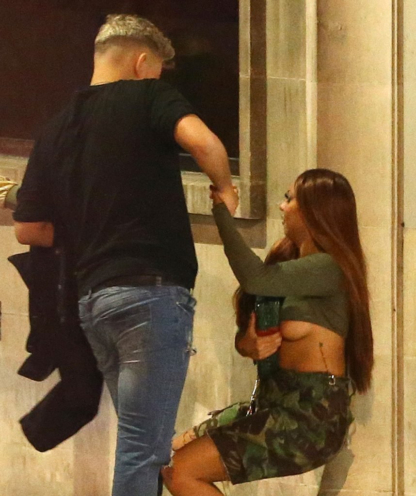 Jesy Nelson bêbada mostrou seu seio ao sair da boate Tape em Londres, 06/02/2018. Jesy Nelson é uma estrela inglesa de TV e cantora pop de 27 anos que ganhou fama com o Little Mix.