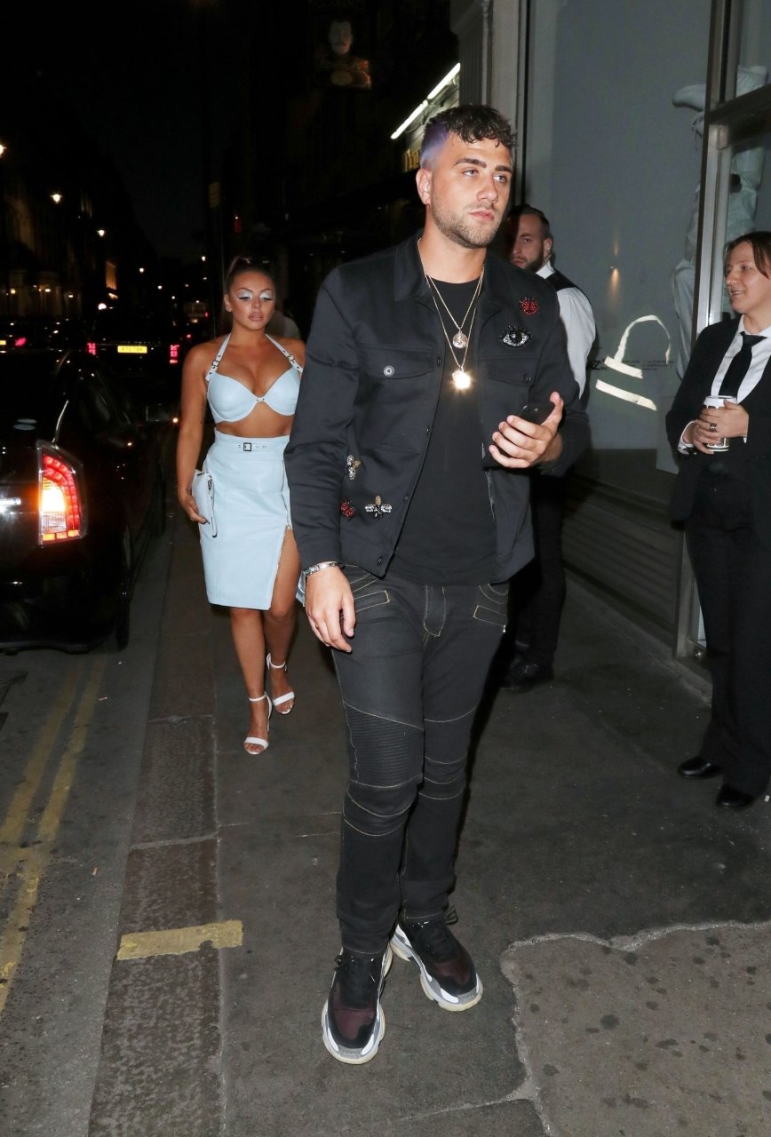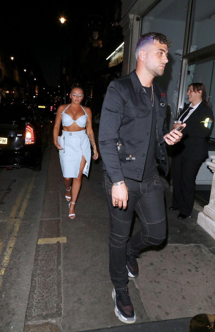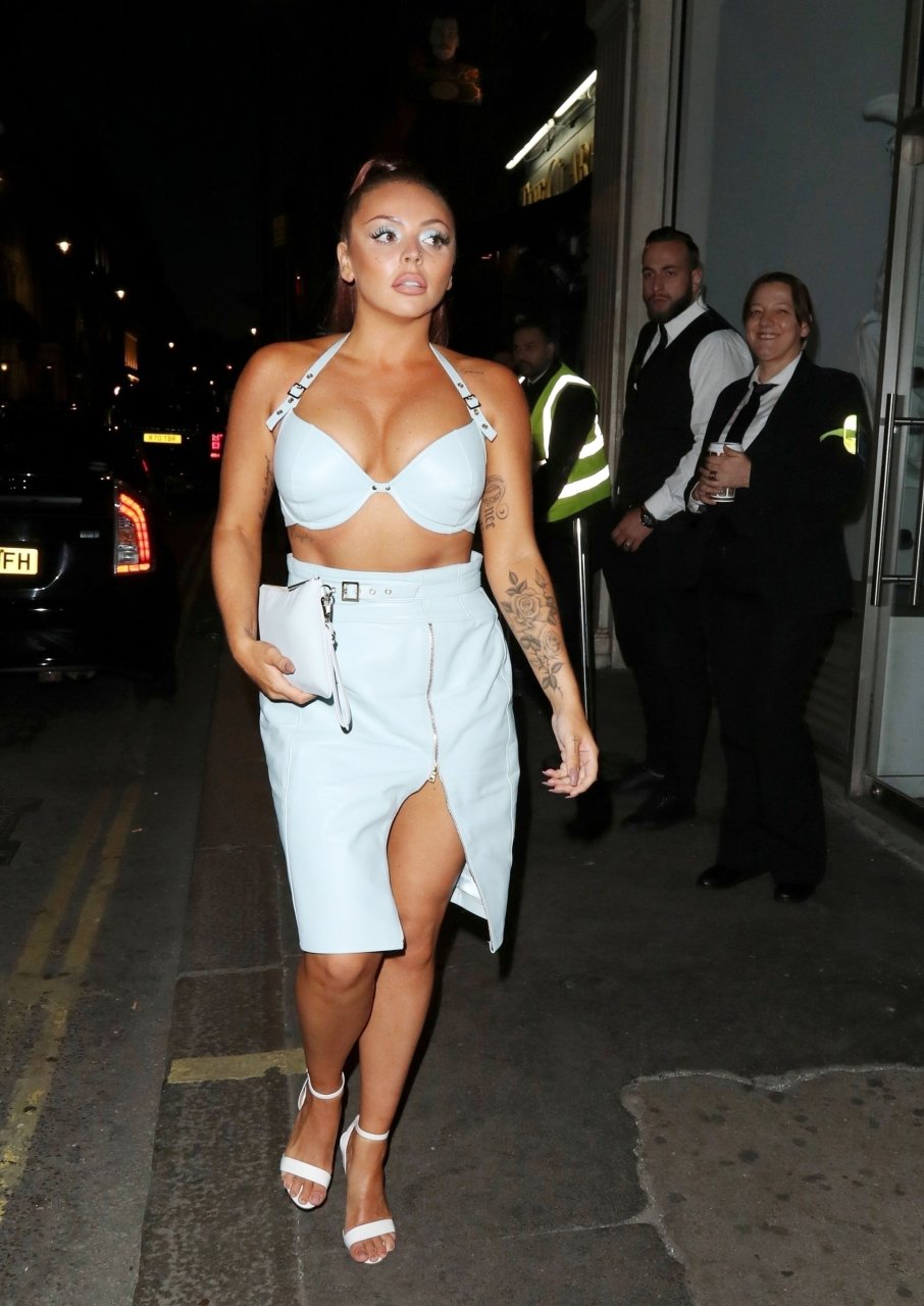 Cantora Jesy Nelson fotografada exibindo seus fabulosos abdominais em um traje revelador de aniversário enquanto é vista chegando com seu namorado na festa surpresa de aniversário realizada na boate Mahiki em Londres, 21/06/2018.
