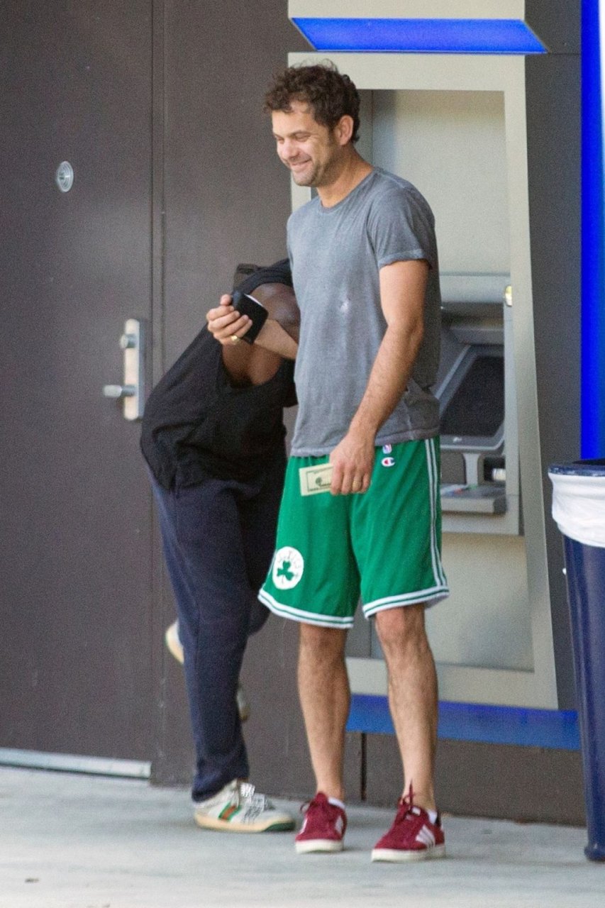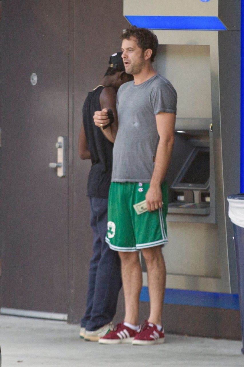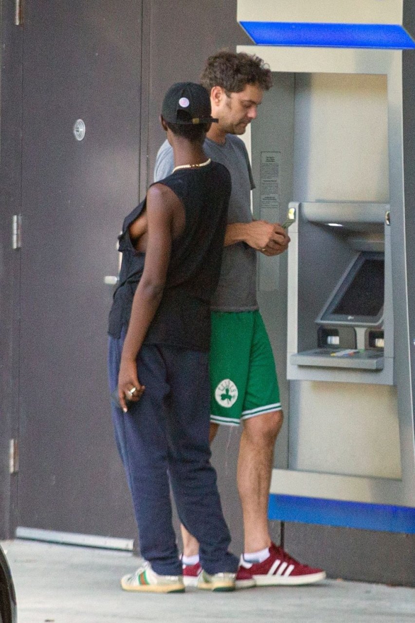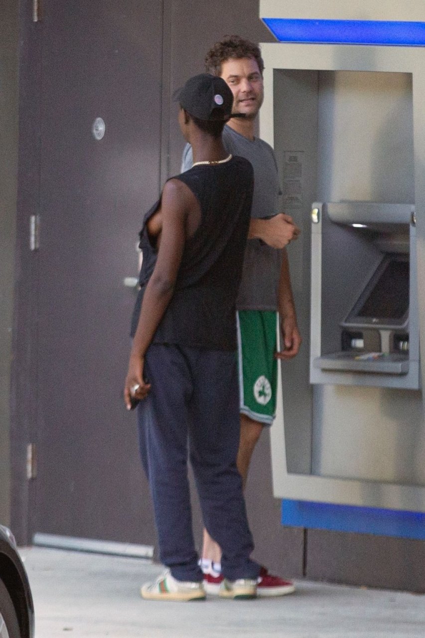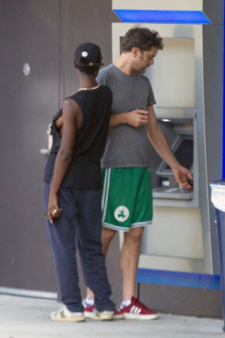 Joshua Jackson e a noiva Jodie Turner-Smith mostram seu lado brincalhão com um pouco de demonstração pública de afeto enquanto sacam dinheiro em um banco Chase em Hollywood, 10/09/2019. O casal pode ser visto sorrindo um para o outro antes de compartilharem alguns beijos doces.