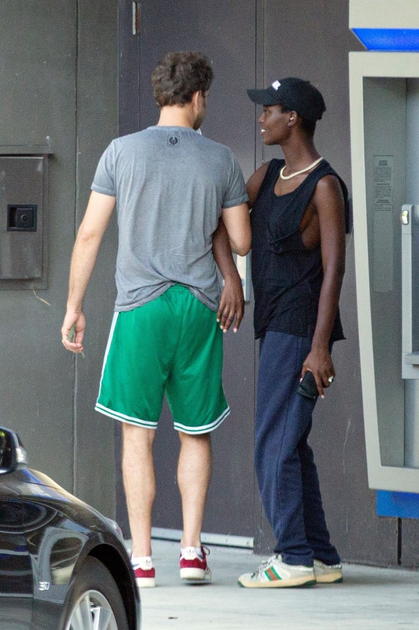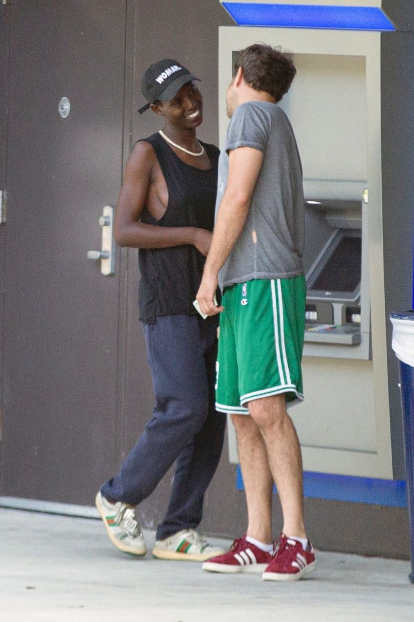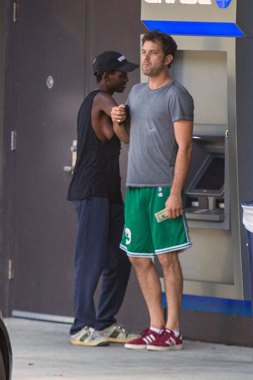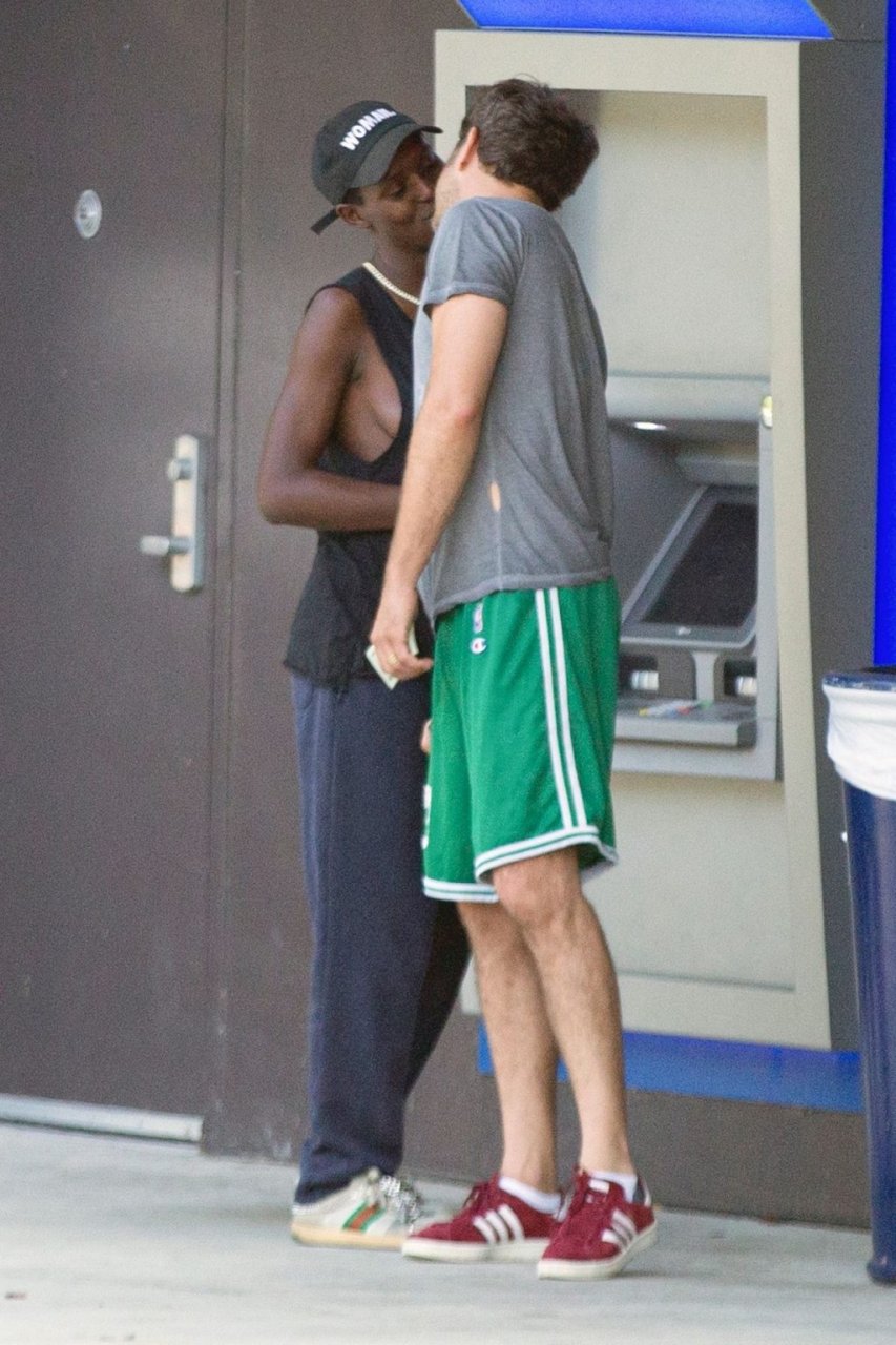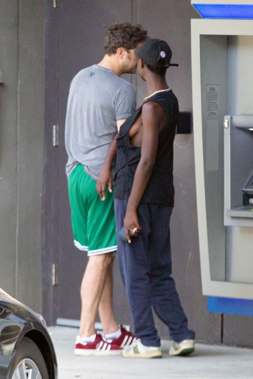 Joshua Jackson e a noiva Jodie Turner-Smith mostram seu lado brincalhão com um pouco de demonstração pública de afeto enquanto sacam dinheiro em um banco Chase em Hollywood, 10/09/2019. O casal pode ser visto sorrindo um para o outro antes de compartilharem alguns beijos doces.
