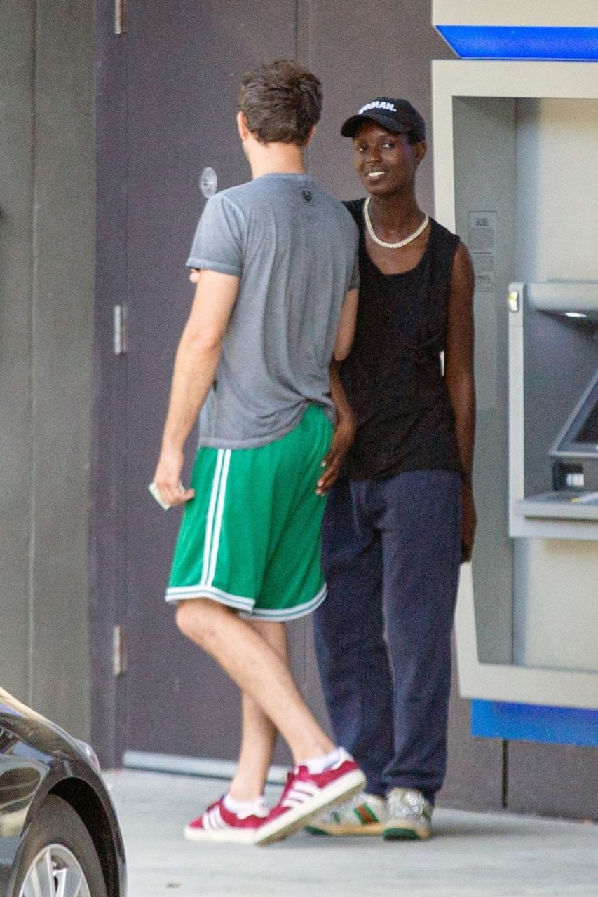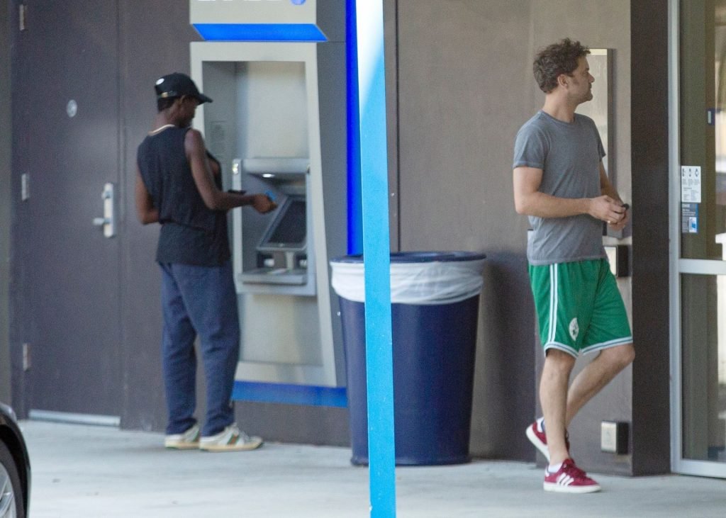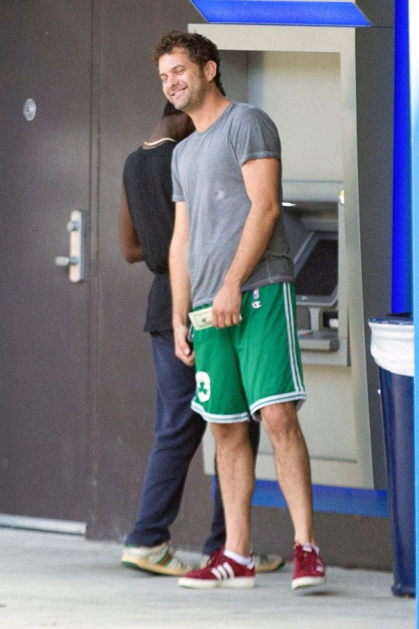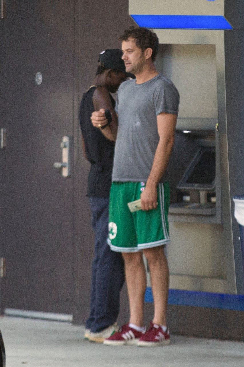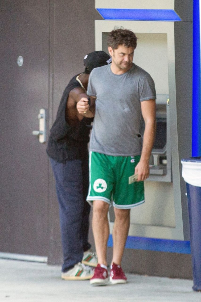 Joshua Jackson e a noiva Jodie Turner-Smith mostram seu lado brincalhão com um pouco de demonstração pública de afeto enquanto sacam dinheiro em um banco Chase em Hollywood, 10/09/2019. O casal pode ser visto sorrindo um para o outro antes de compartilharem alguns beijos doces.
