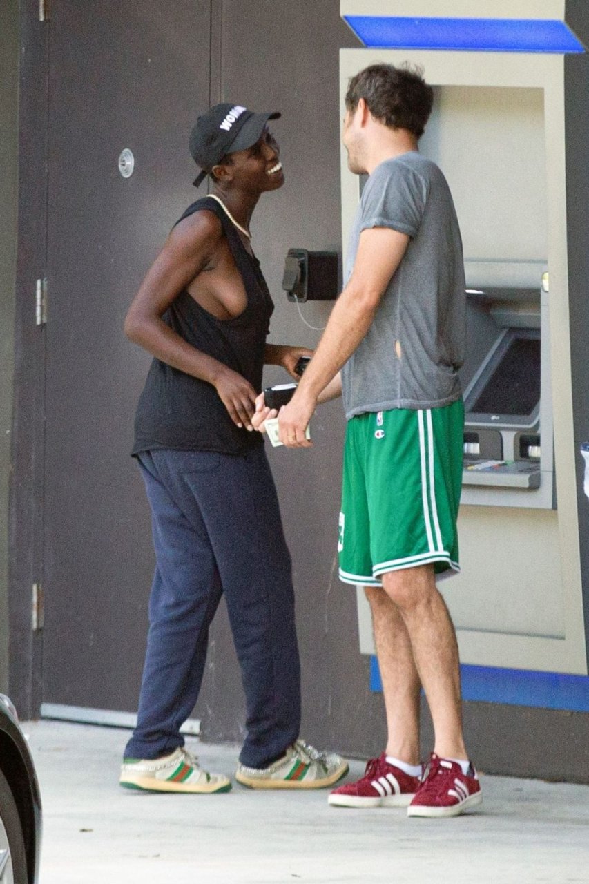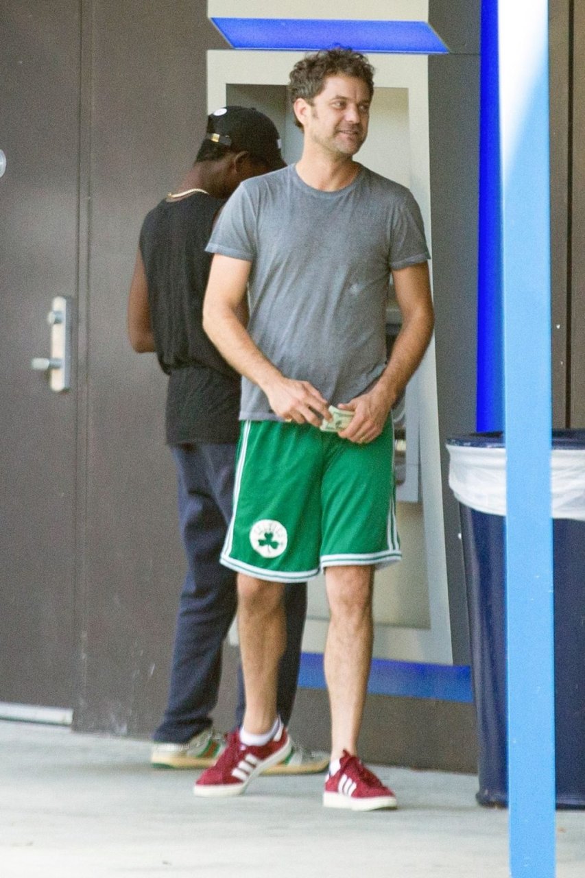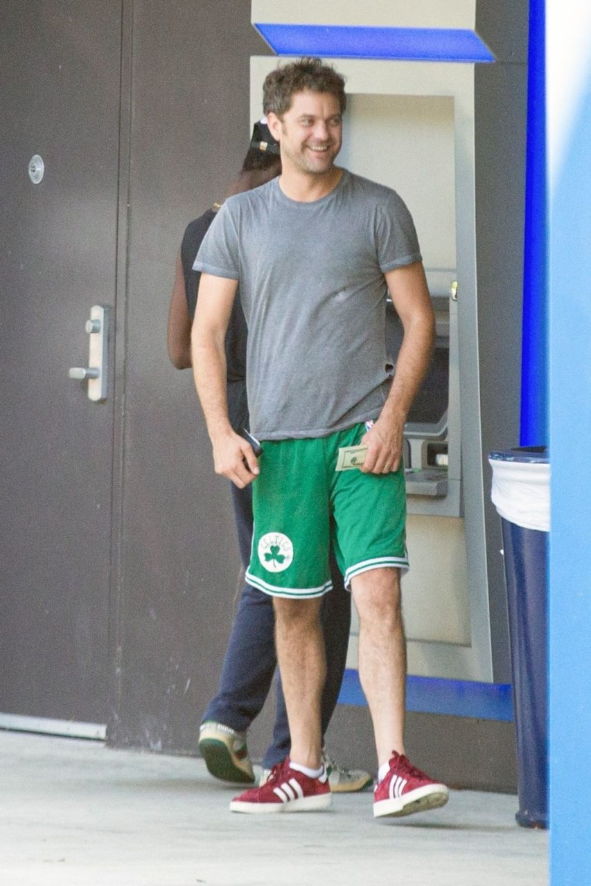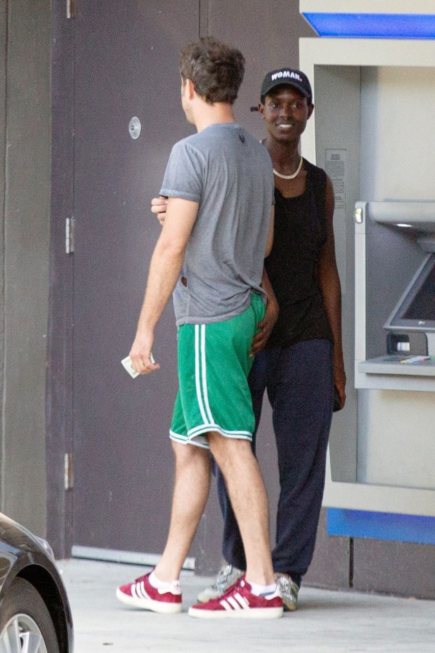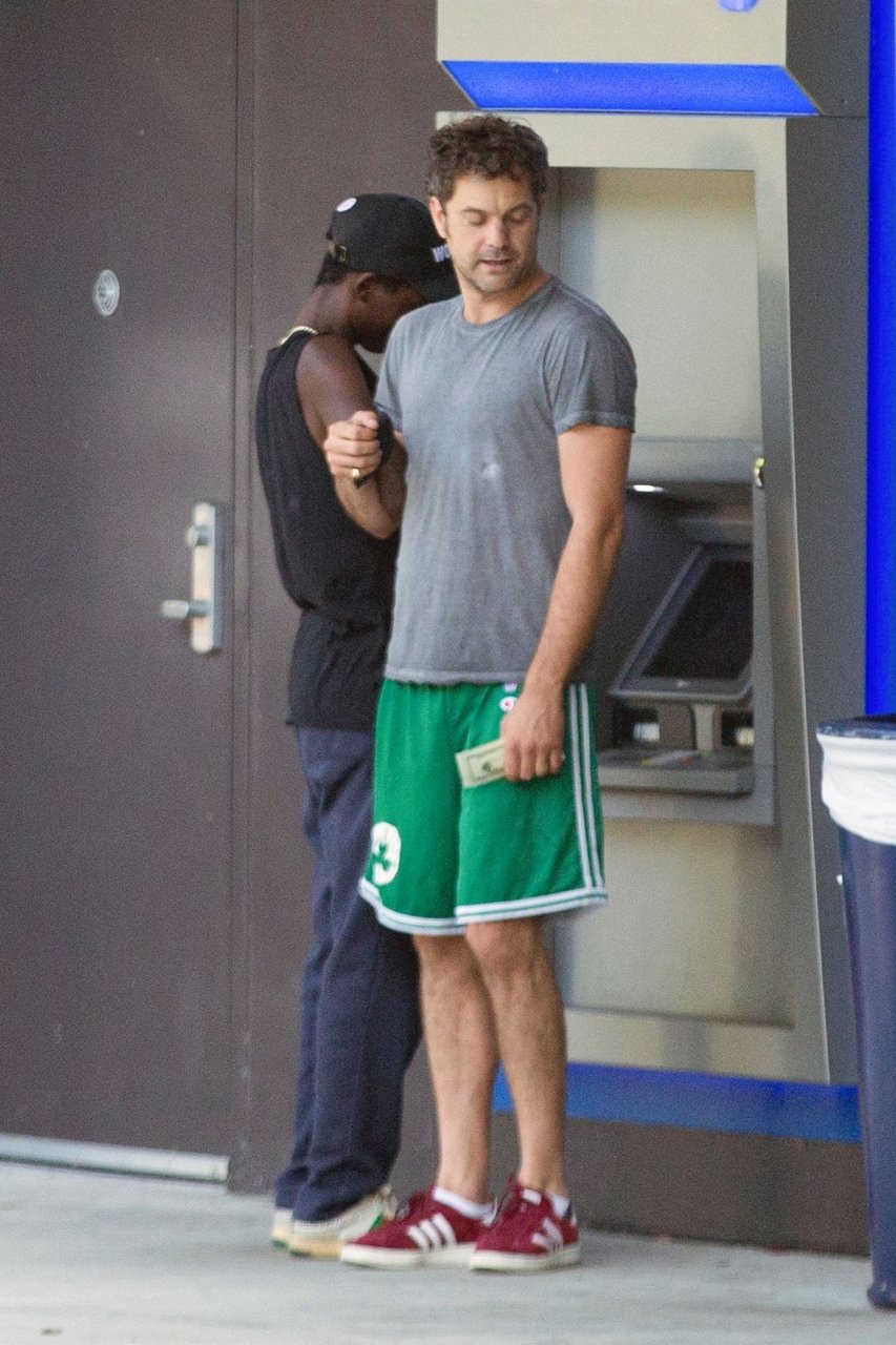 Joshua Jackson e a noiva Jodie Turner-Smith mostram seu lado brincalhão com um pouco de demonstração pública de afeto enquanto sacam dinheiro em um banco Chase em Hollywood, 10/09/2019. O casal pode ser visto sorrindo um para o outro antes de compartilharem alguns beijos doces.