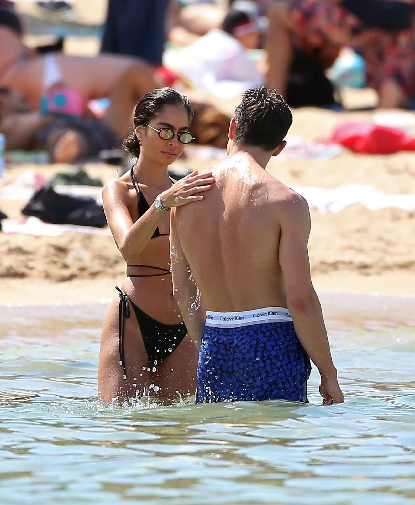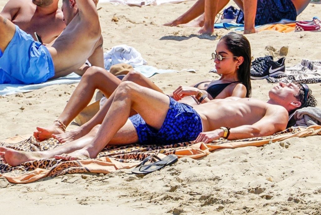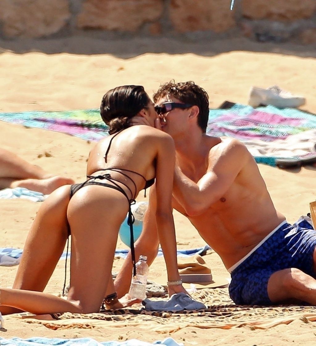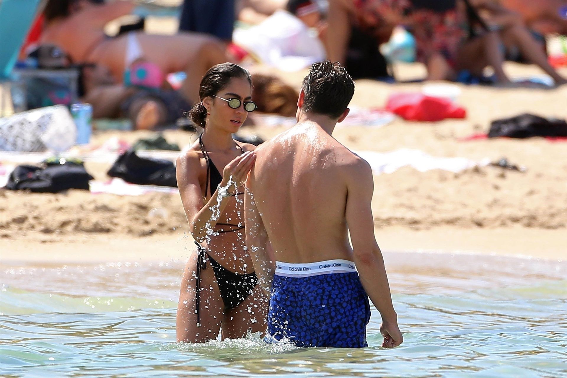 O casal parece apaixonado aproveitando o sol espanhol, demonstrando carinho em público e exibindo seus tons dourados, com Brenda parecendo sexy de biquíni.