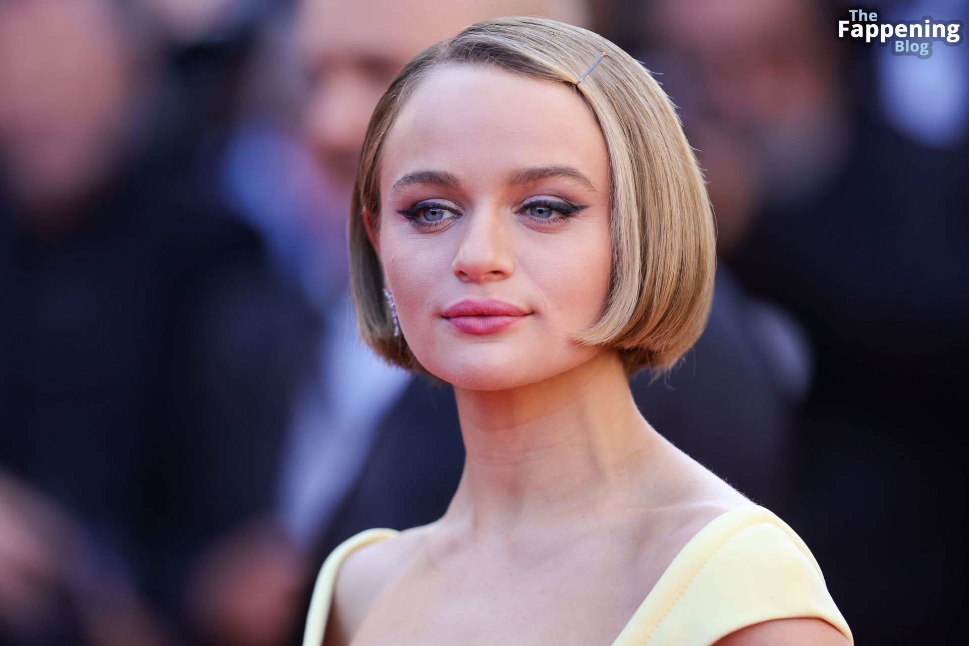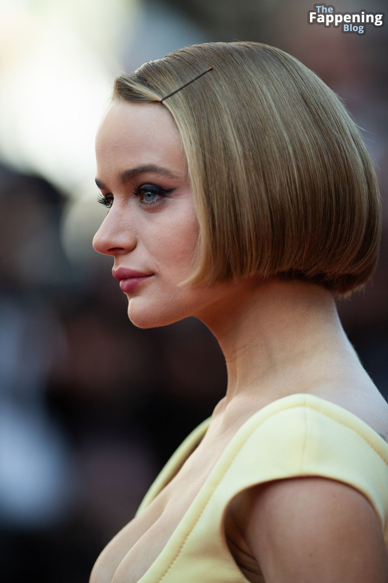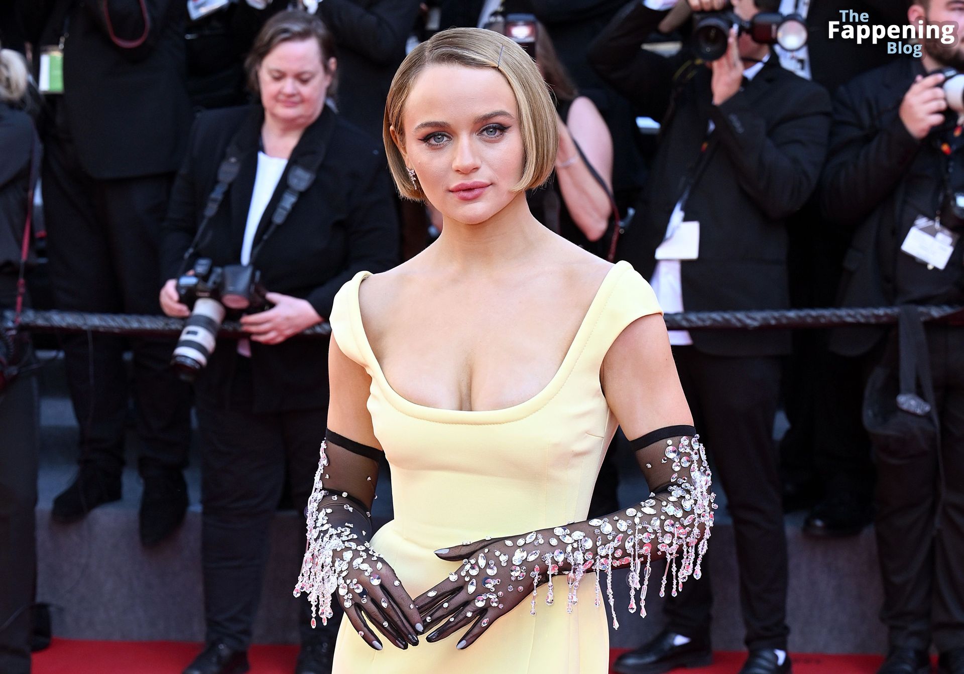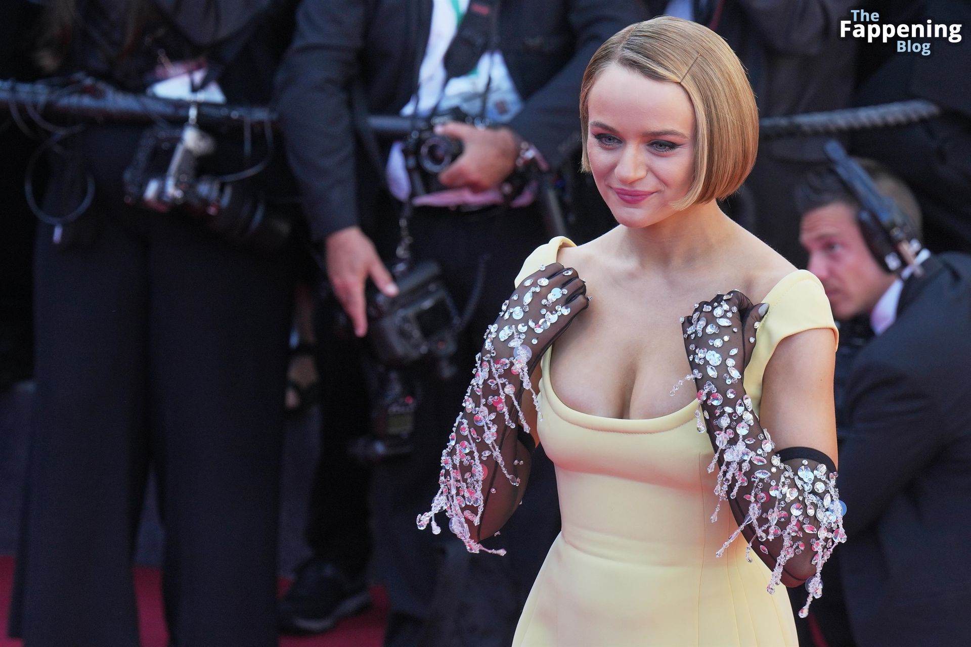 Joey King arrasou na cerimônia de encerramento do 77º Festival de Cinema de Cannes. Ela brilhou no tapete vermelho usando um vestido amarelo incrível da Miu Miu, super justo, que destacou suas curvas e um decote profundo mostrando seus seios volumosos.