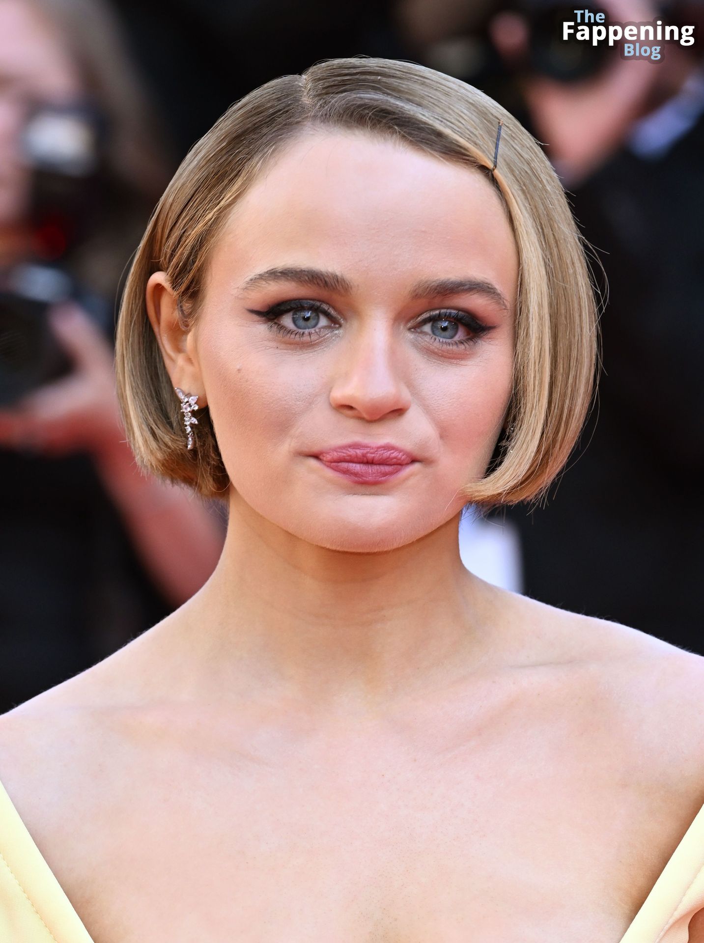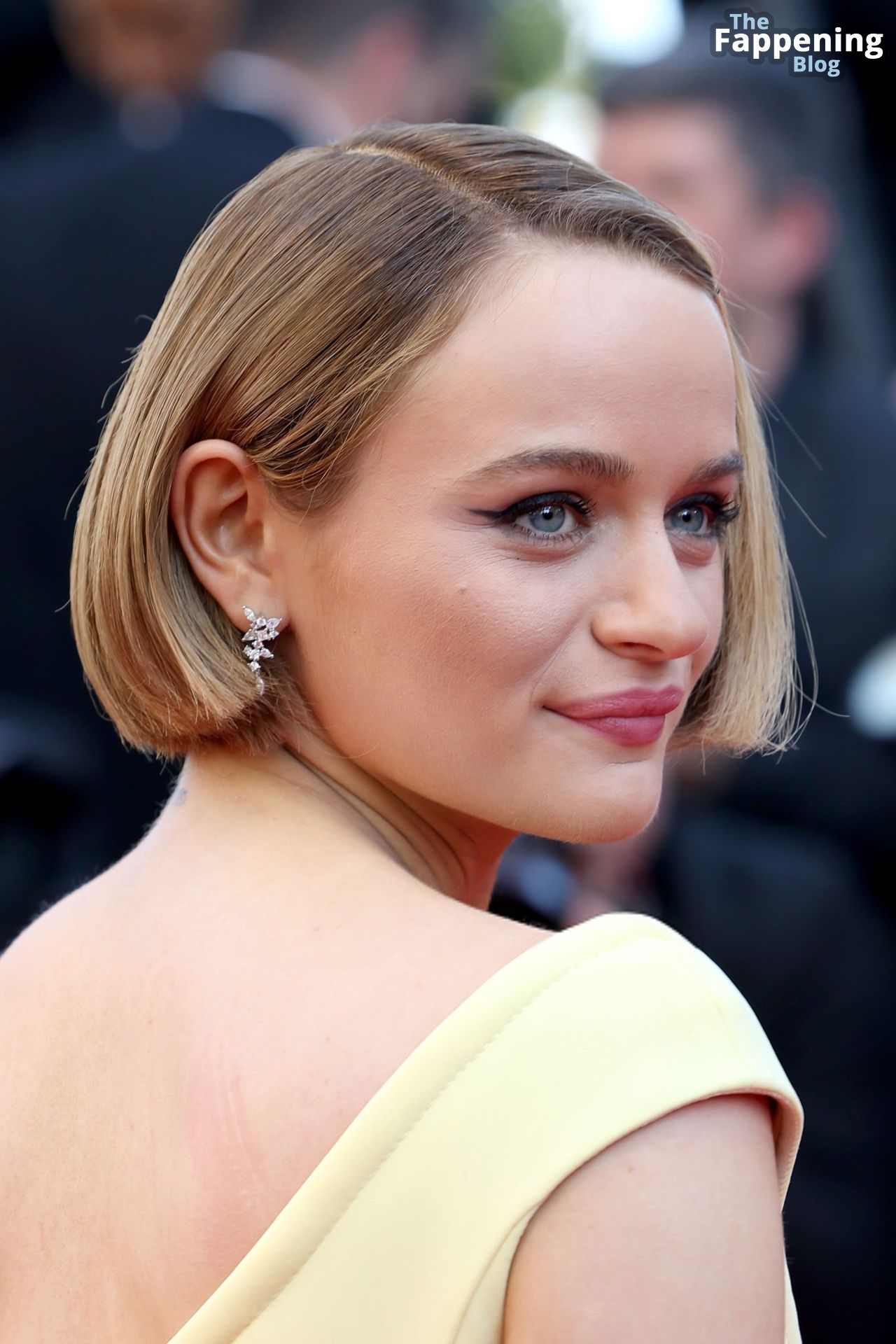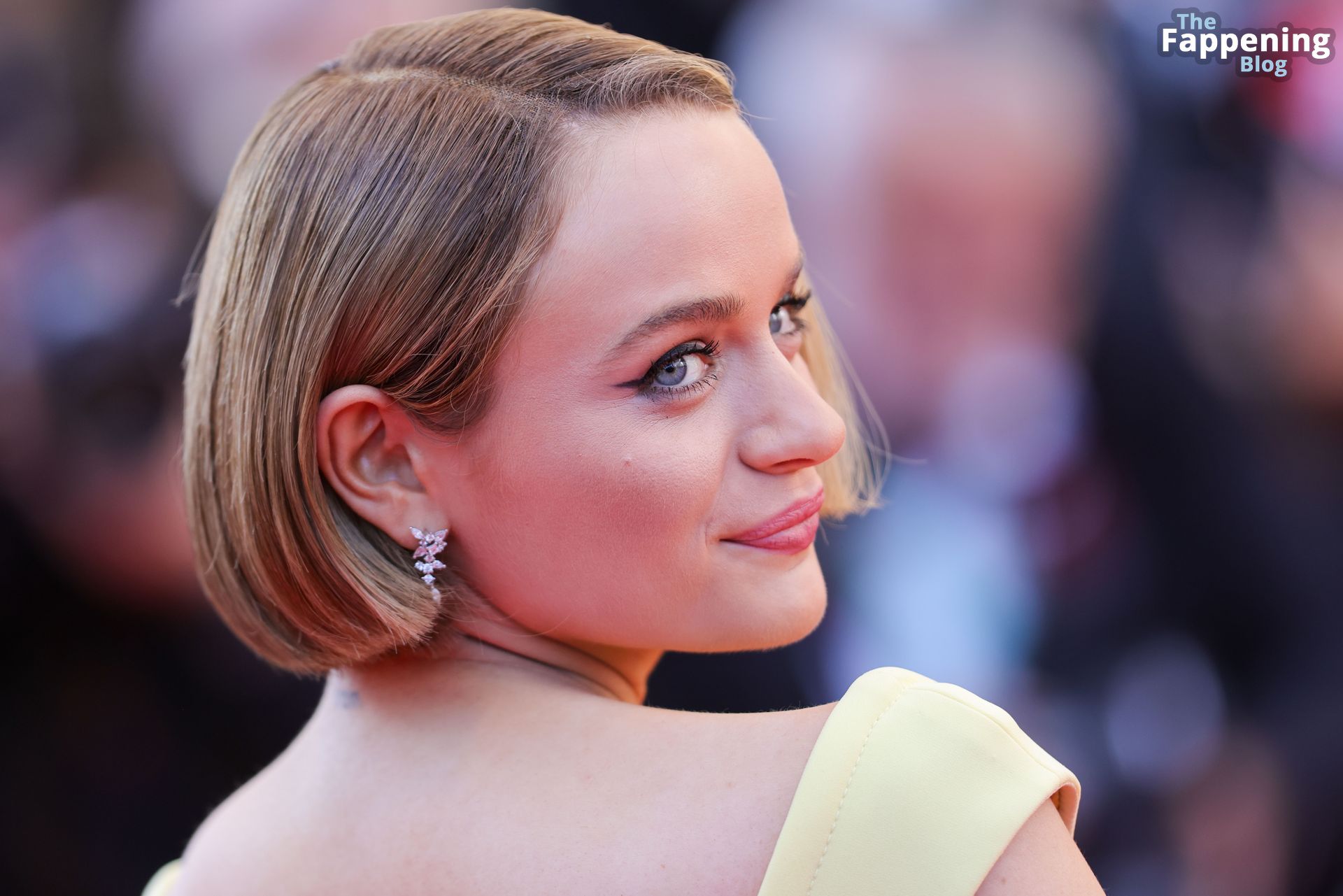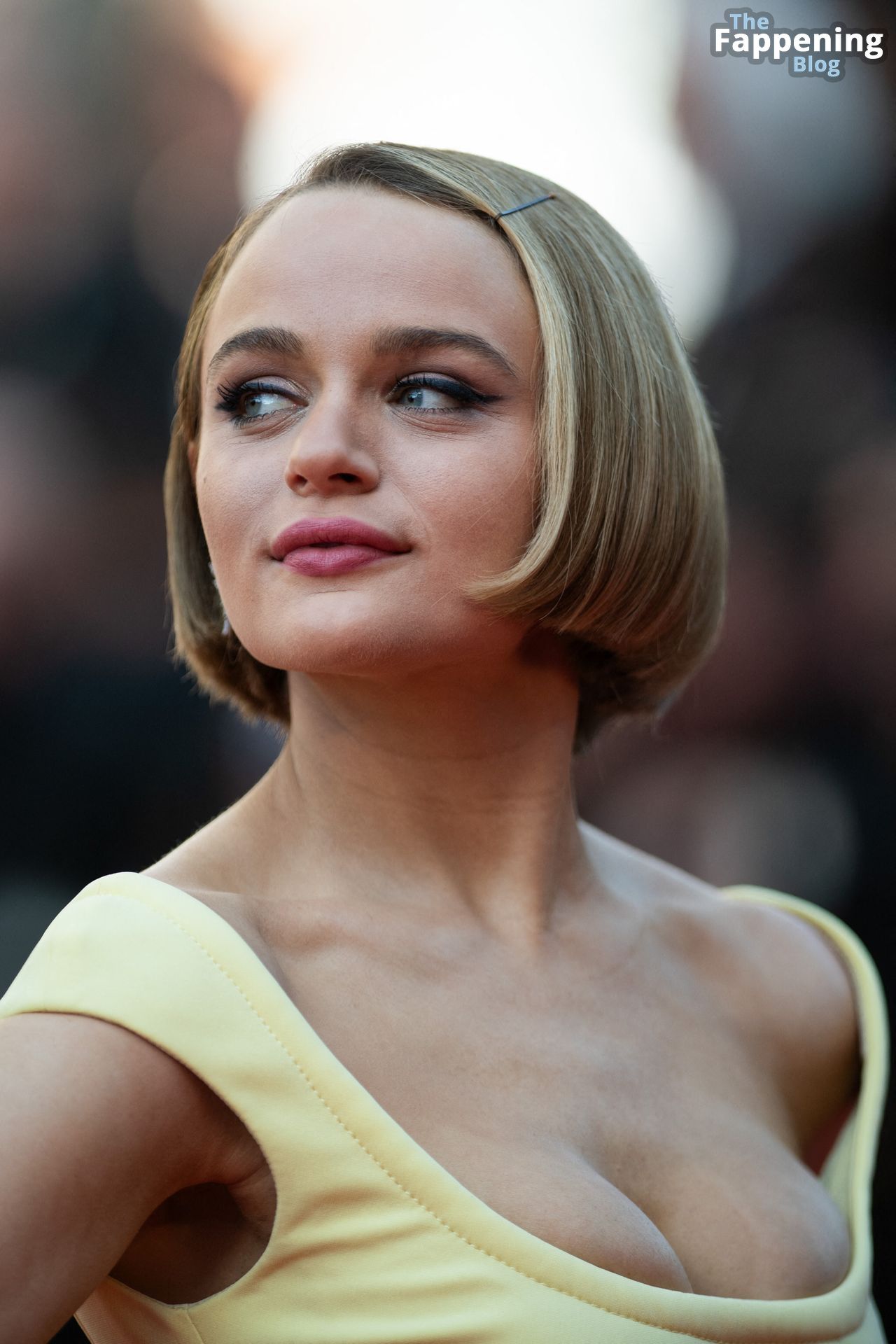 Joey King arrasou na cerimônia de encerramento do 77º Festival de Cinema de Cannes. Ela brilhou no tapete vermelho usando um vestido amarelo incrível da Miu Miu, super justo, que destacou suas curvas e um decote profundo mostrando seus seios volumosos.