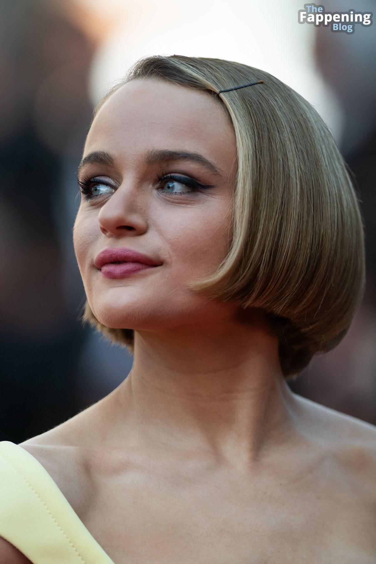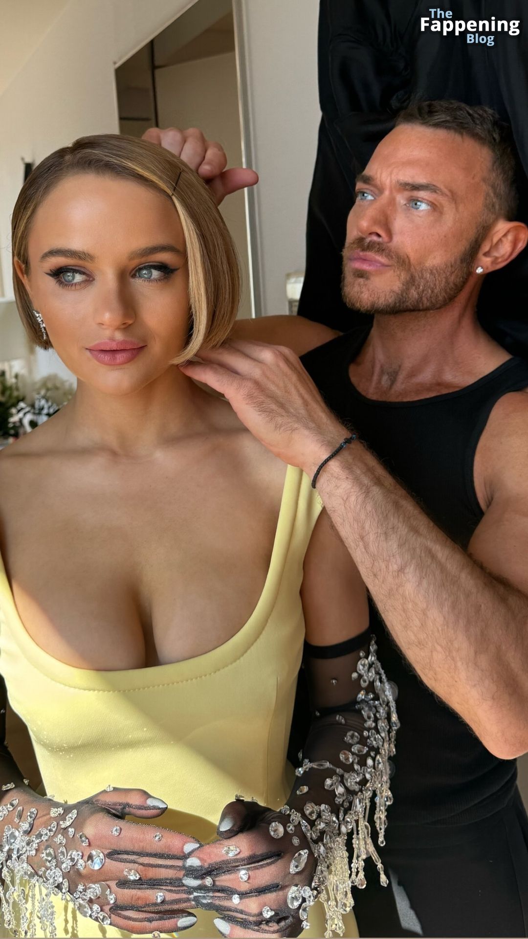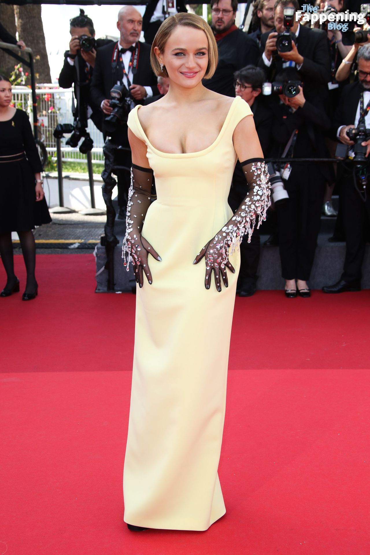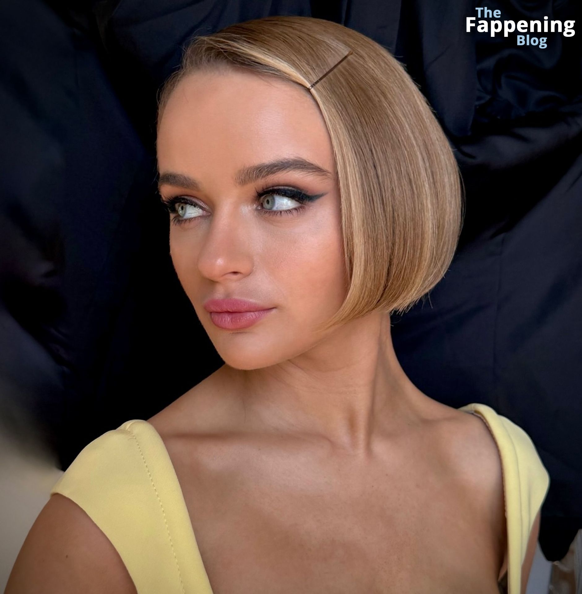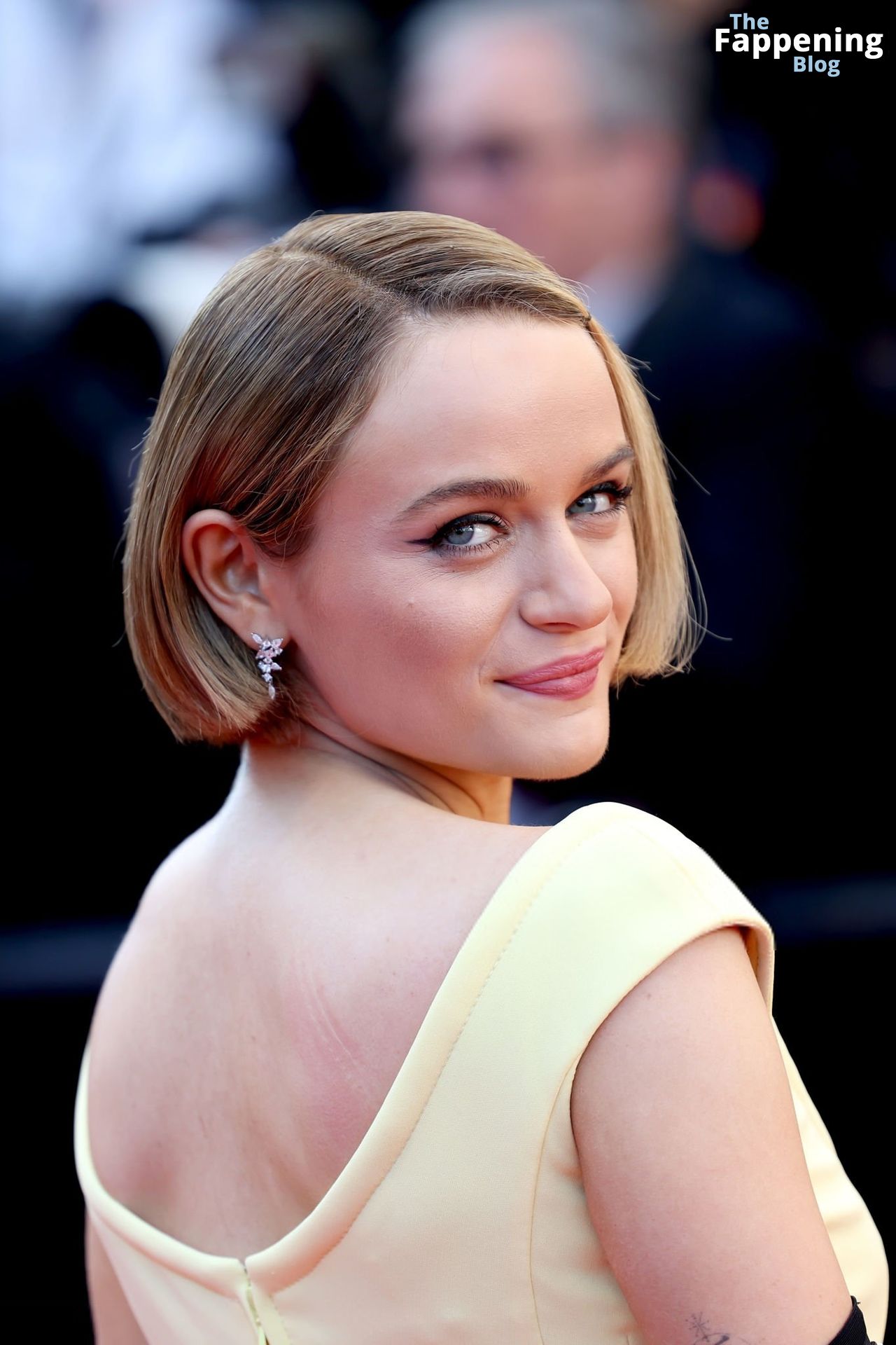 Joey King arrasou na cerimônia de encerramento do 77º Festival de Cinema de Cannes. Ela brilhou no tapete vermelho usando um vestido amarelo incrível da Miu Miu, super justo, que destacou suas curvas e um decote profundo mostrando seus seios volumosos.