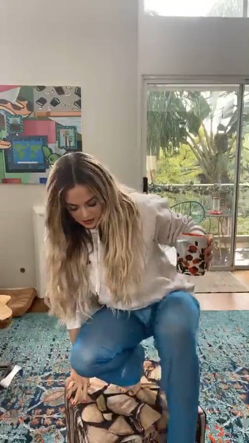 A cantora Joanna ‘JoJo’ Levesque teve um problema com o guarda-roupa ao acidentalmente expor seu grande seio nu e roupa íntima durante uma transmissão ao vivo no Instagram, 10/04/2020.