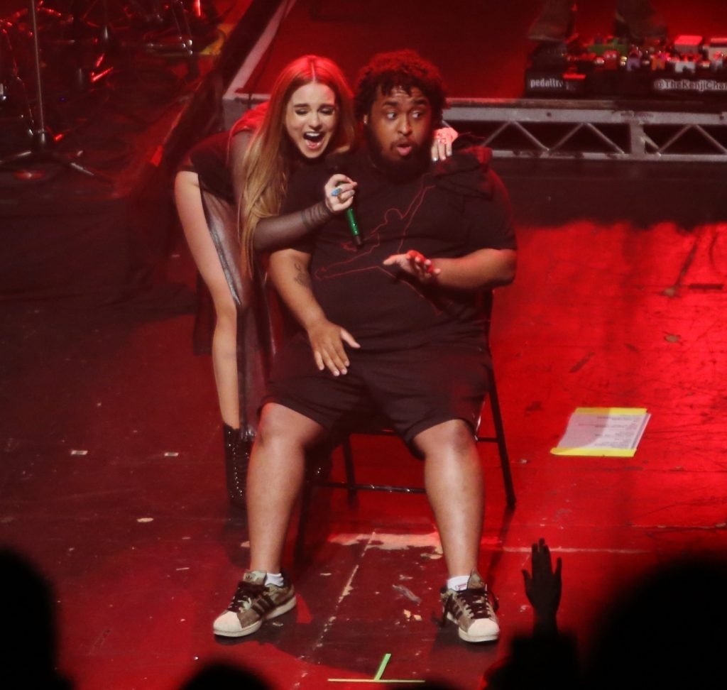 Meh, nem um pouco ousado. O que um homem negro gordo está fazendo no palco? Talvez para receber uma dança no colo? Lembro que a Rihanna costumava chamar caras ao palco e literalmente subir em cima deles. Nicki Minaj dava danças no colo no palco.