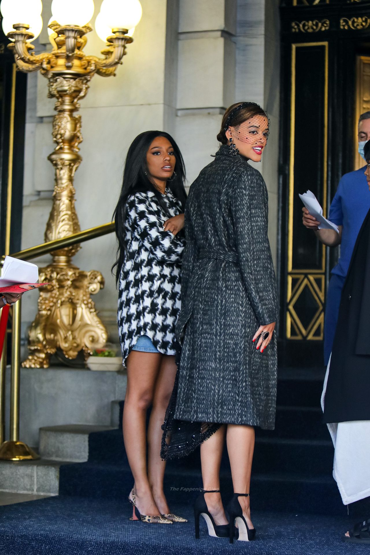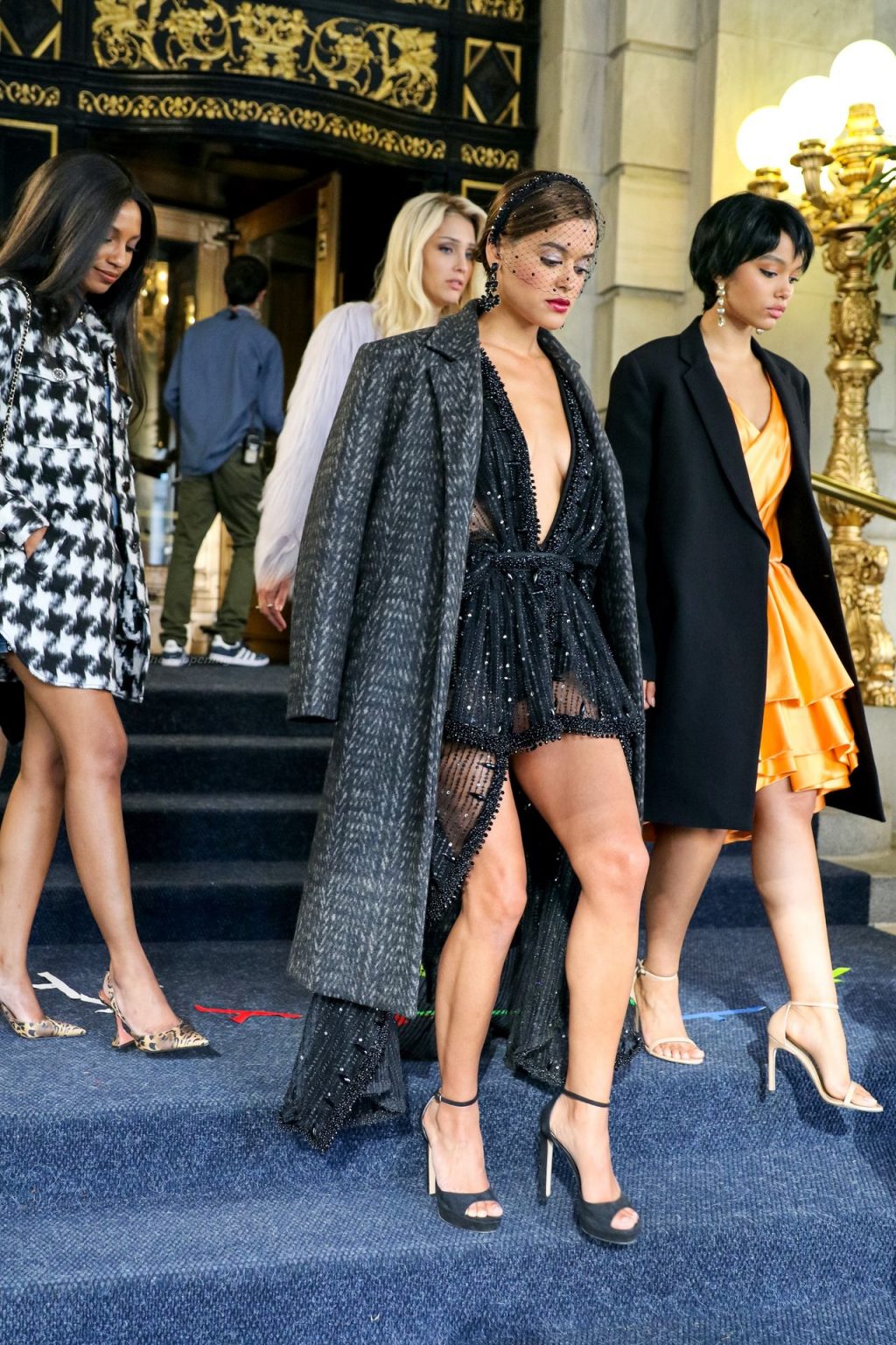 As atrizes de pernas longas Jordan Alexander e Whitney Peak foram vistas no set de filmagem da série de TV Gossip Girl em 23 de junho de 2021, na cidade de Nova York.
