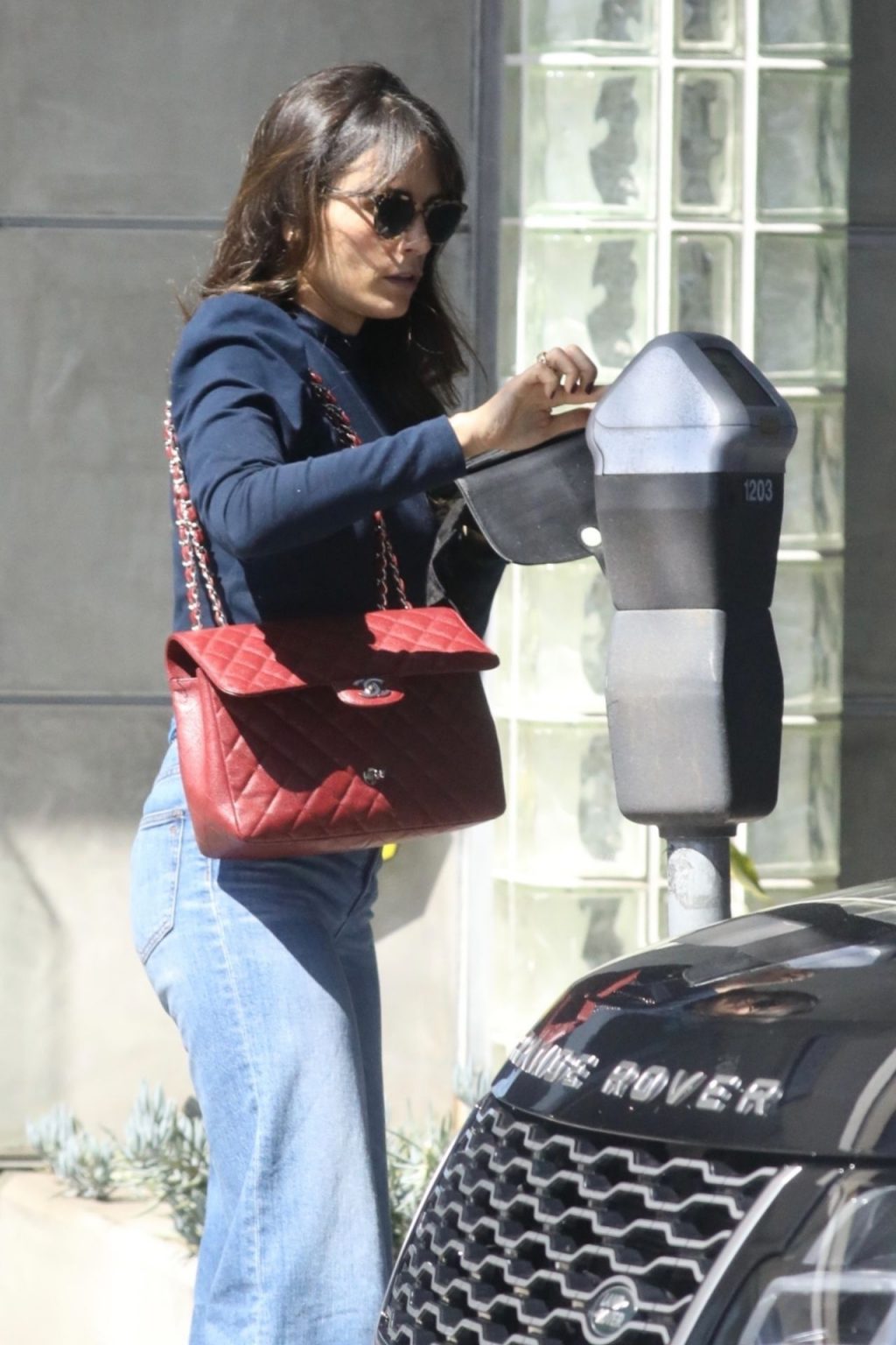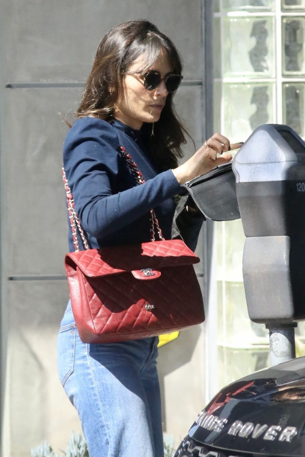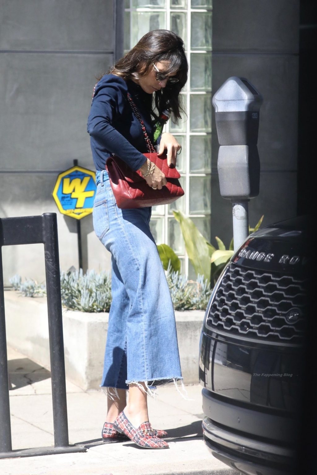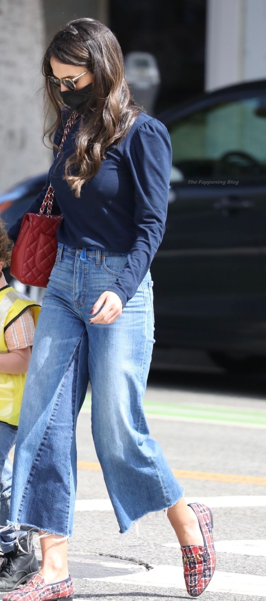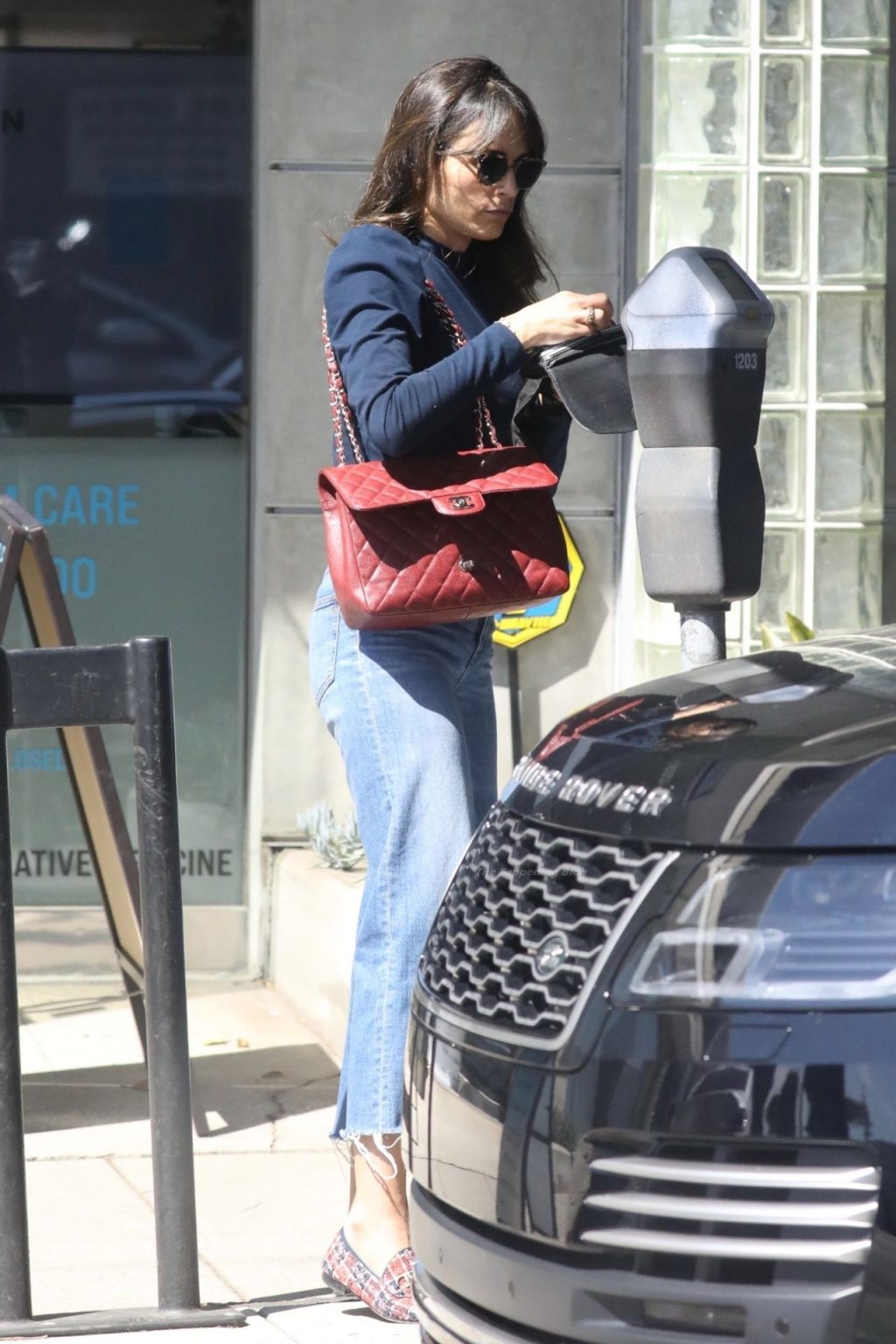 Jordana Brewster foi fotografada fazendo tarefas pela cidade, 17/03/2021. A estrela morena usava uma blusa azul marinho com jeans e sapatilhas coloridas.