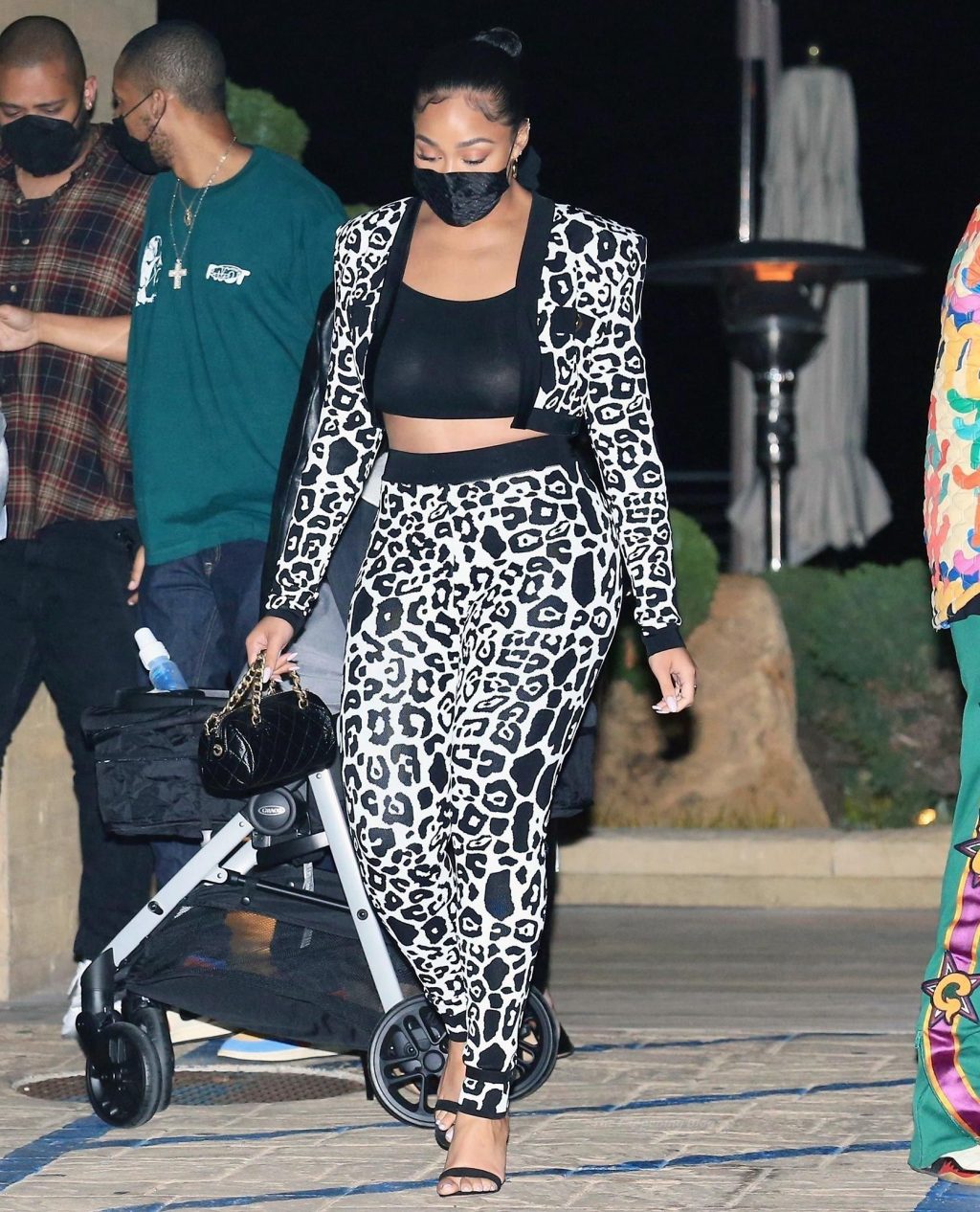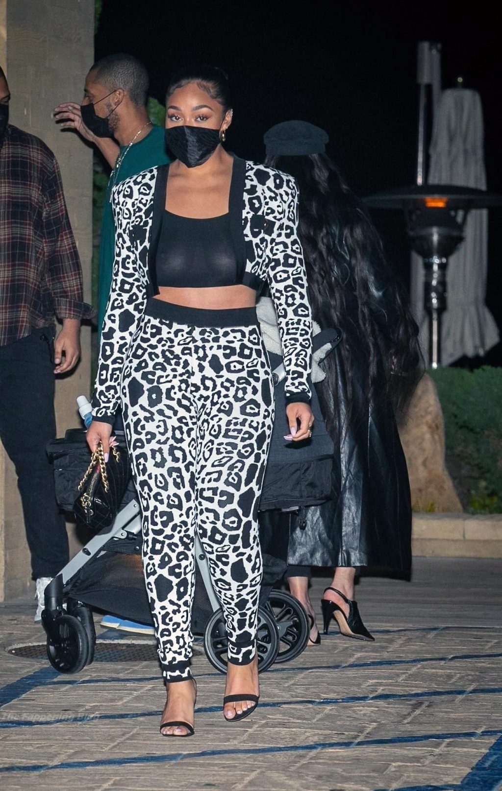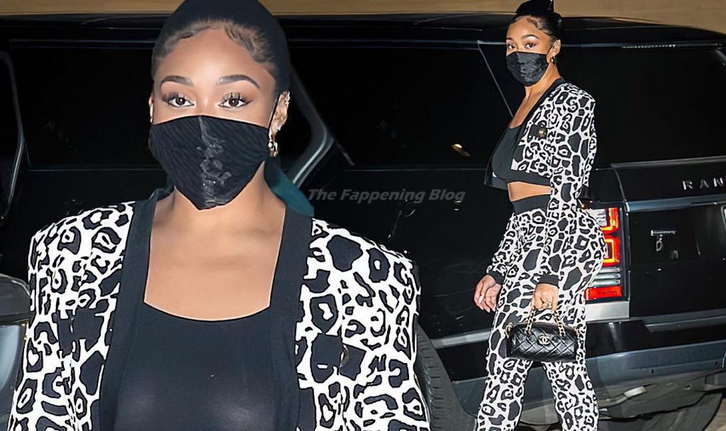 All right, guys, so here are some photos showing miss Jordyn Woods’s tits in a see-through top! She wore this outfit while out celebrating her mom’s birthday in Malibu. She didn’t forget to put her mask on, but she left her bra at home!