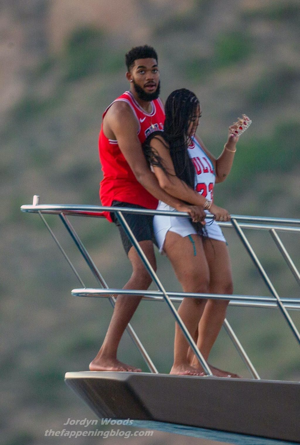 Jordyn Woods celebrated her birthday with alleged boyfriend Karl-Anthony Towns in Mexico on September 23, 2020. Jordyn was showered with luxury bags worth over $50 000 from the Minnesota Timberwolves player, including an ostrich Hermes Birkin, a second Birkin, and a crystal-covered Chanel case. Jordyn’s birthday celebration featured a black and red theme, complete with personalized “Woods” jerseys bearing the number 23! Jordyn was also sent a signed Michael Jordan jersey by Towns, which sells for about $8 000. Jordyn is in Cabo for a holiday, and the couple was seen relaxing on a yacht, jet skiing, and getting together during the day.