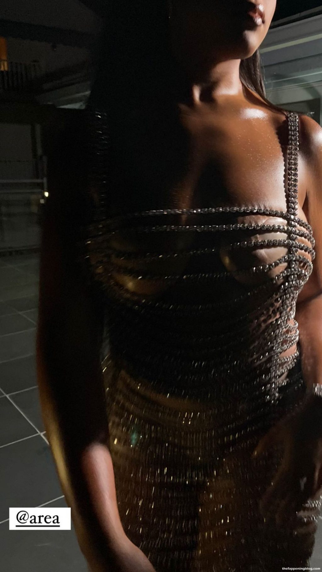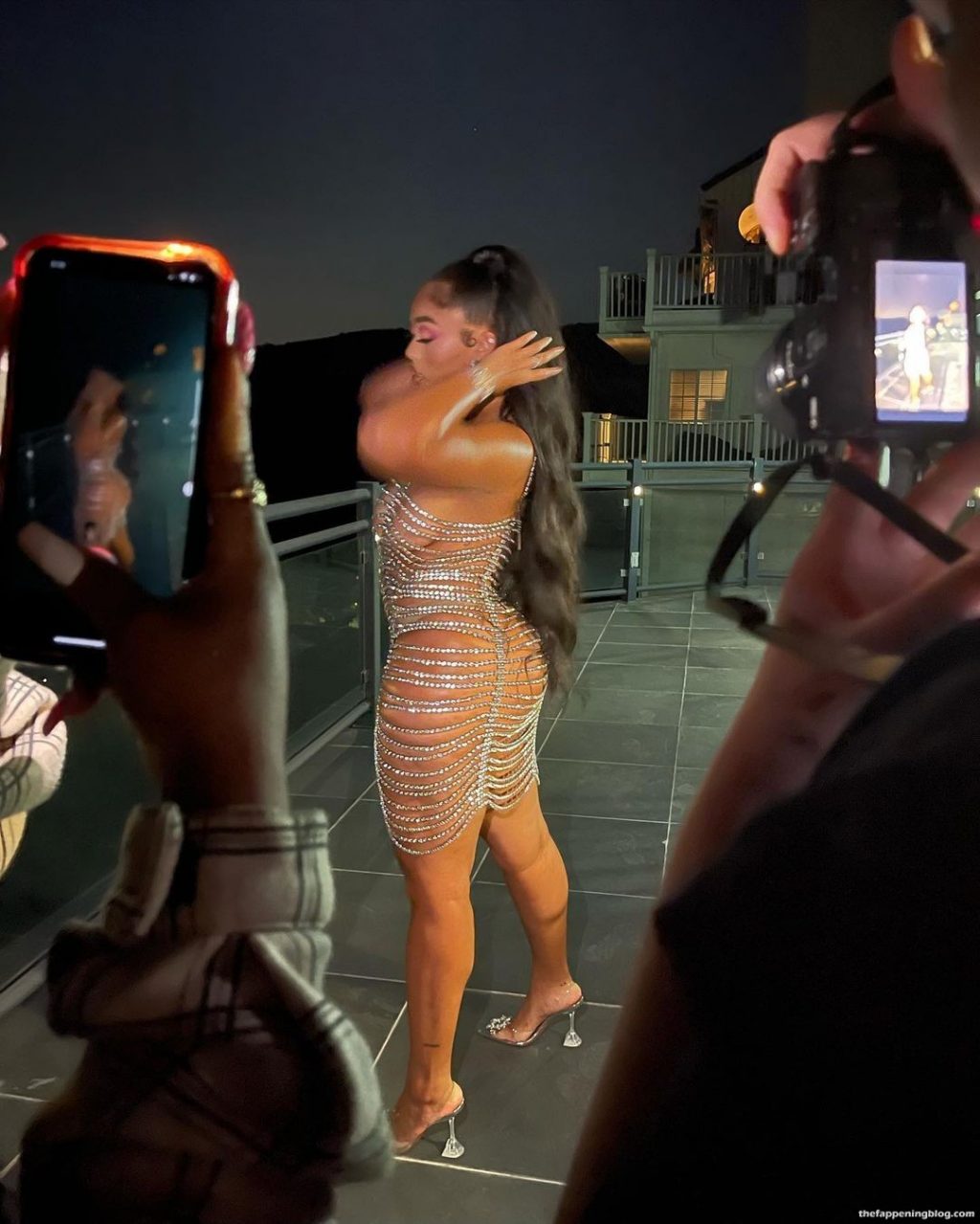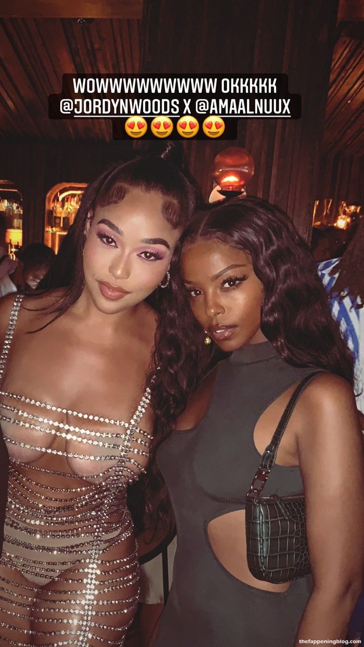 Modelo Jordyn Woods impressiona com um vestido transparente, mostrando seus seios com pasties na festa de aniversário em Los Angeles, 18/09/2021.
