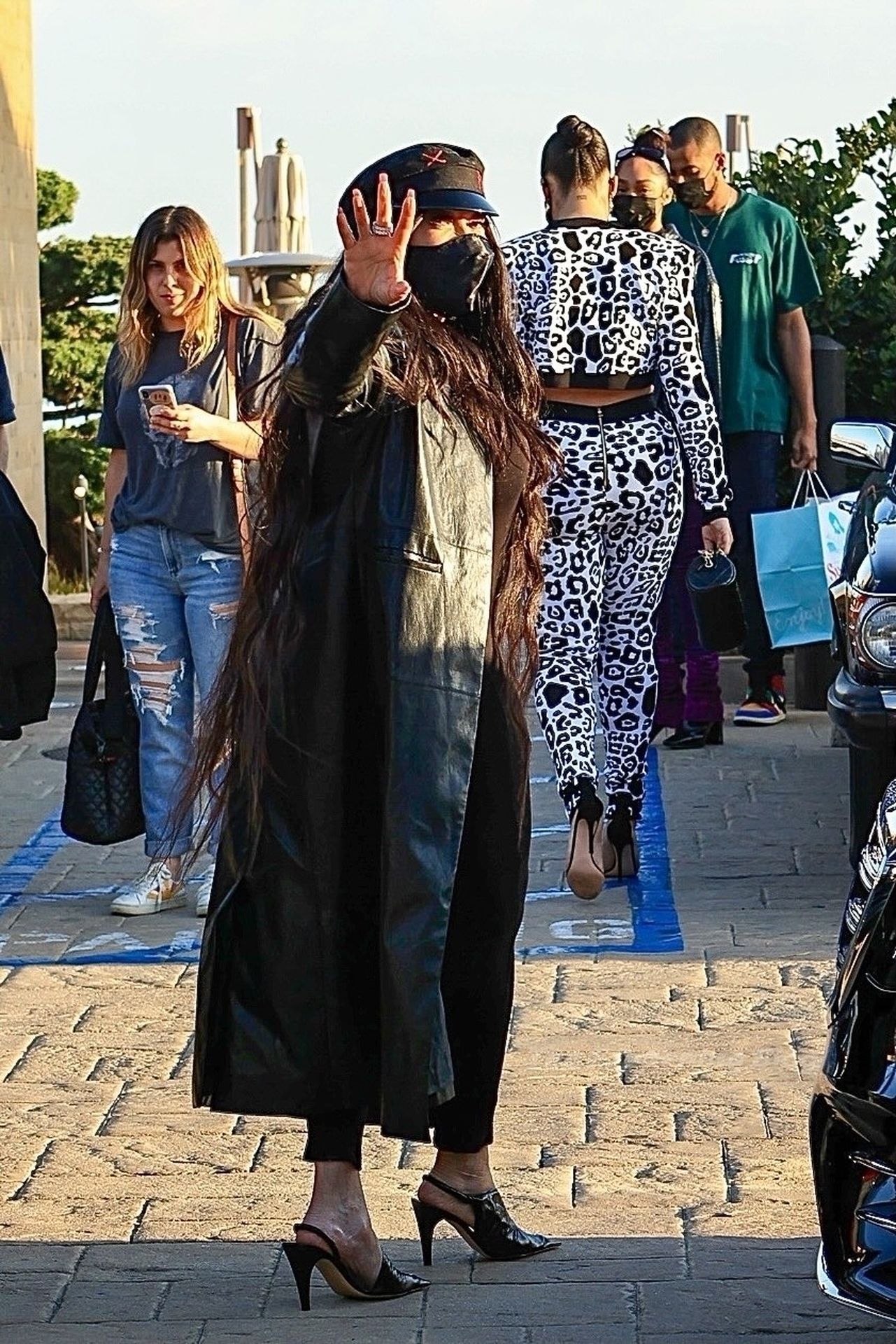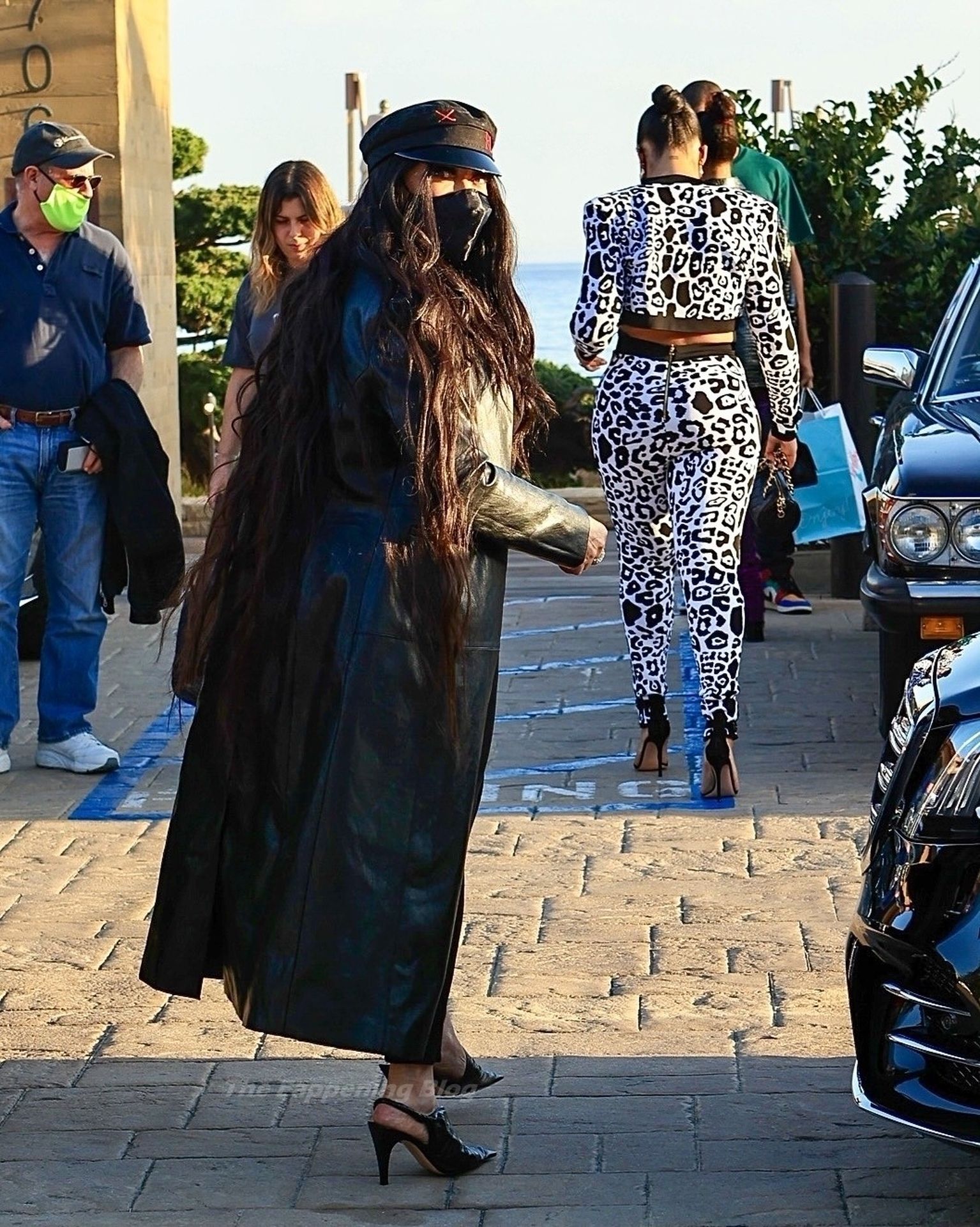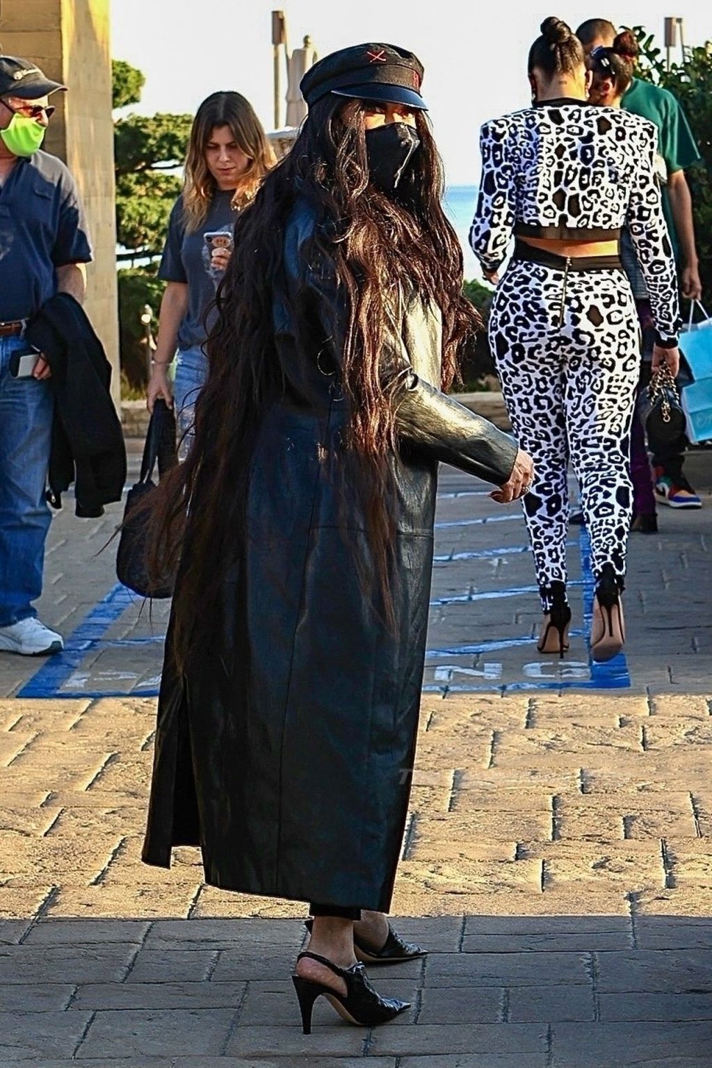 Jordyn exibiu seu corpo curvilíneo em um conjunto de duas peças com estampa de vaca preta e branca, com um top preto transparente, quase sofrendo um problema de guarda-roupa porque é possível ver seu seio, combinado com saltos pretos e óculos Chanel pretos, além de uma bolsa Chanel.