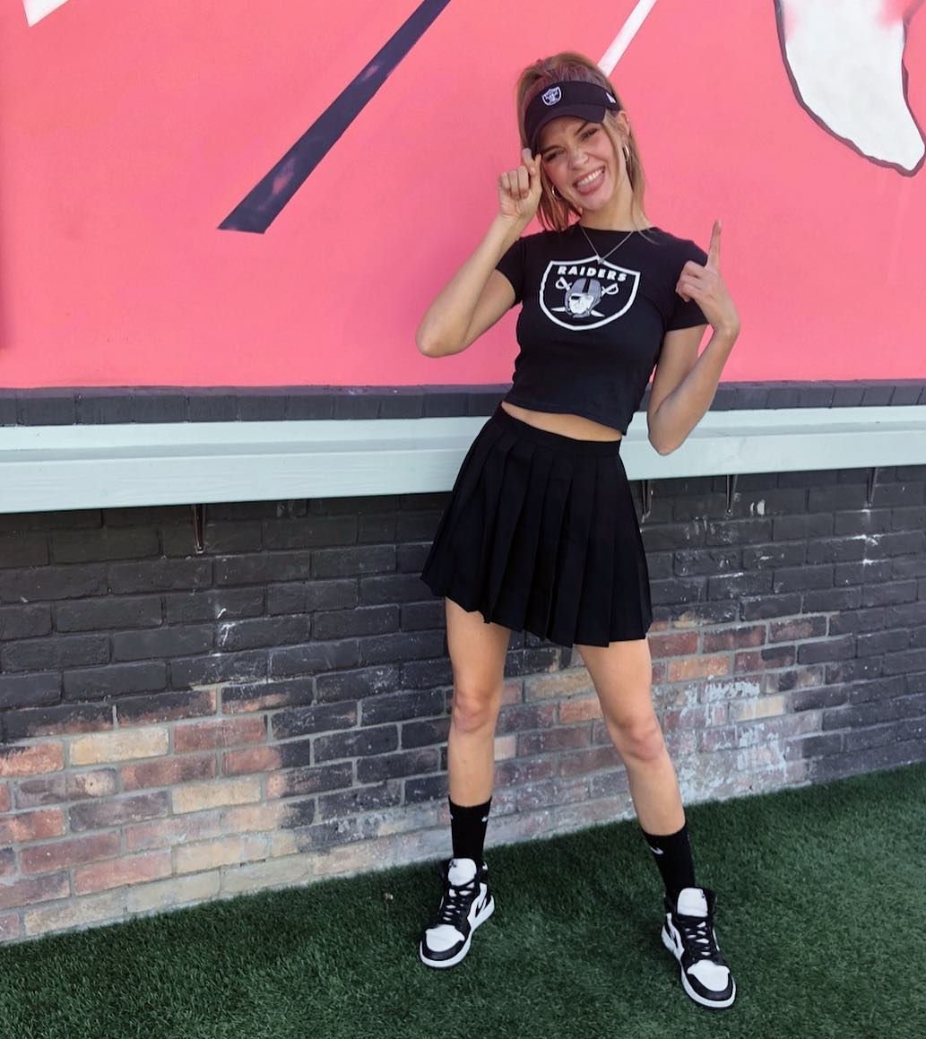 Josephine Skriver está torcendo pelo Oakland Raiders (NFL) – Instagram (setembro de 2018). A modelo sexy de 25 anos mostrou para todos os fãs seu bumbum e decote sexy.