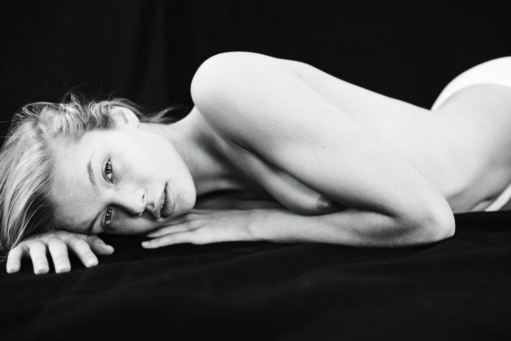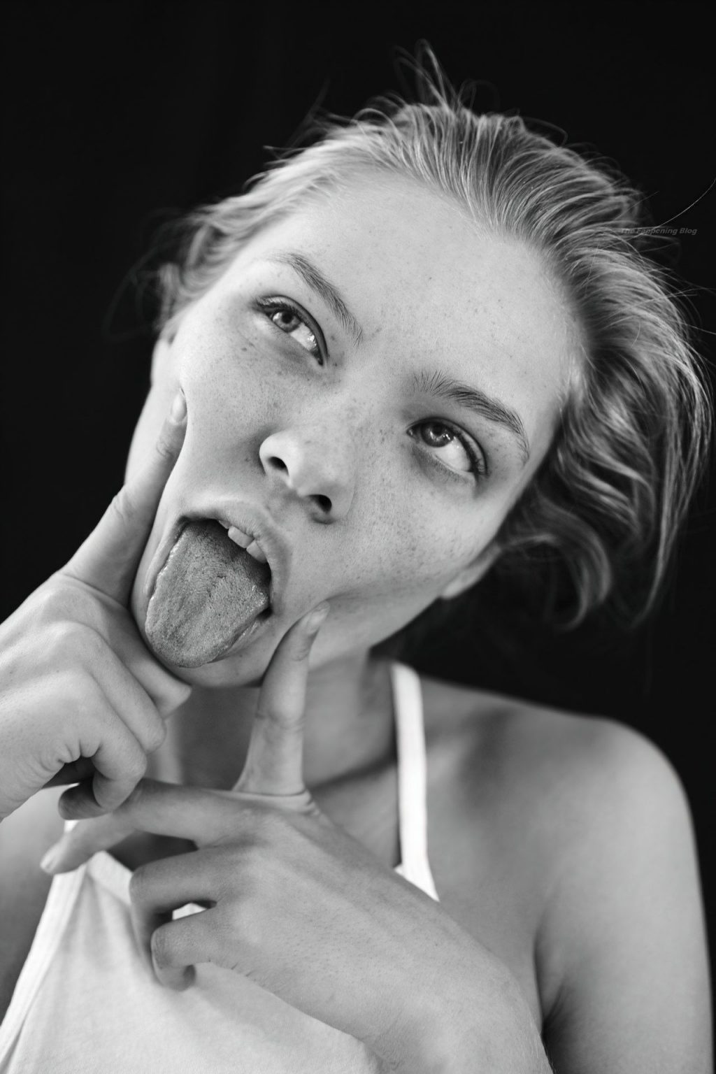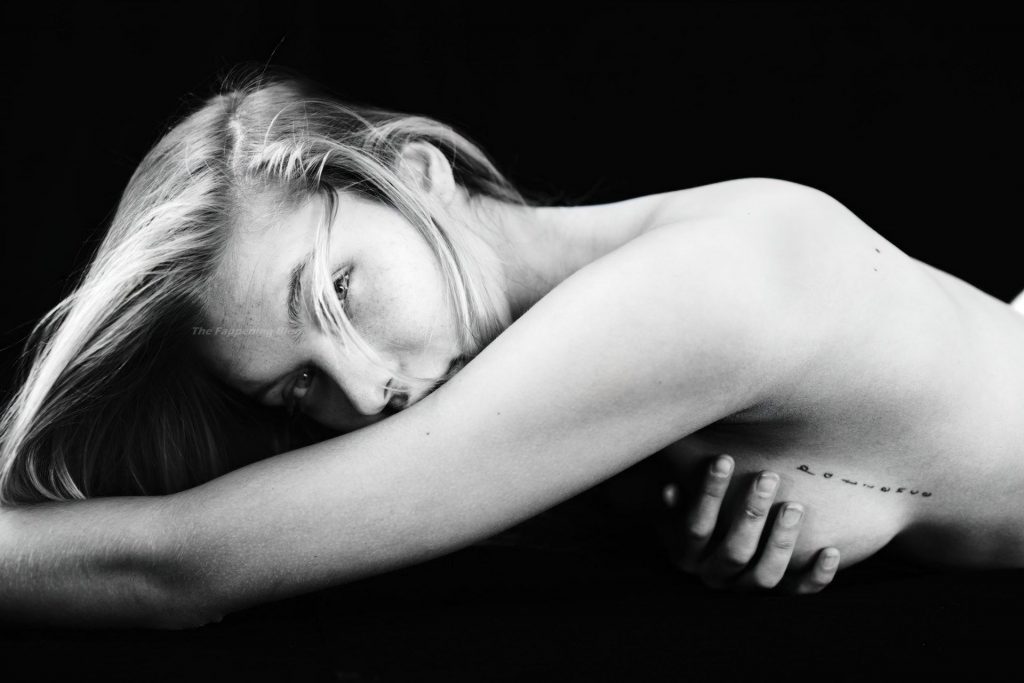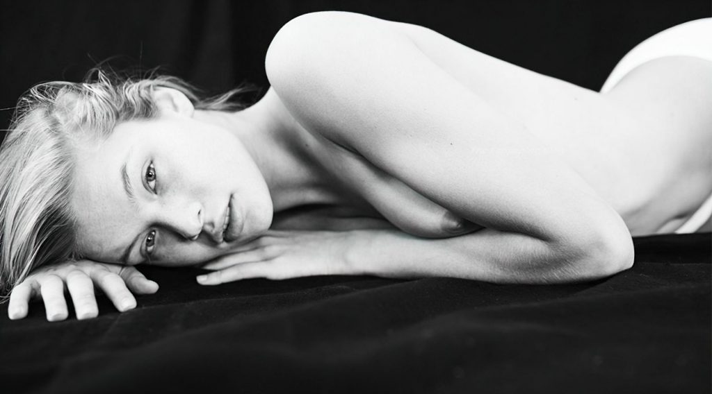 Model Josie Canseco exibe seus seios nus, posando topless em um ensaio fotográfico em preto e branco de Billy Kidd (2016).