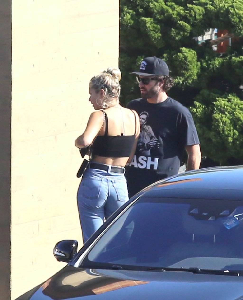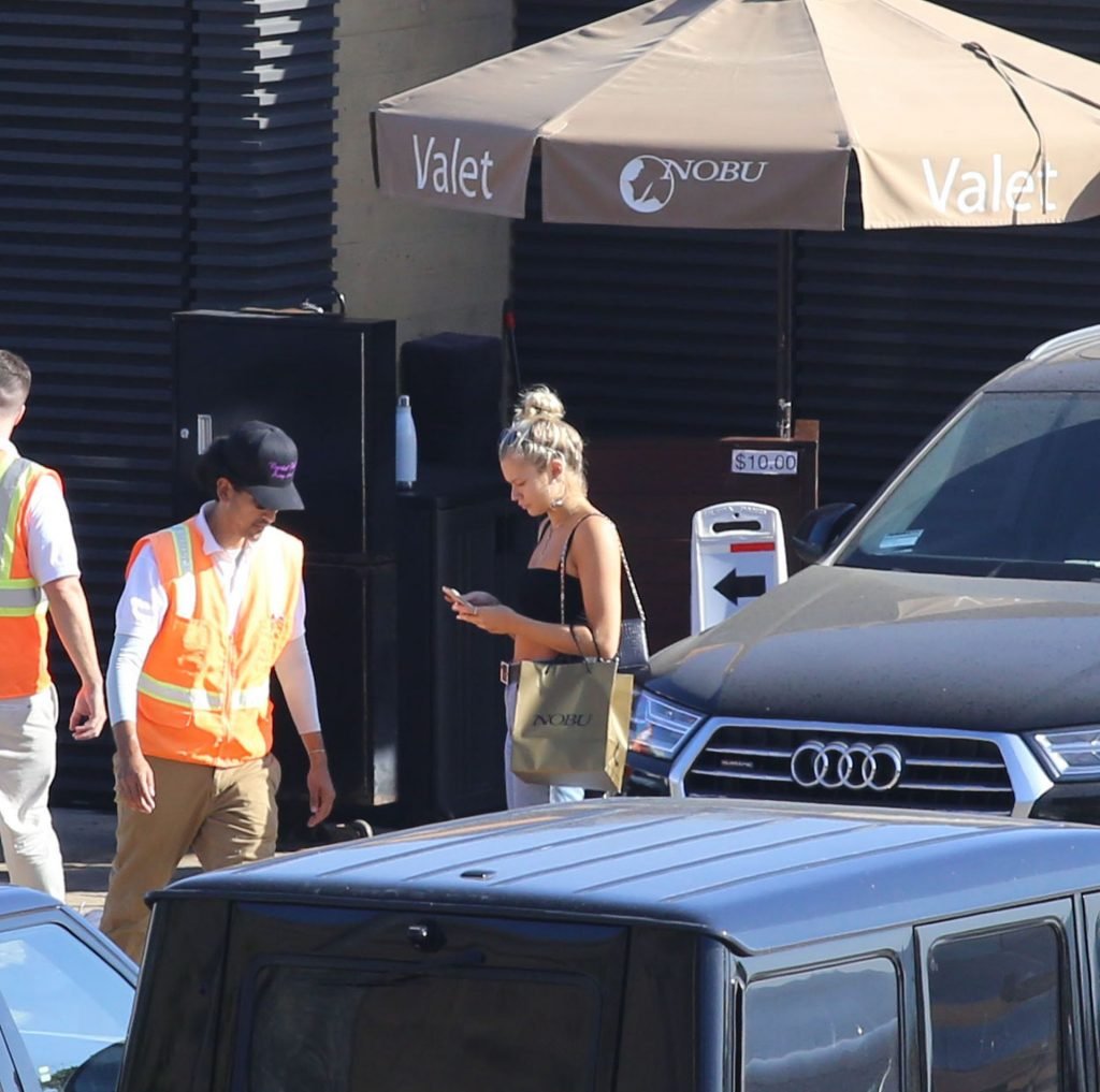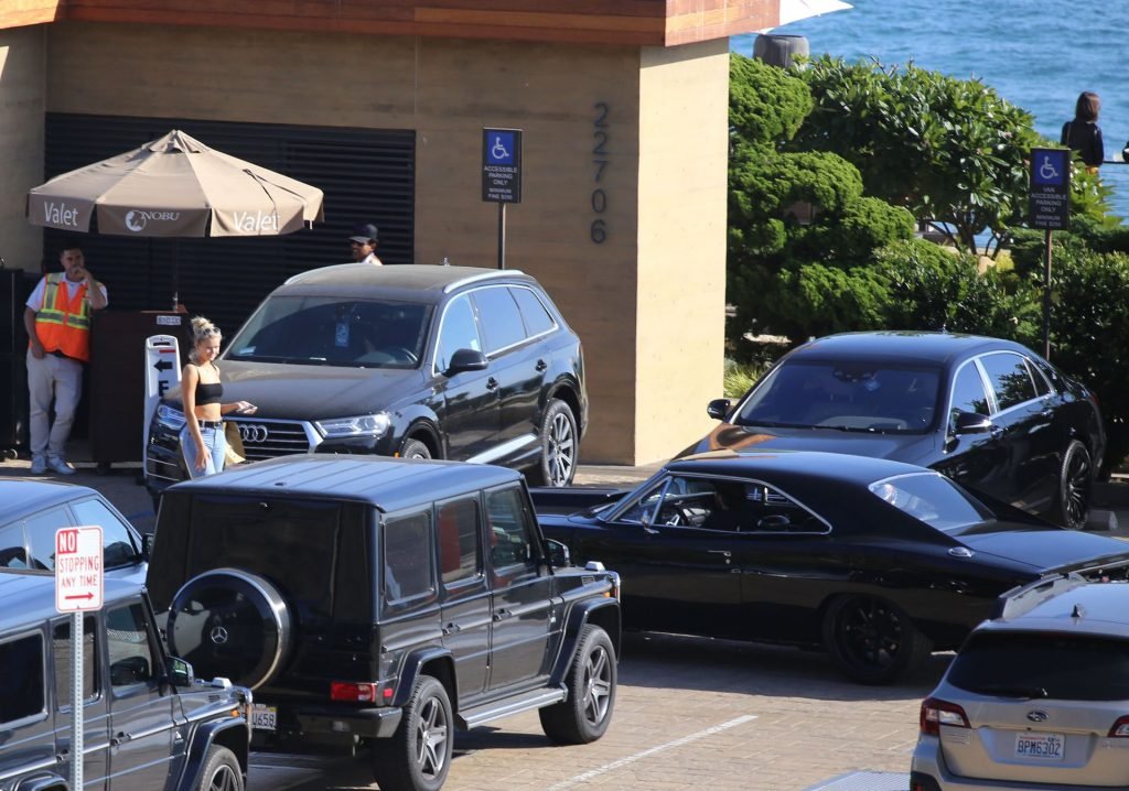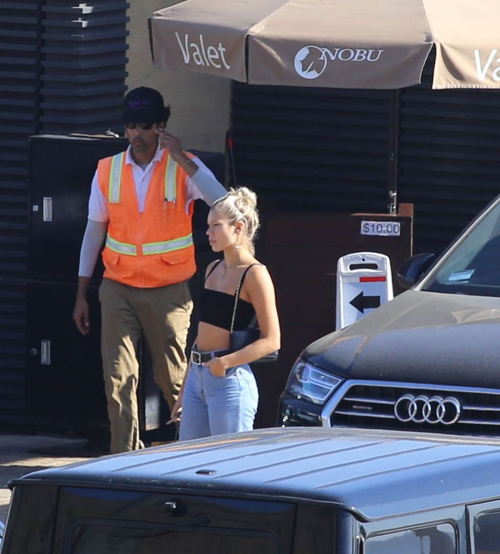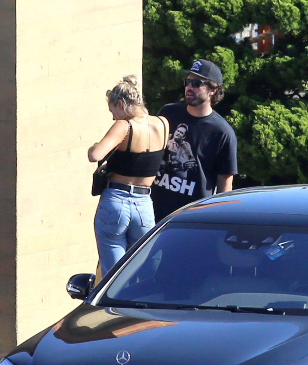 Brody Jenner abraçando e beijando Josie Canseco após almoçarem juntos no Nobu em Malibu, Califórnia, 02/10/2019. Josie estava usando uma blusa curta e carregava uma bolsa de grife. Brody estava usando uma camisa do Johnny Cash.