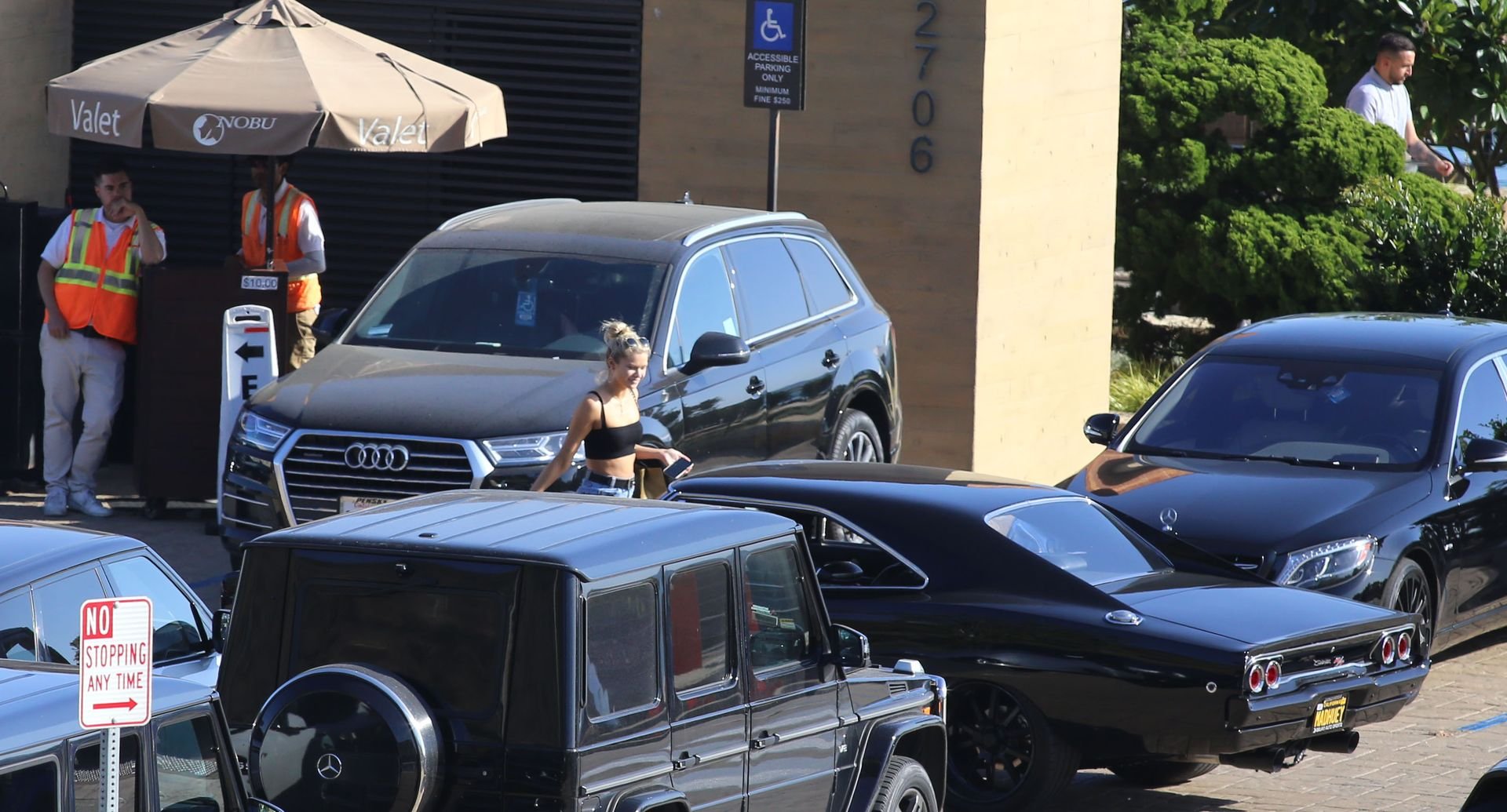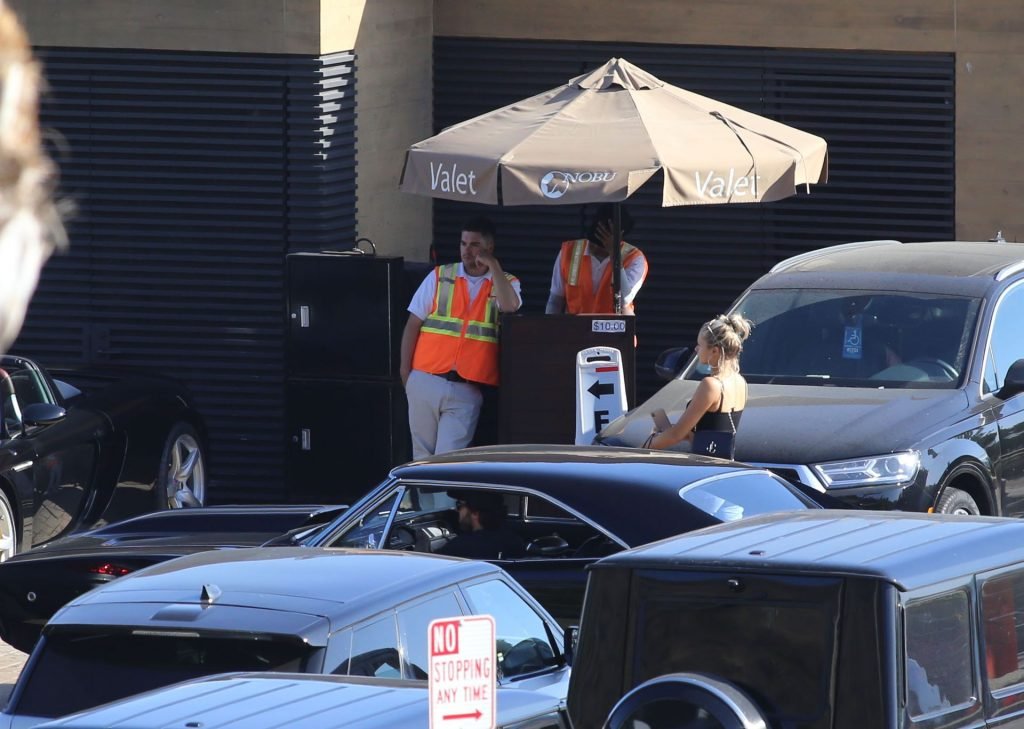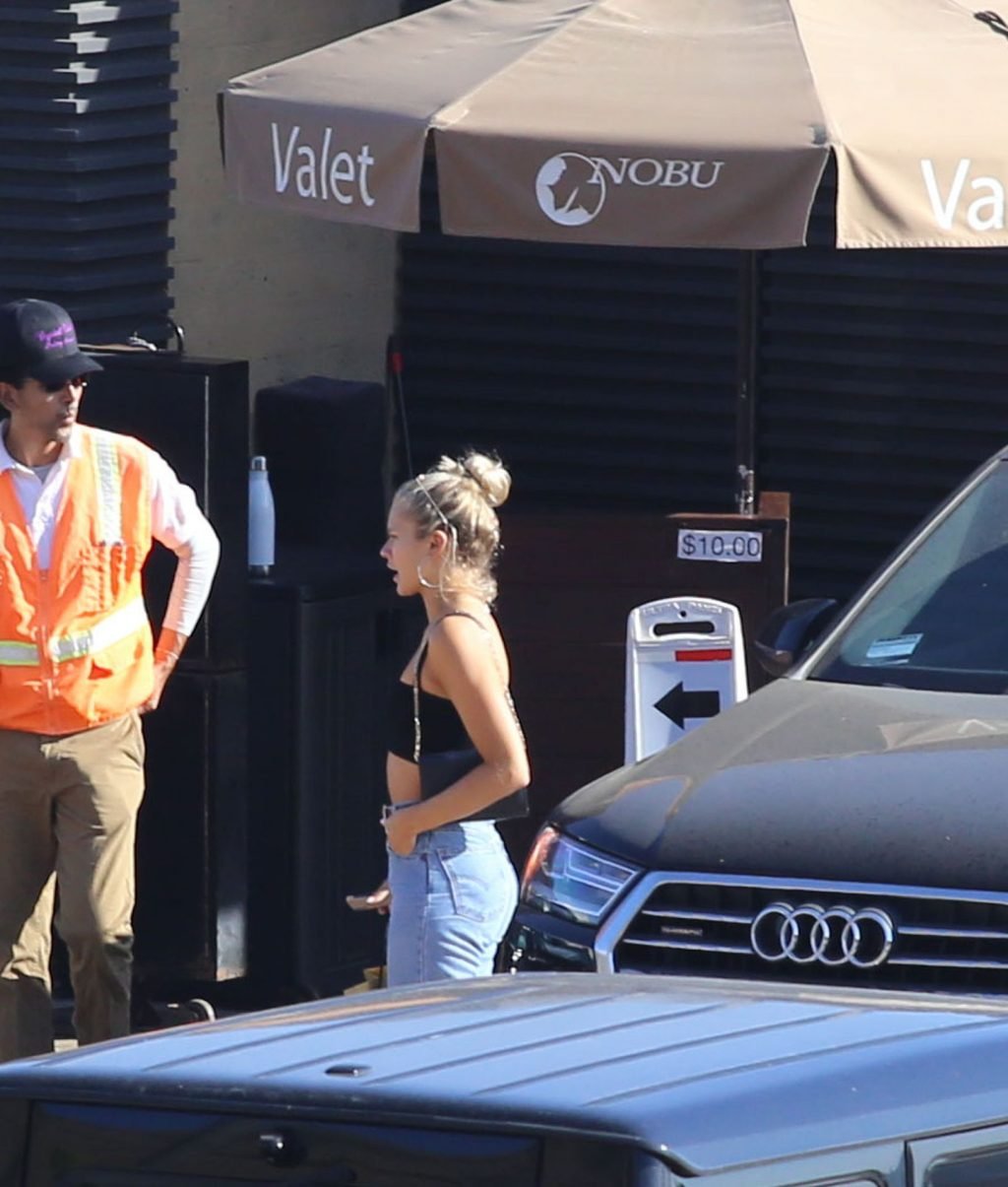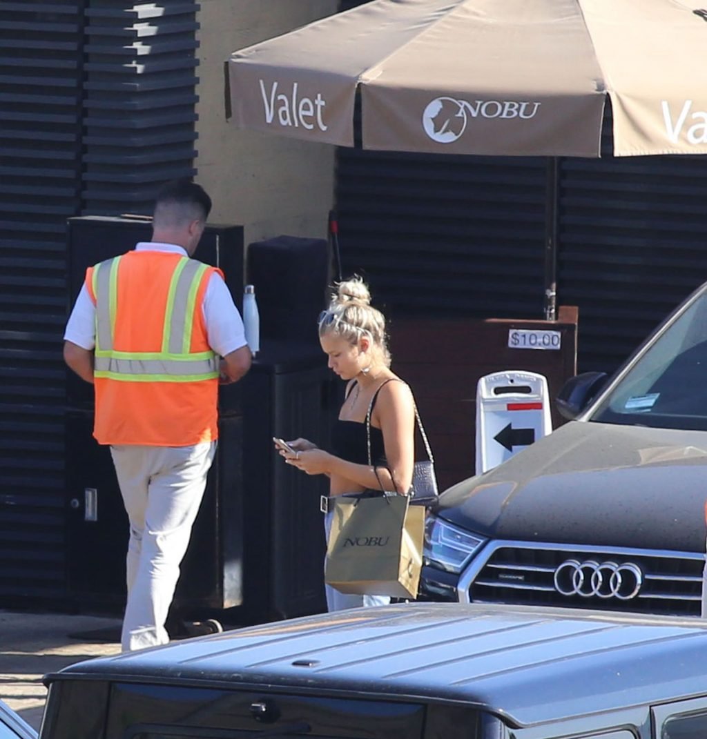 Brody Jenner abraçando e beijando Josie Canseco após almoçarem juntos no Nobu em Malibu, Califórnia, 02/10/2019. Josie estava usando uma blusa curta e carregava uma bolsa de grife. Brody estava usando uma camisa do Johnny Cash.