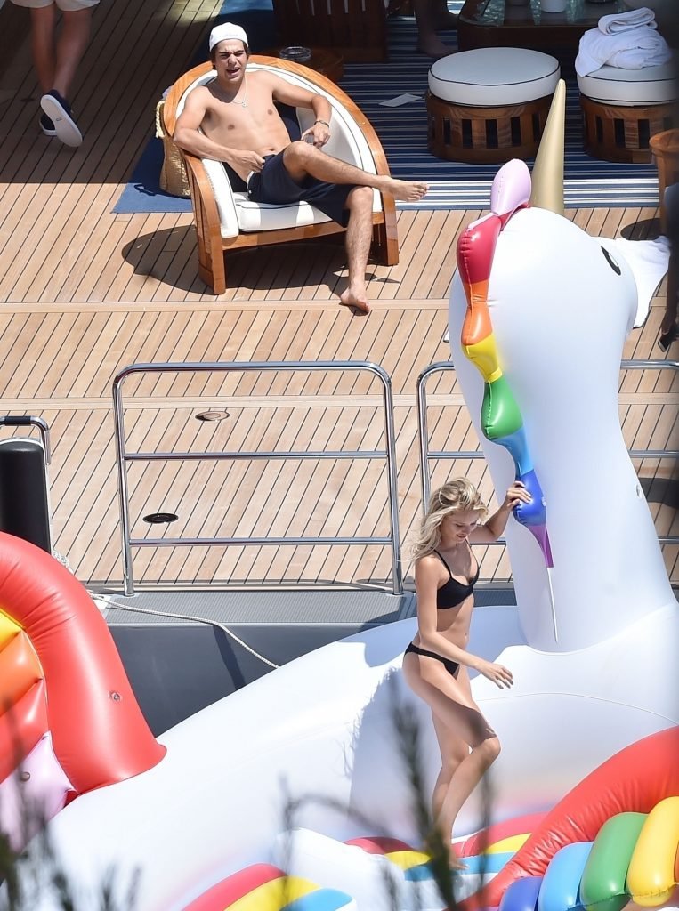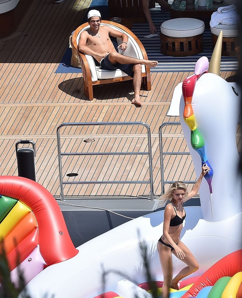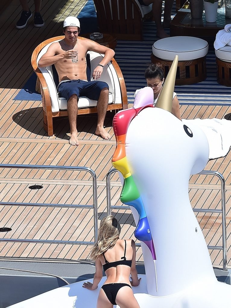 Piloto canadense de Fórmula 1 Lance Stroll relaxando em seu barco durante as férias em Portofino, 19/06/2018. O piloto da Williams foi acompanhado no navio pela modelo Josie Marie Canseco, onde ela posou para um ensaio fotográfico sexy exibindo seu corpo tonificado sob o quente sol italiano.