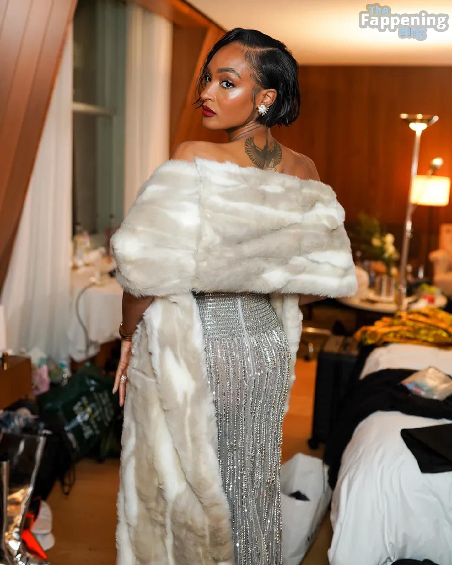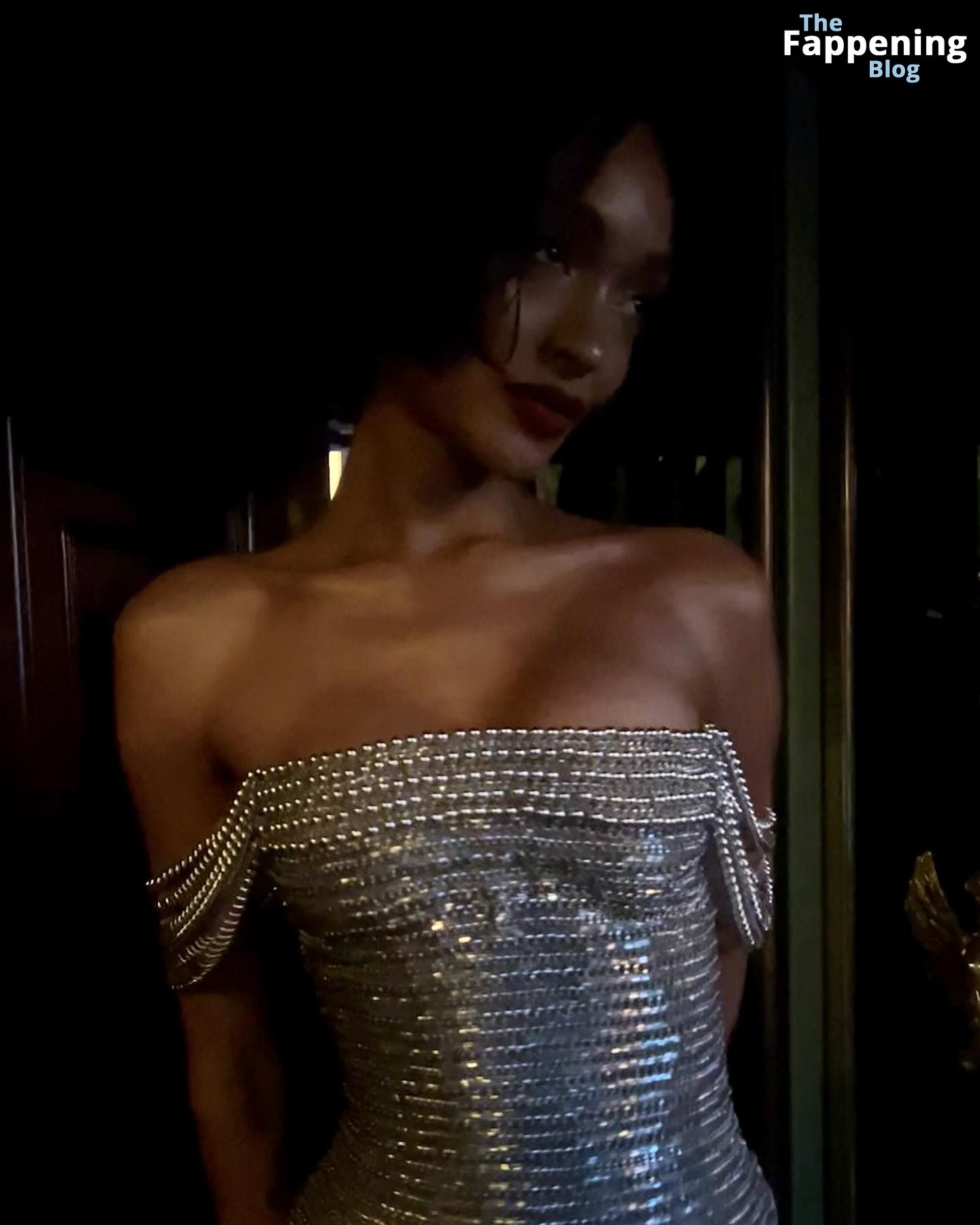 A modelo britânica Jourdan Dunn fez uma aparição deslumbrante na festa de Moda e Cinema da British Vogue e Tiffany & Co. em Londres, usando um vestido prateado justo que parecia feito de pequenas correntes. O vestido destacava os ombros de Dunn e abraçava seu busto generoso.