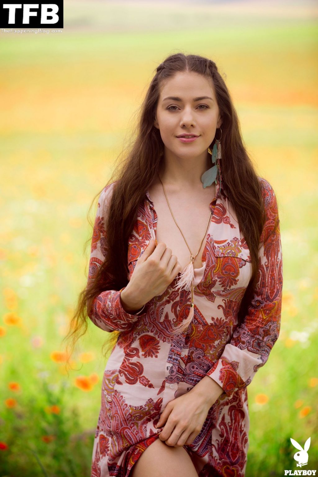Modelo holandesa Joy Draiki posa ao ar livre no ensaio fotográfico da Playboy “Alma Animada”, mostrando seu corpo nu deslumbrante, belos seios, bunda e buceta, recebendo a energia da natureza.