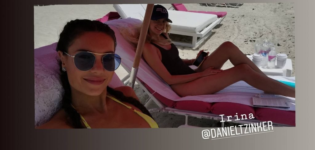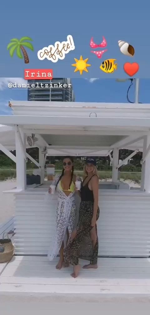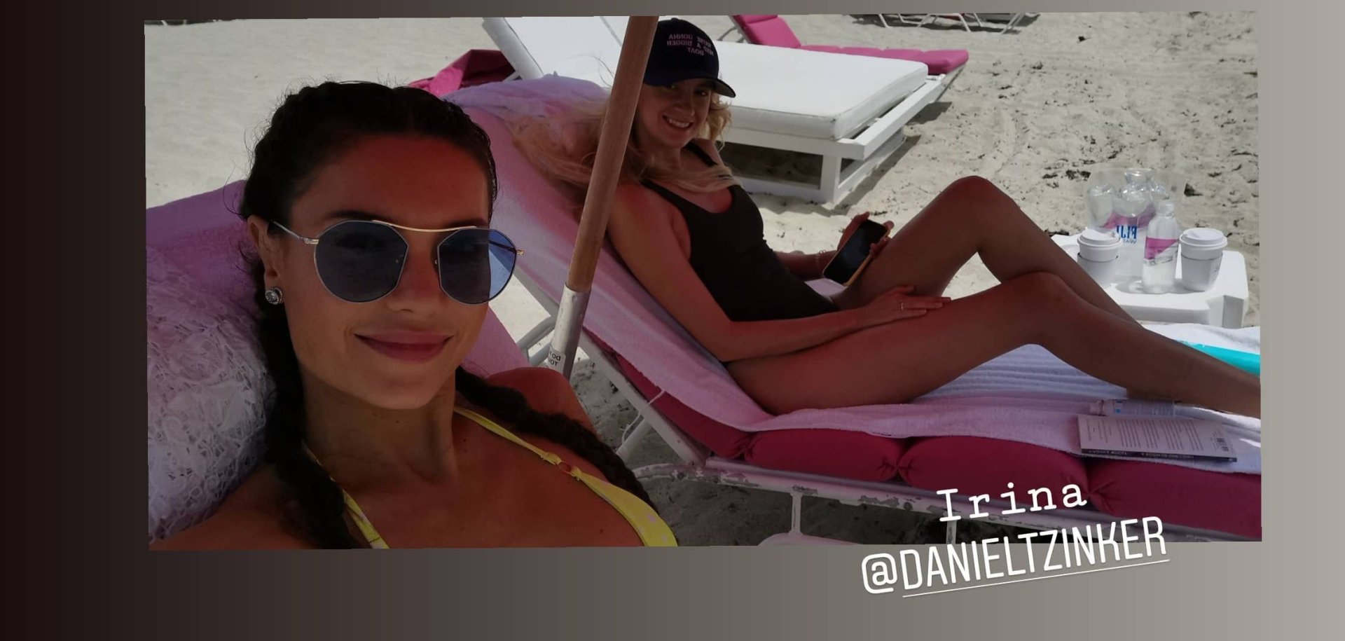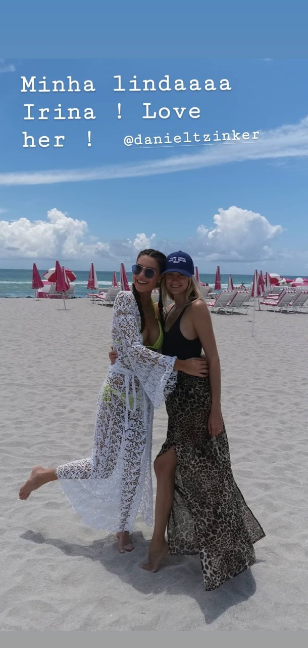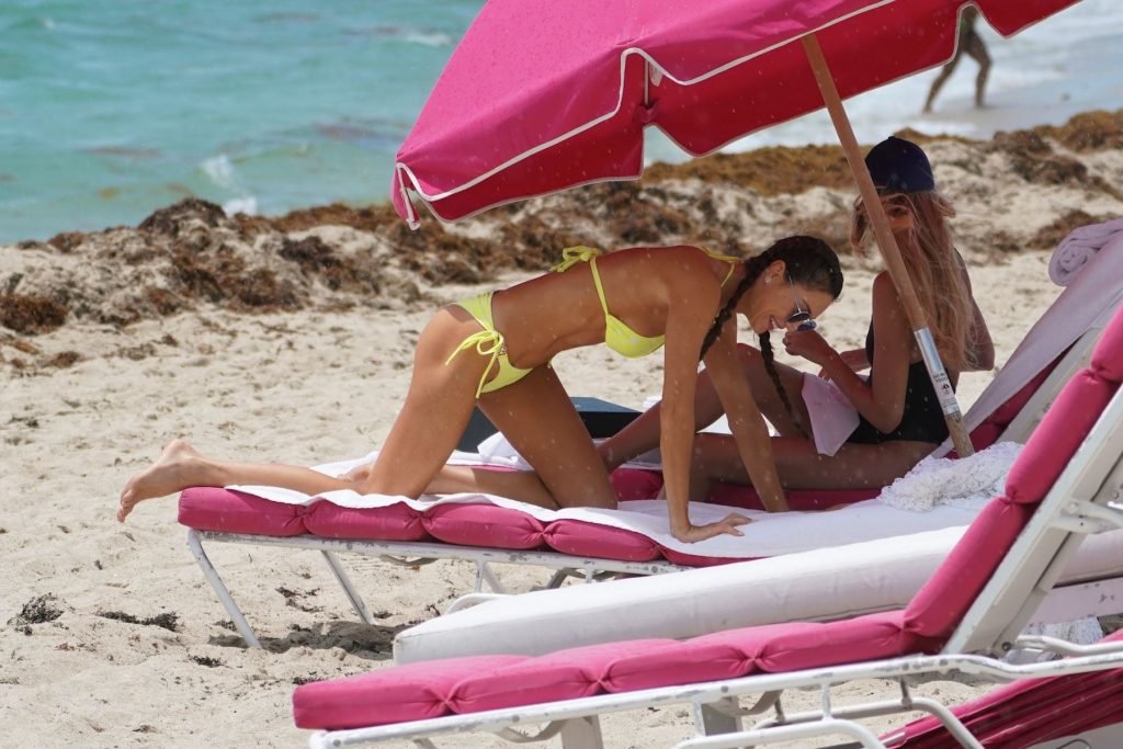 Fashion model Julia Pereira foi vista usando um biquíni amarelo de top triangular na praia na tarde de segunda-feira em Miami Beach, 15/07/2019. Julia passou seu dia de folga na praia com Irina Tokman.