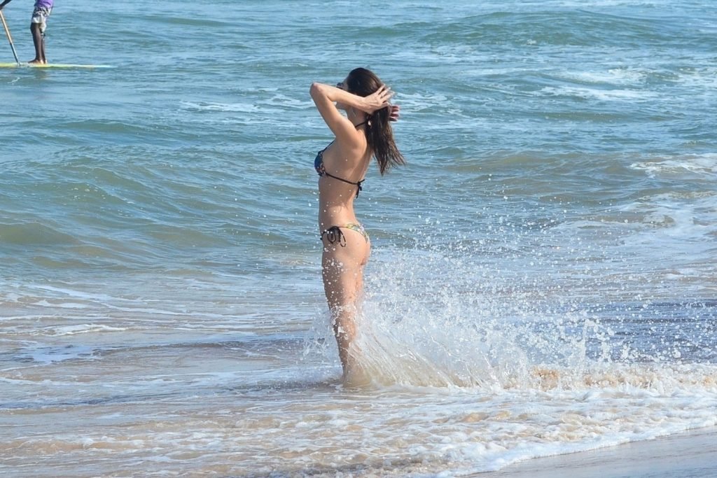 A modelo Julia Pereira exibe seu corpo de biquíni na praia na Bahia, Brasil, 27/08/2018. Julia está ótima enquanto aproveita seu dia ensolarado na praia.