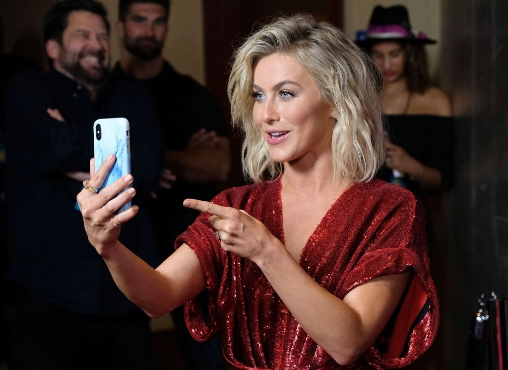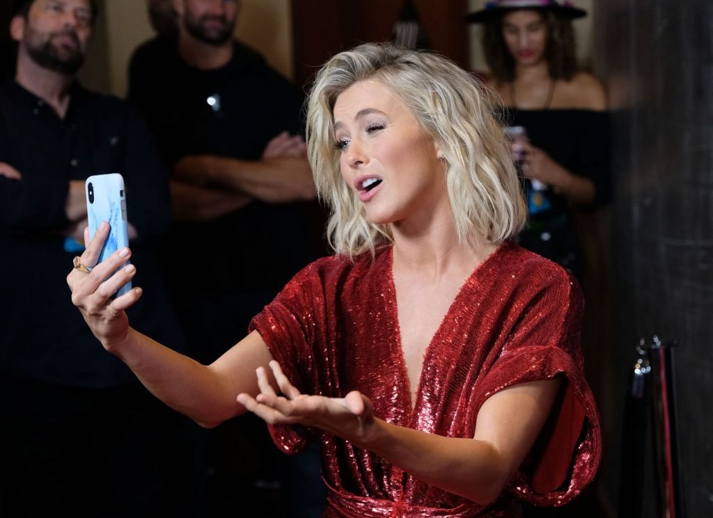 Julianne Hough exibiu suas pernas sexy, posando com um vestido vermelho curto no Show Ao Vivo da 14ª Temporada do “America’s Got Talent” no Dolby Theatre em Hollywood, 20/08/2019.