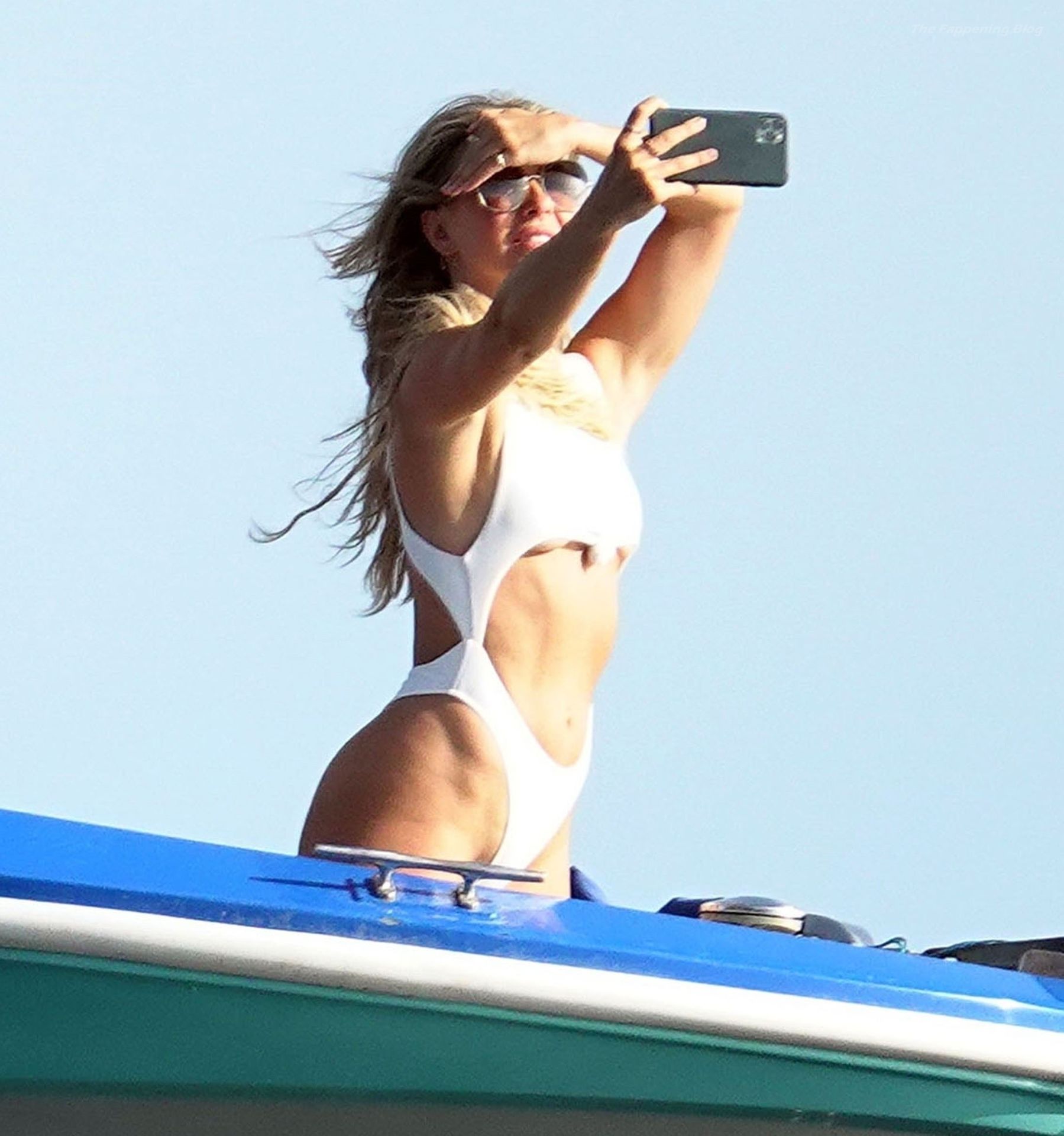 Julianne parecia sexy em seu barco no mar enquanto tirava algumas selfies em suas sensuais férias de verão.