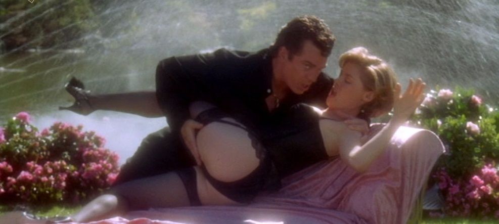 This is followed by several scenes from Conception. In the first one, Julie Bowen lies on her side of the bed, showing her ass when she talks to a guy. Then she crawls across the bed to him, showing his cleavage. And then he makes out with Julie until he gets up to leave.