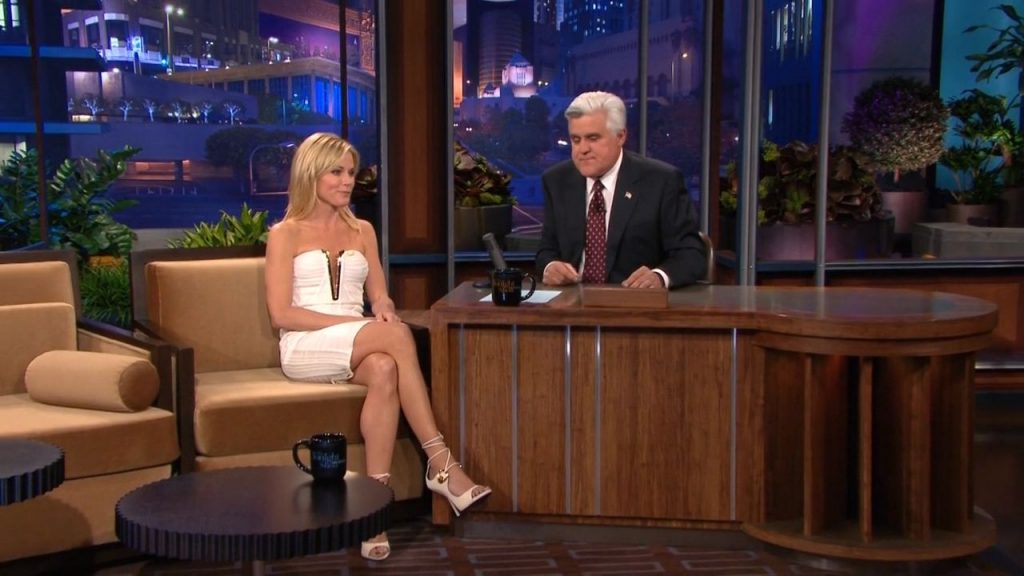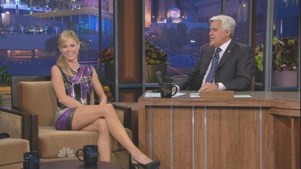 Then we have a hot scene of Julie Bowen from Modern Family, where she is seen entering the room in a black bra and underwear. She has a loose robe hanging down as she shows some cleavage and talks to a guy in a video chat. Then, realizing he can see her, she falls to the floor, and you see Julie Bowen’s ass in her black panties when she starts crawling.