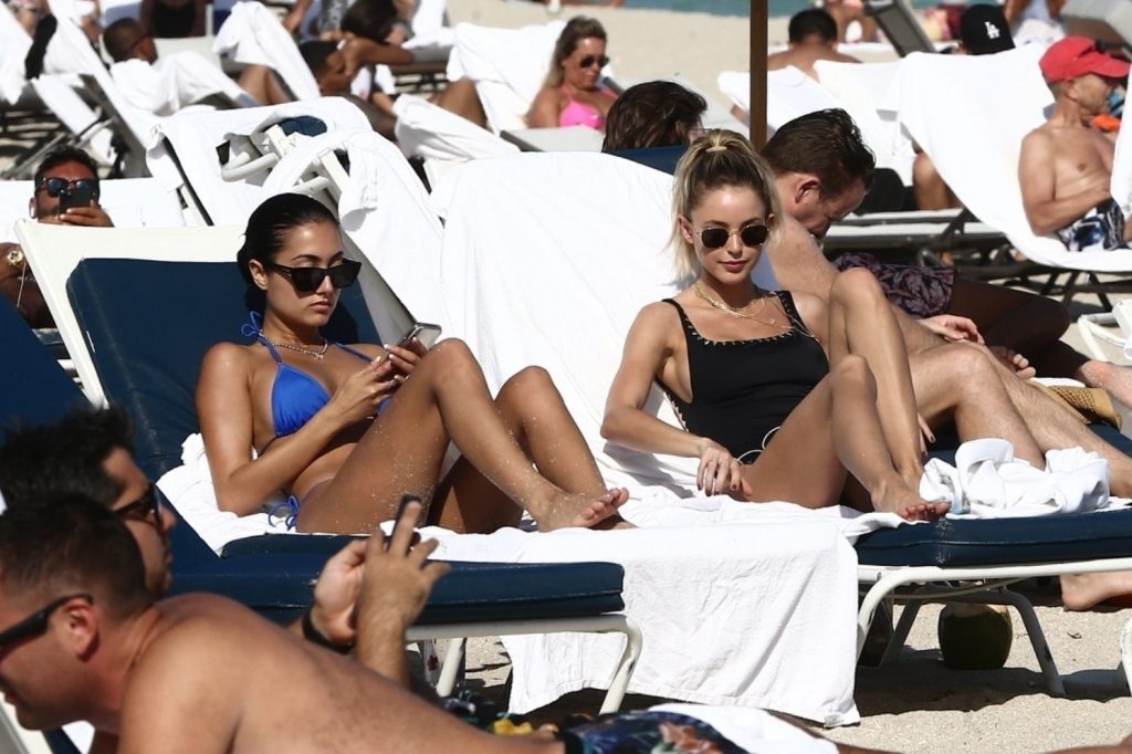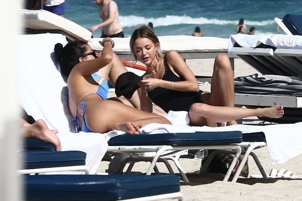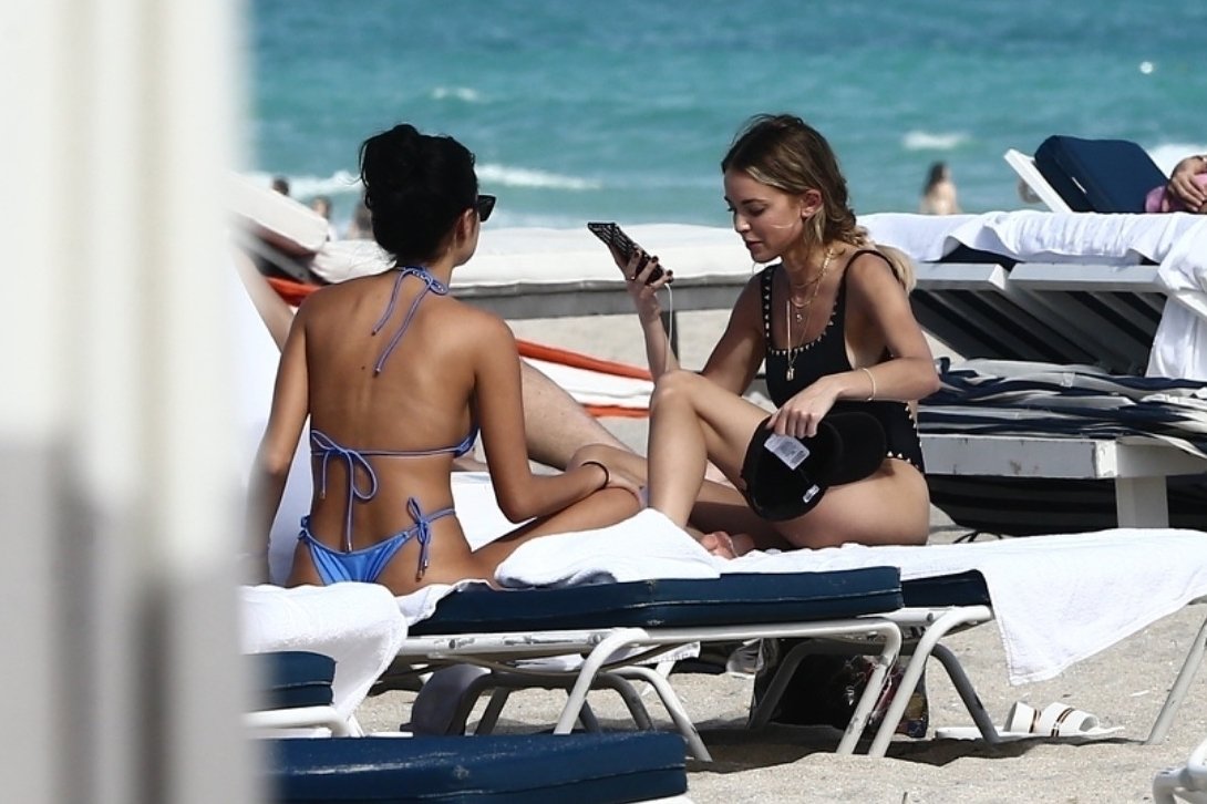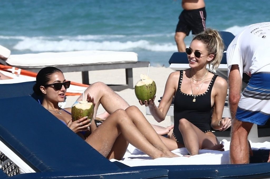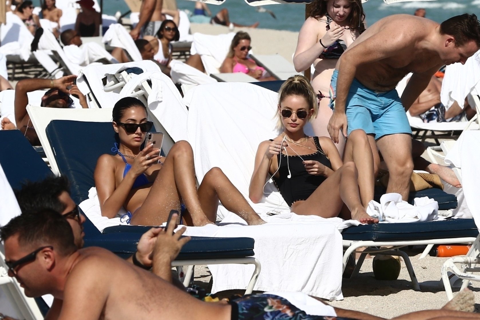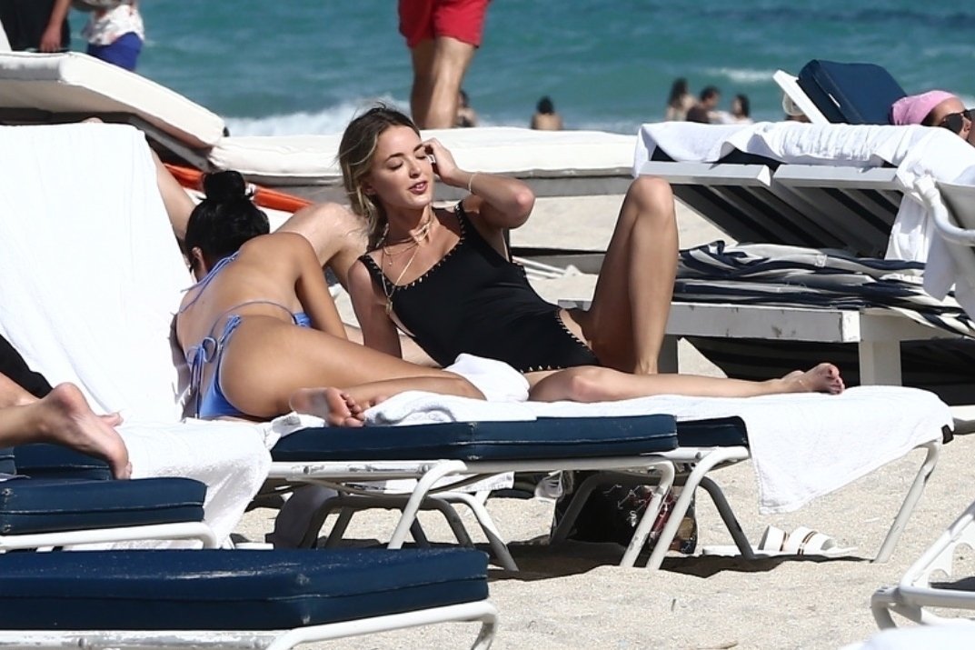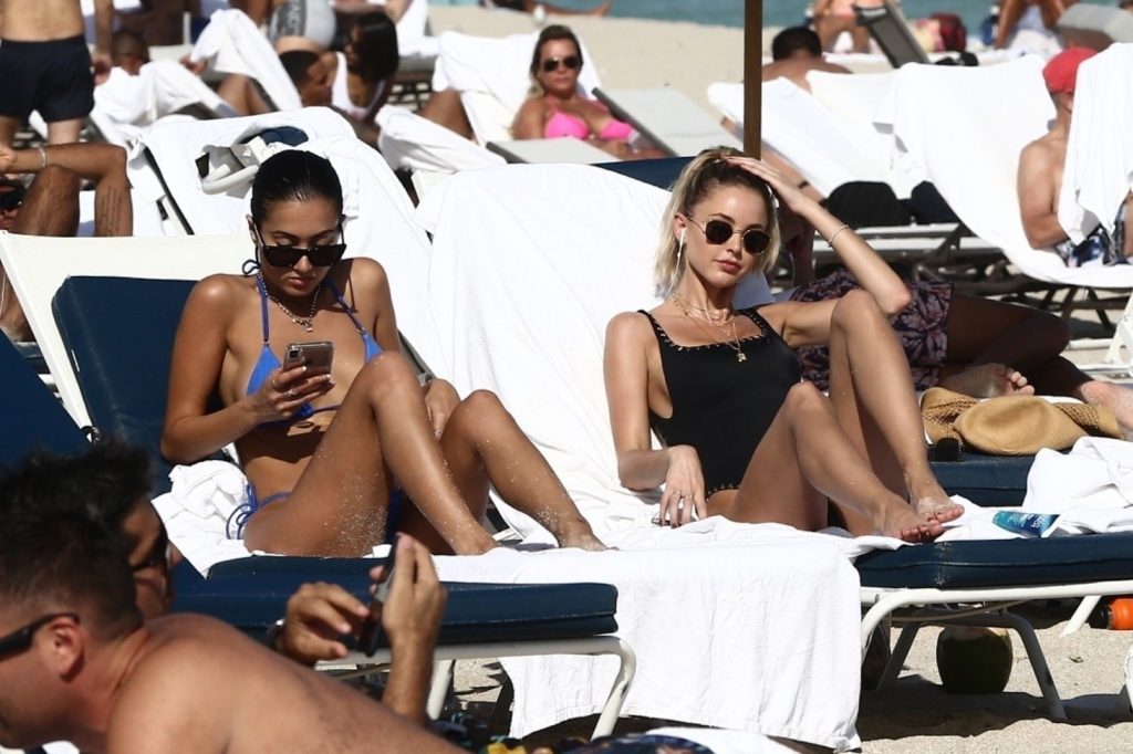 Personalidade das redes sociais Kaitlynn Carter aproveita um dia na praia com Racquel Natasha durante a Art Basel em Miami, 10/12/2019.