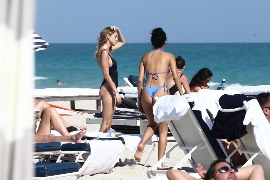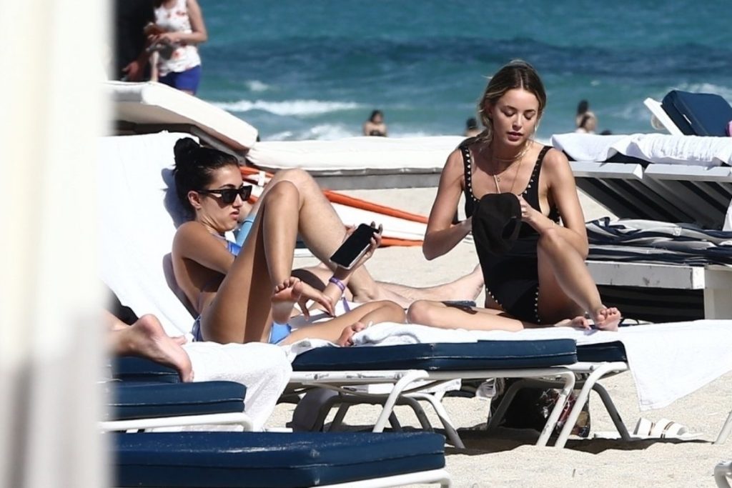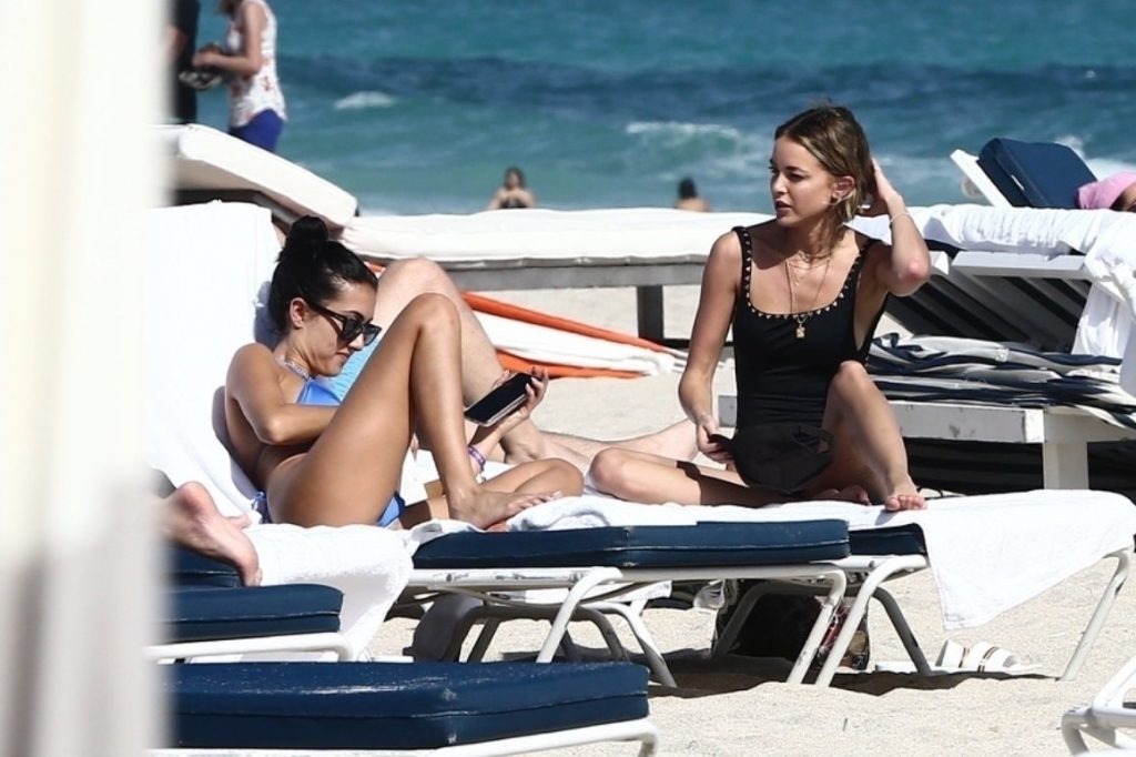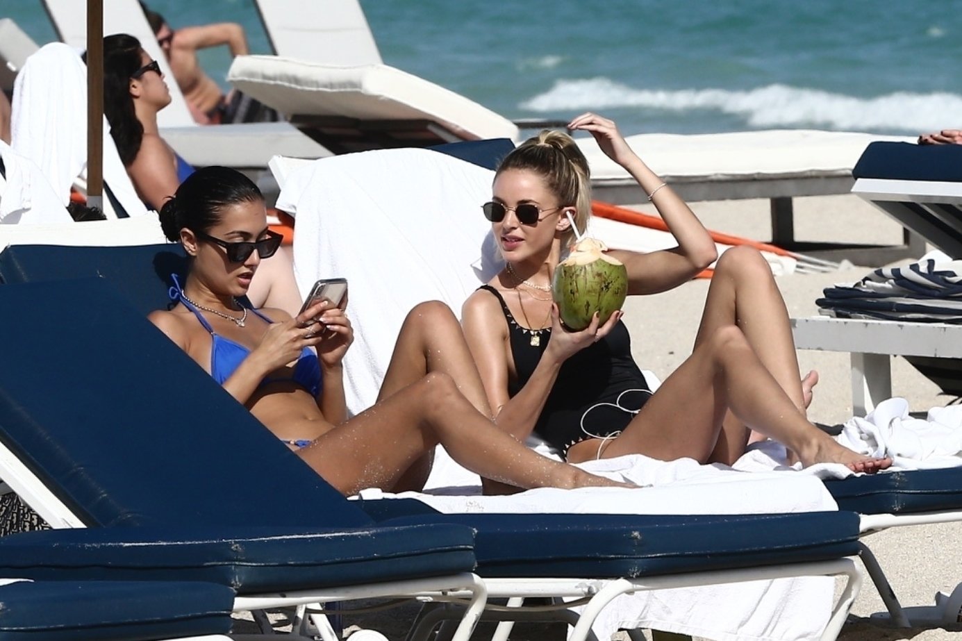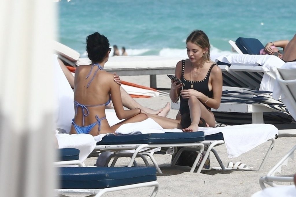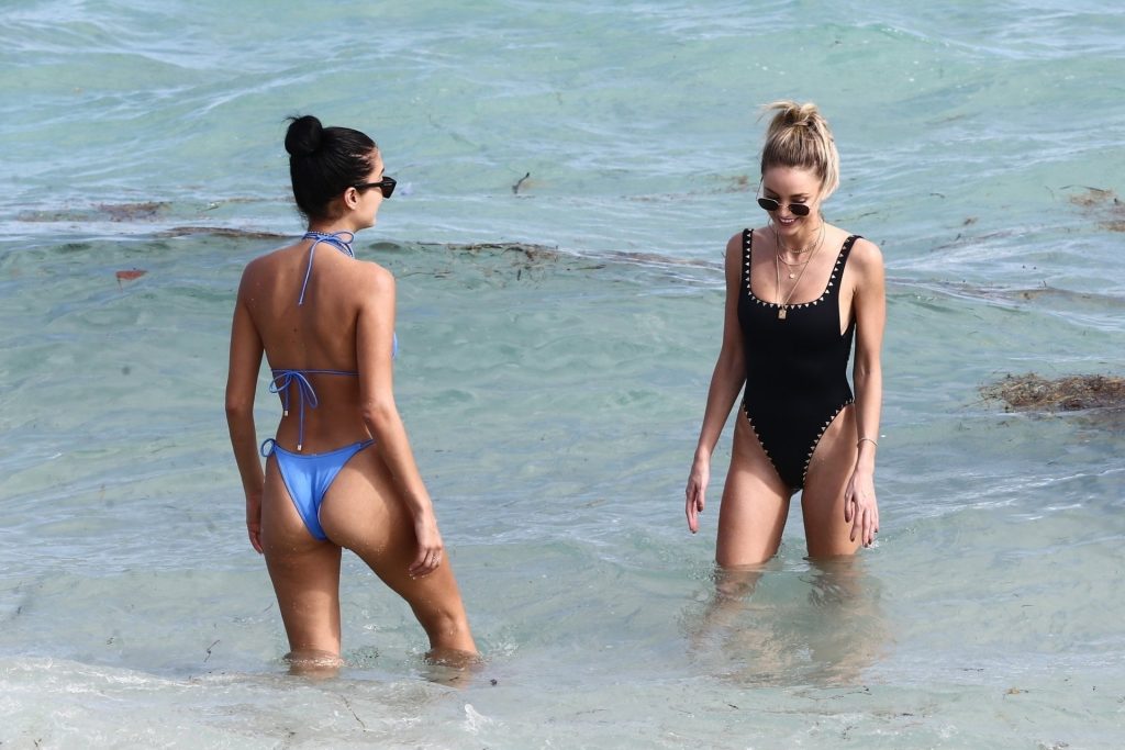 Personalidade das redes sociais Kaitlynn Carter aproveita um dia na praia com Racquel Natasha durante a Art Basel em Miami, 10/12/2019.