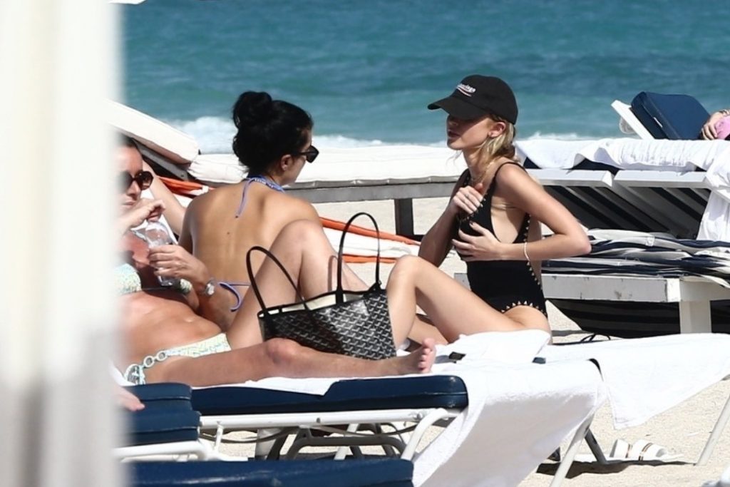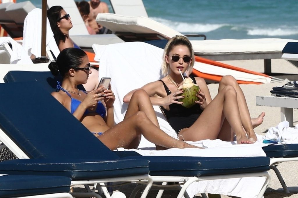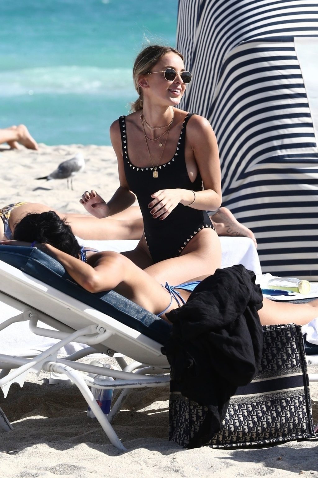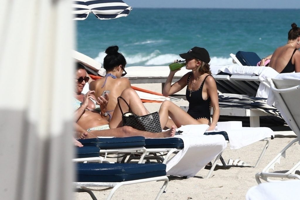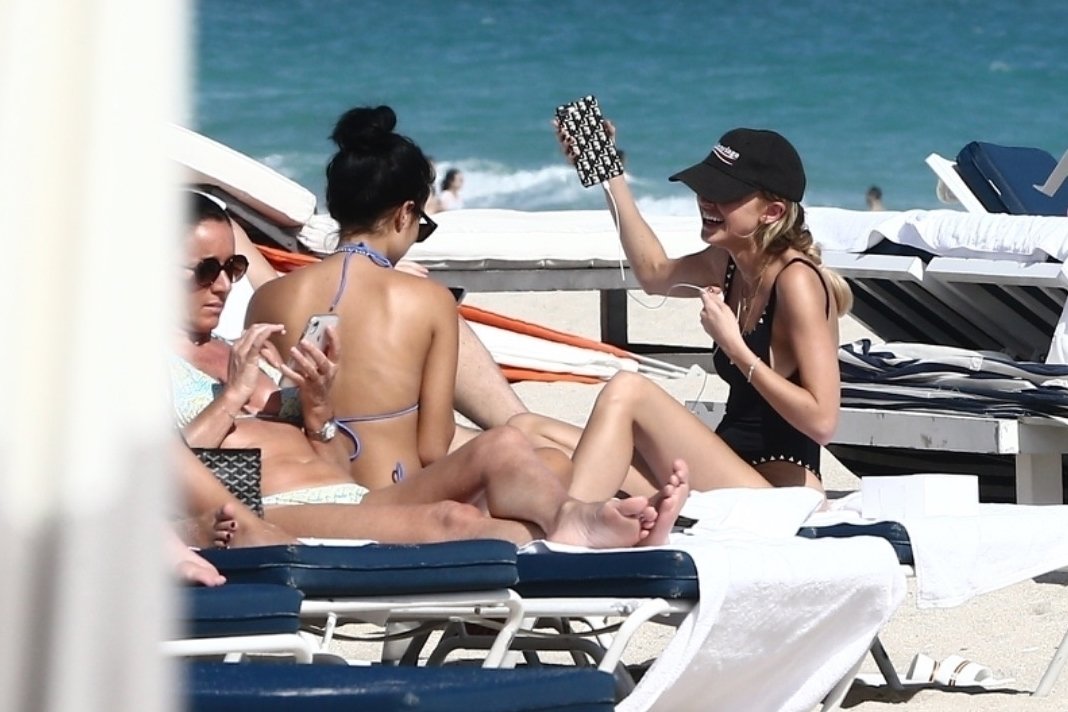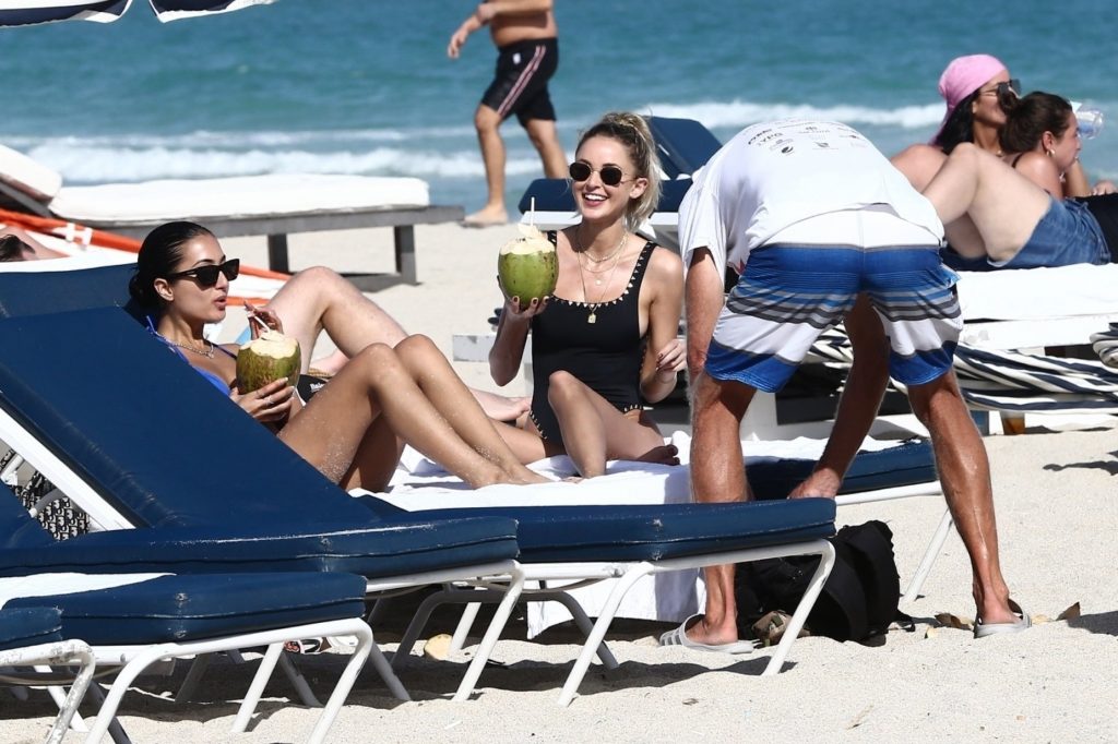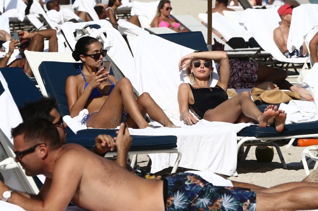 Personalidade das redes sociais Kaitlynn Carter aproveita um dia na praia com Racquel Natasha durante a Art Basel em Miami, 10/12/2019.