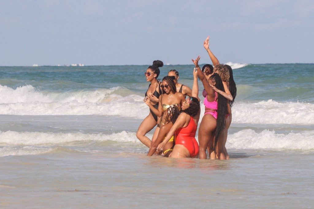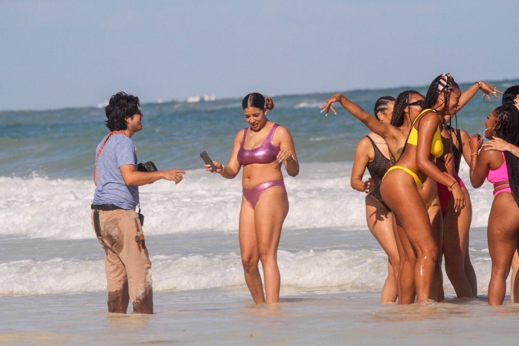 A esposa de Bradley Beal, Kamiah Adams, se diverte com suas amigas na praia em Tulum, México, 22/11/2019. Kamiah posa para fotos com seu grupo de amigas enquanto aproveitam o sol juntas.