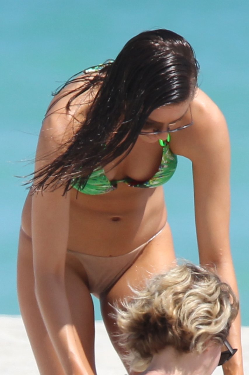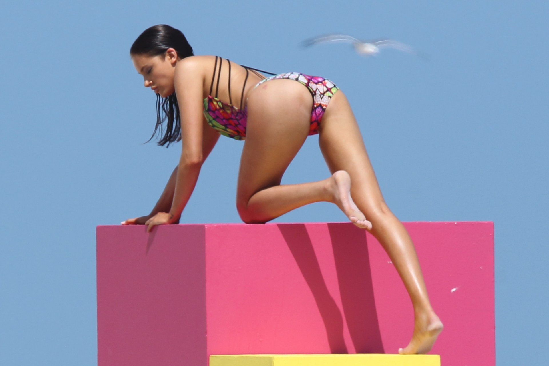 Karina Jelinek teve um problema de guarda-roupa durante uma sessão de fotos em Miami Beach, 13/03/2016. Olga Karina Jelinek Yamaguchi é uma modelo, atriz e personalidade de televisão argentina. Idade: 34 (22 de março de 1981).