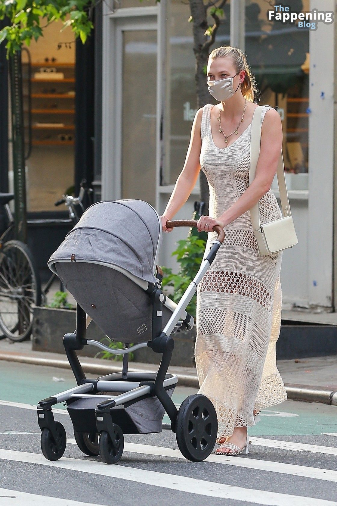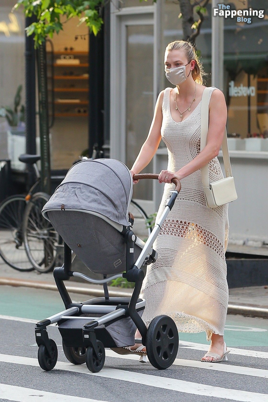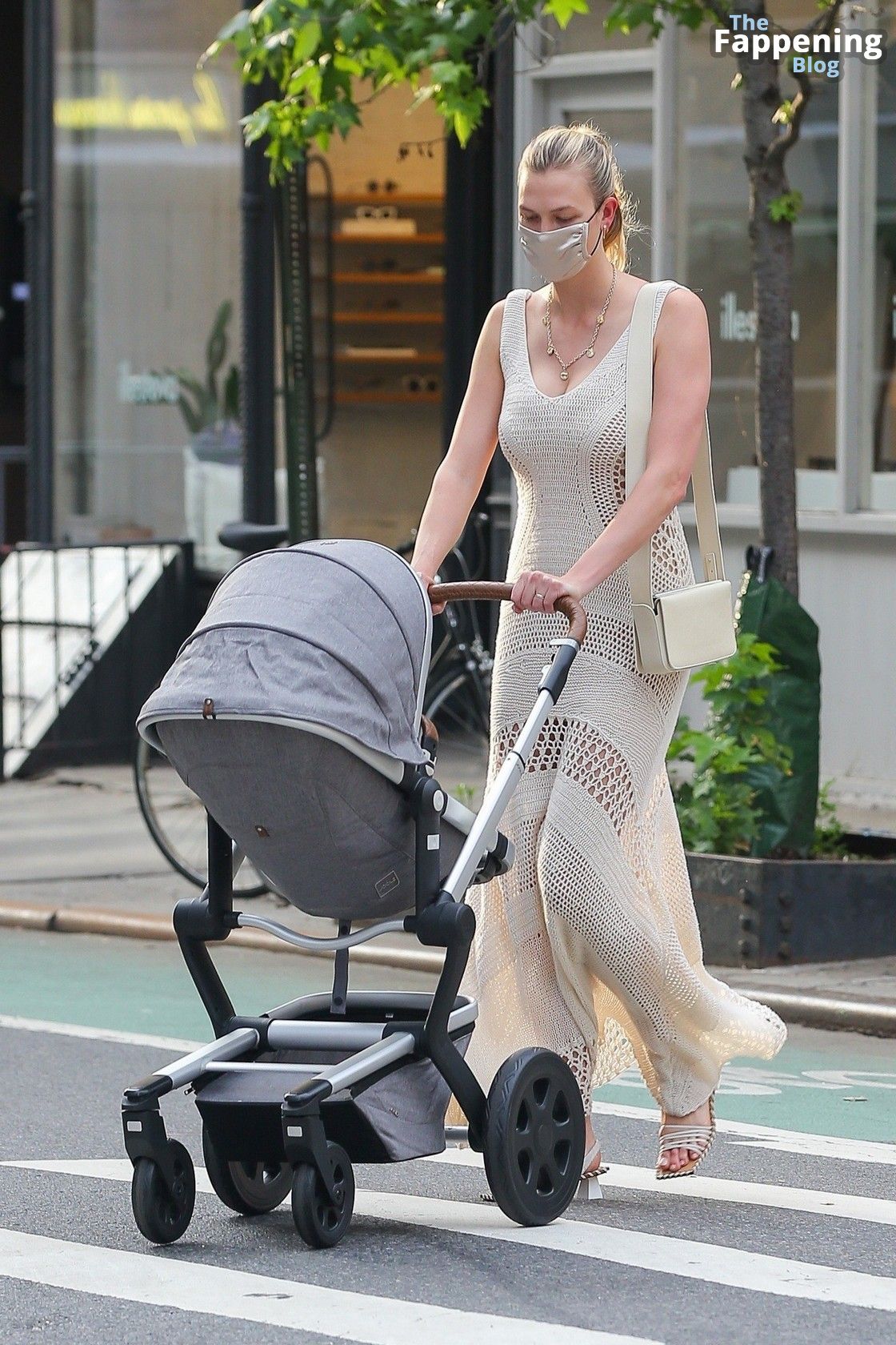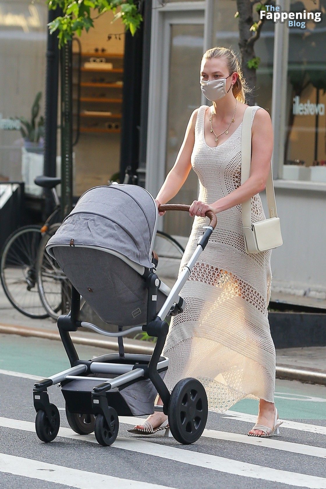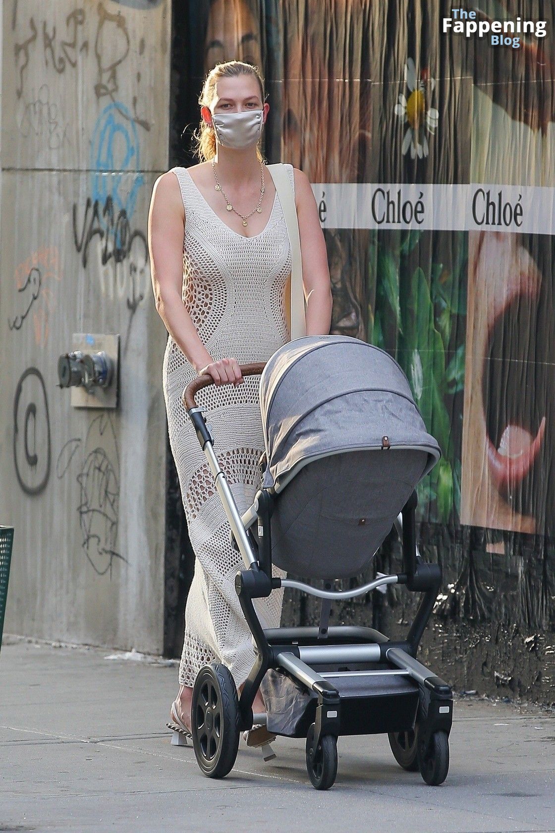 Karlie Kloss estava arrasando com um vestido de tricô leve, sem sutiã e talvez sem calcinha, mas não temos todos os detalhes. A famosa modelo relaxou nas fotos picantes logo após a gravidez.