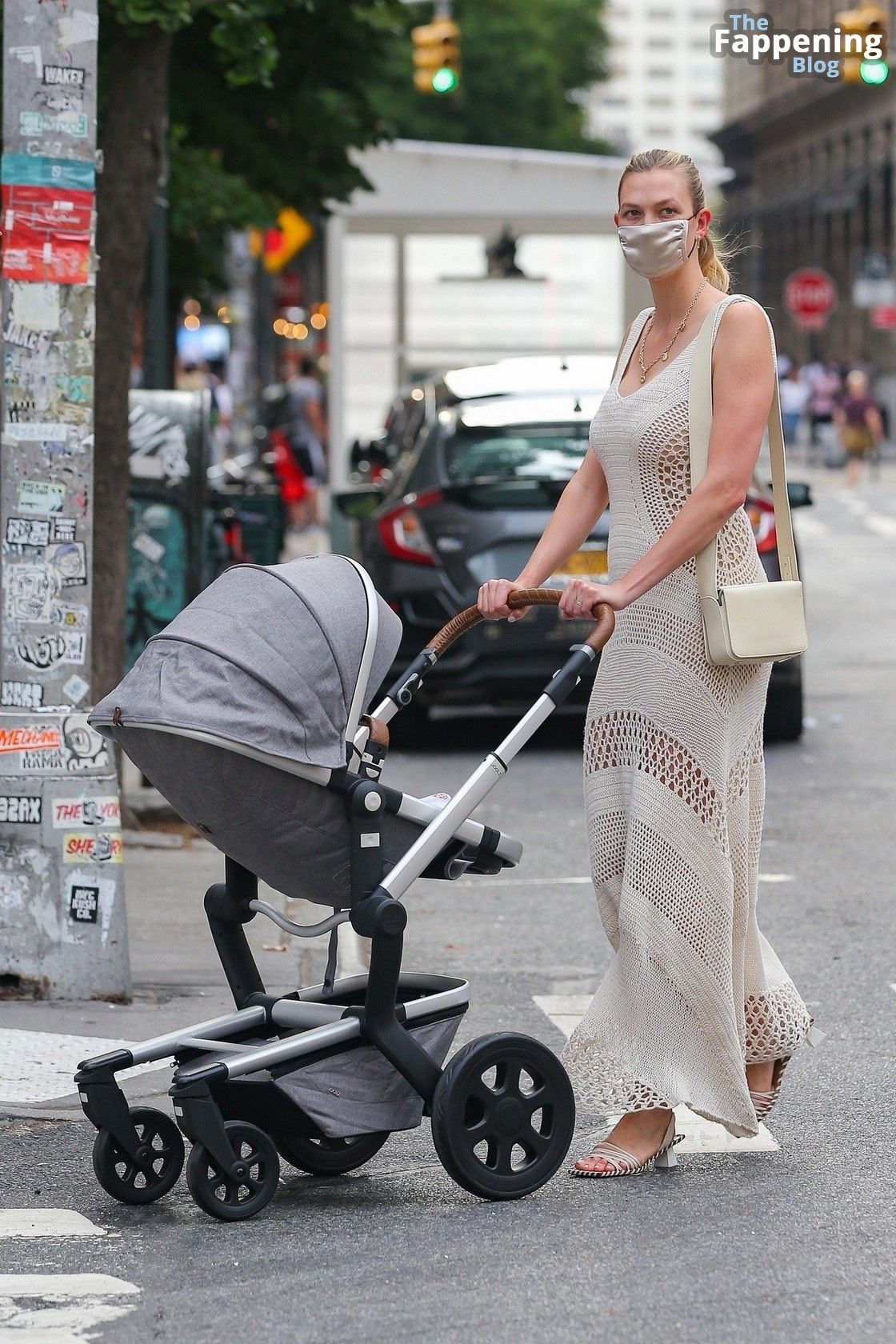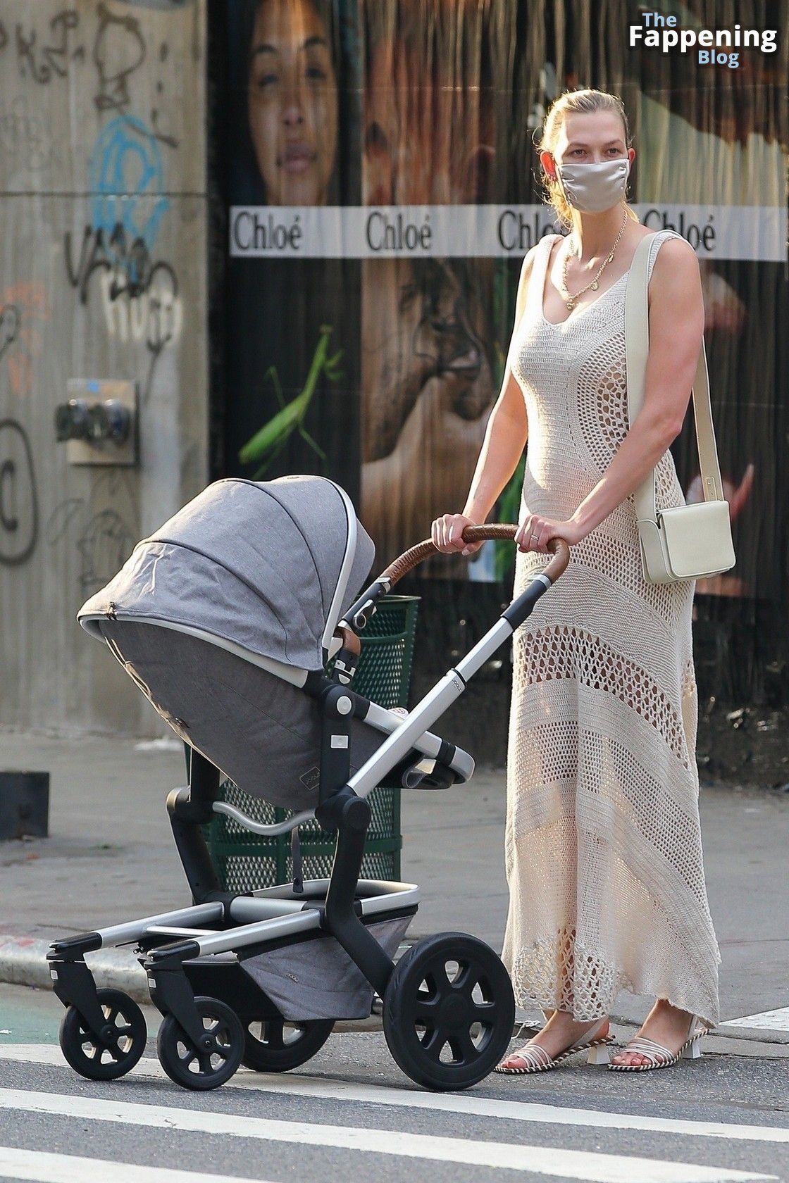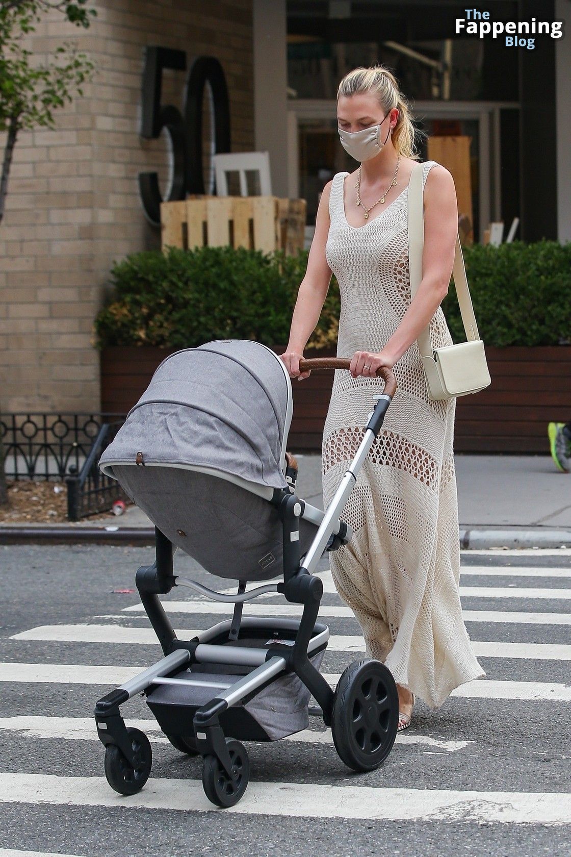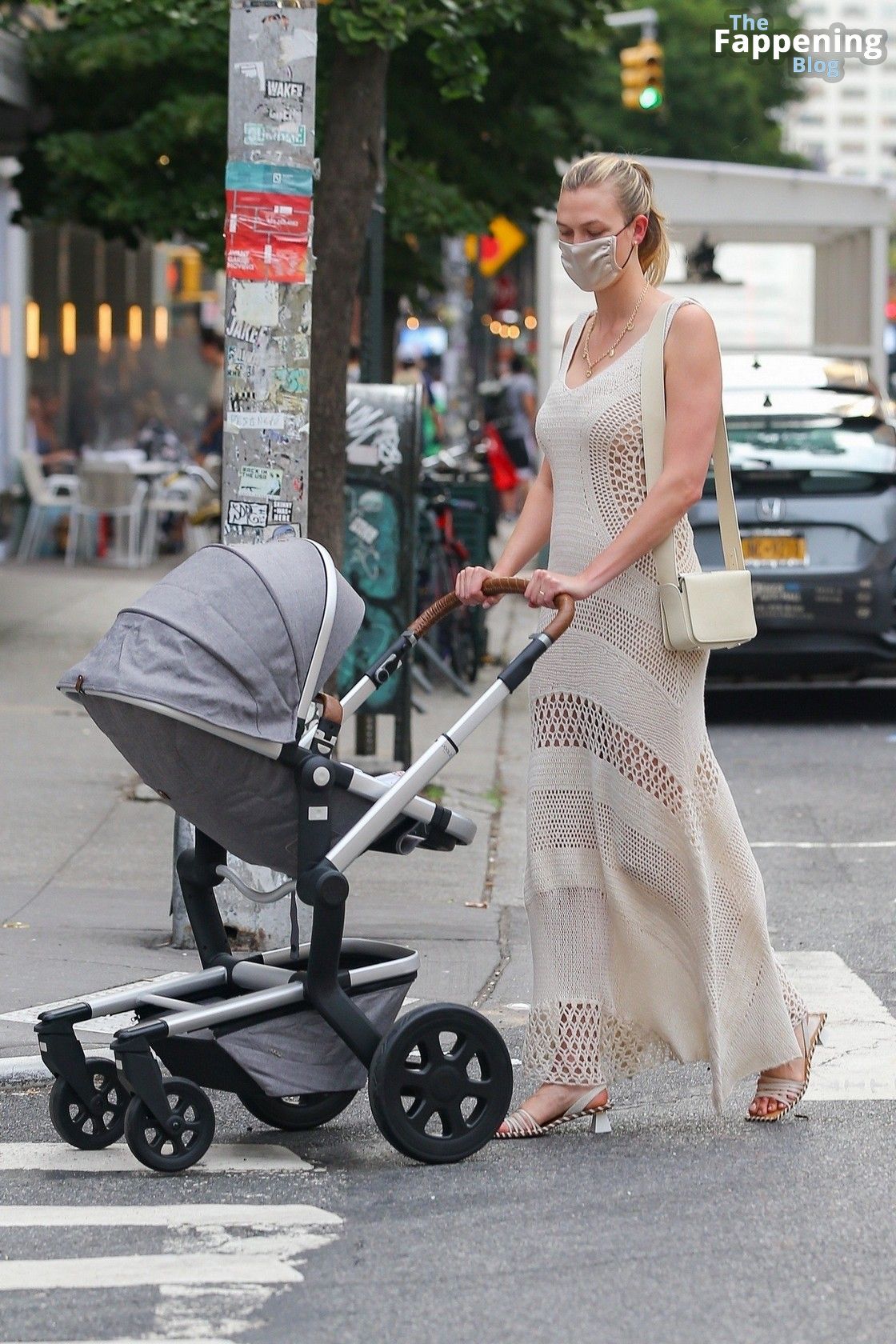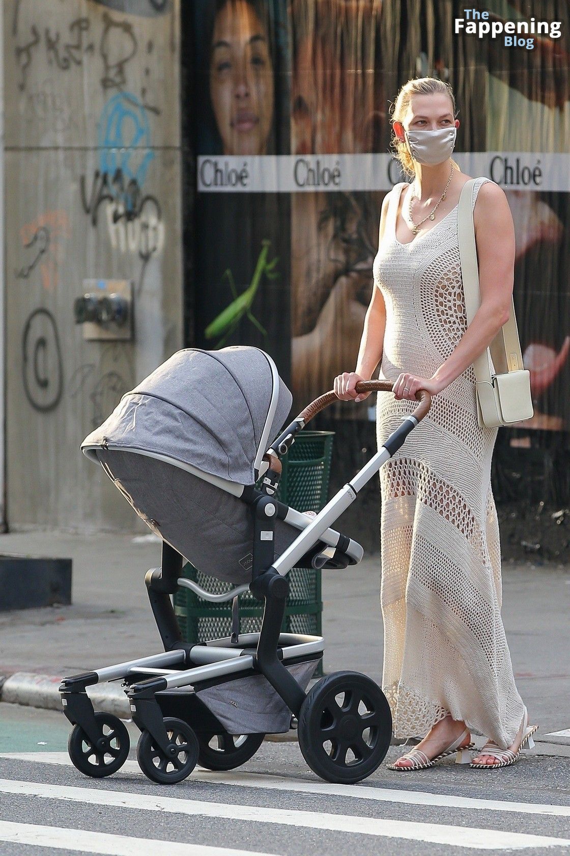 Karlie Kloss estava arrasando com um vestido de tricô leve, sem sutiã e talvez sem calcinha, mas não temos todos os detalhes. A famosa modelo relaxou nas fotos picantes logo após a gravidez.