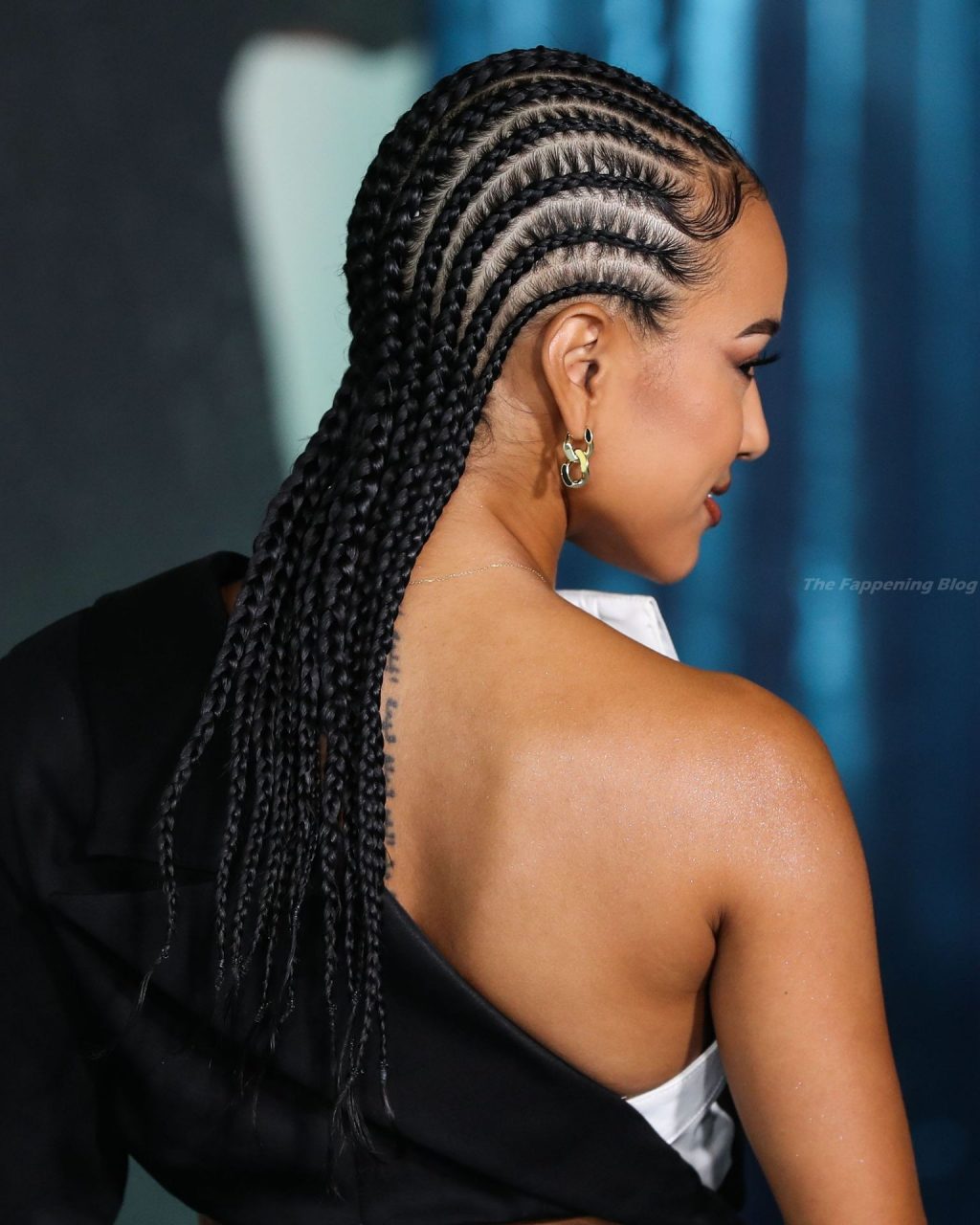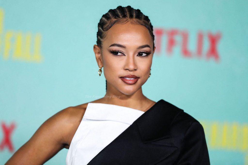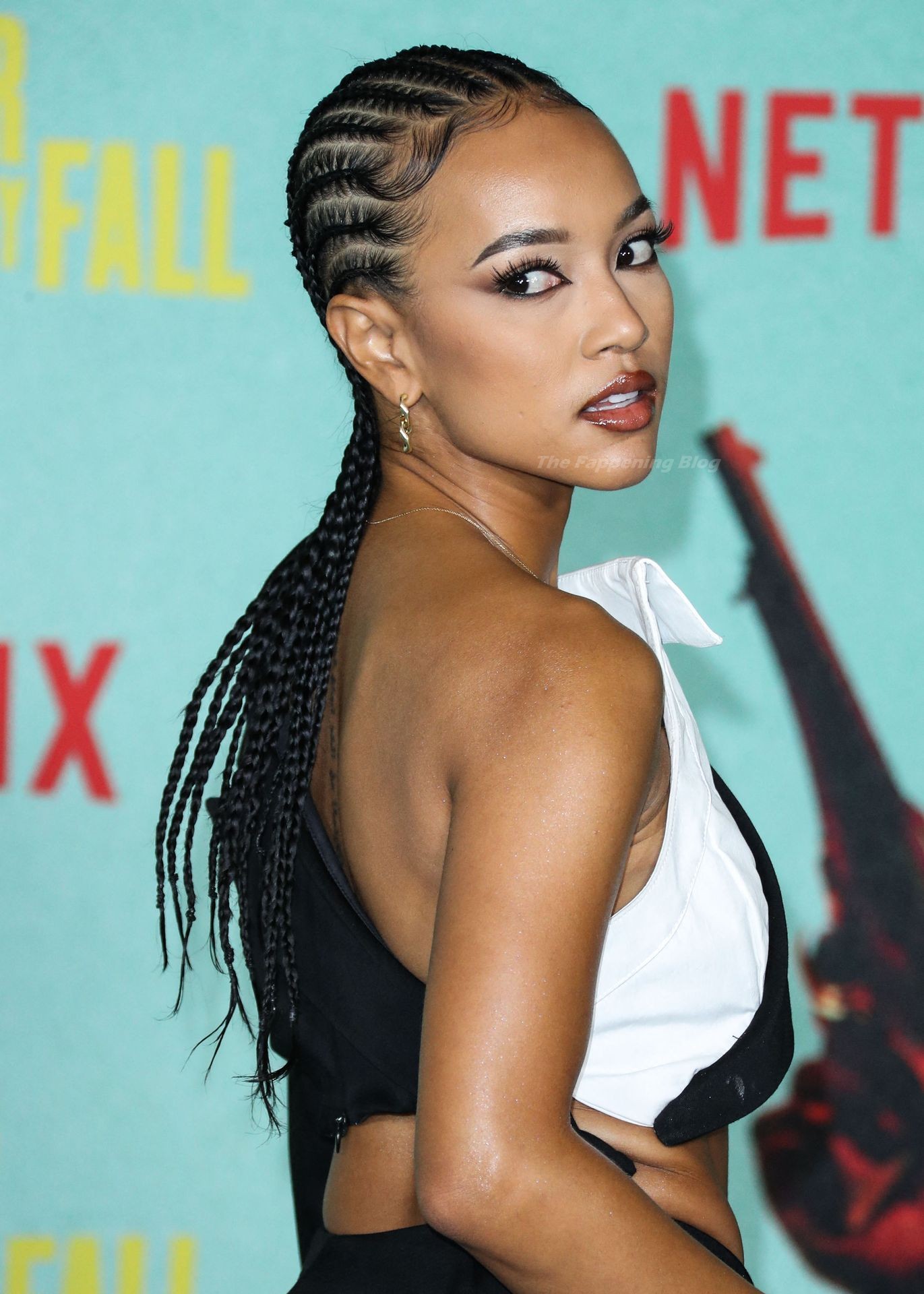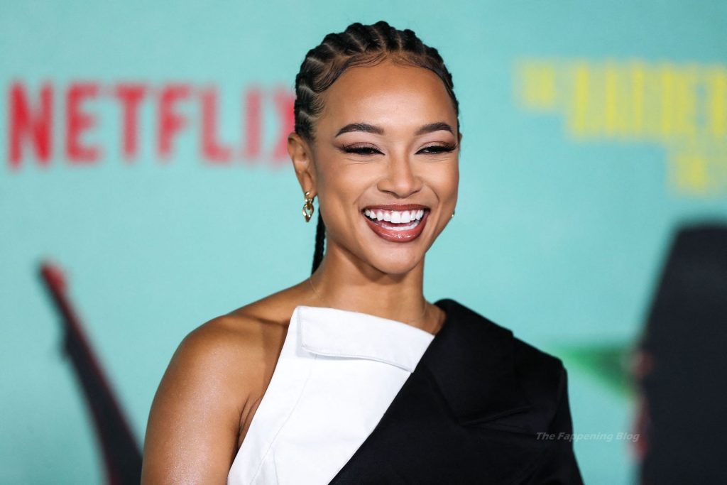 Atriz Karrueche Tran está deslumbrante enquanto posa no tapete vermelho da estreia em Los Angeles de “The Harder They Fall” no Shrine Auditorium and Expo Hall, 13/10/2021.