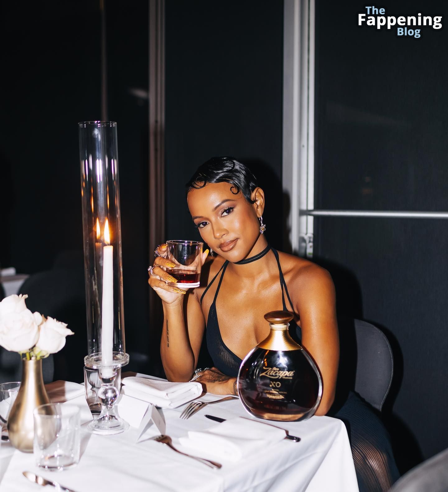 Karrueche Tran comemorou seu 35º aniversário em Beverly Hills com um vestido transparente que não deixava nada para a imaginação e mostrava um incrível whaletail por trás.