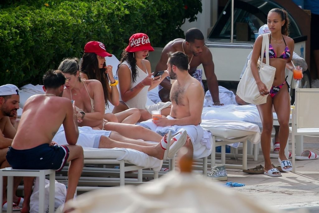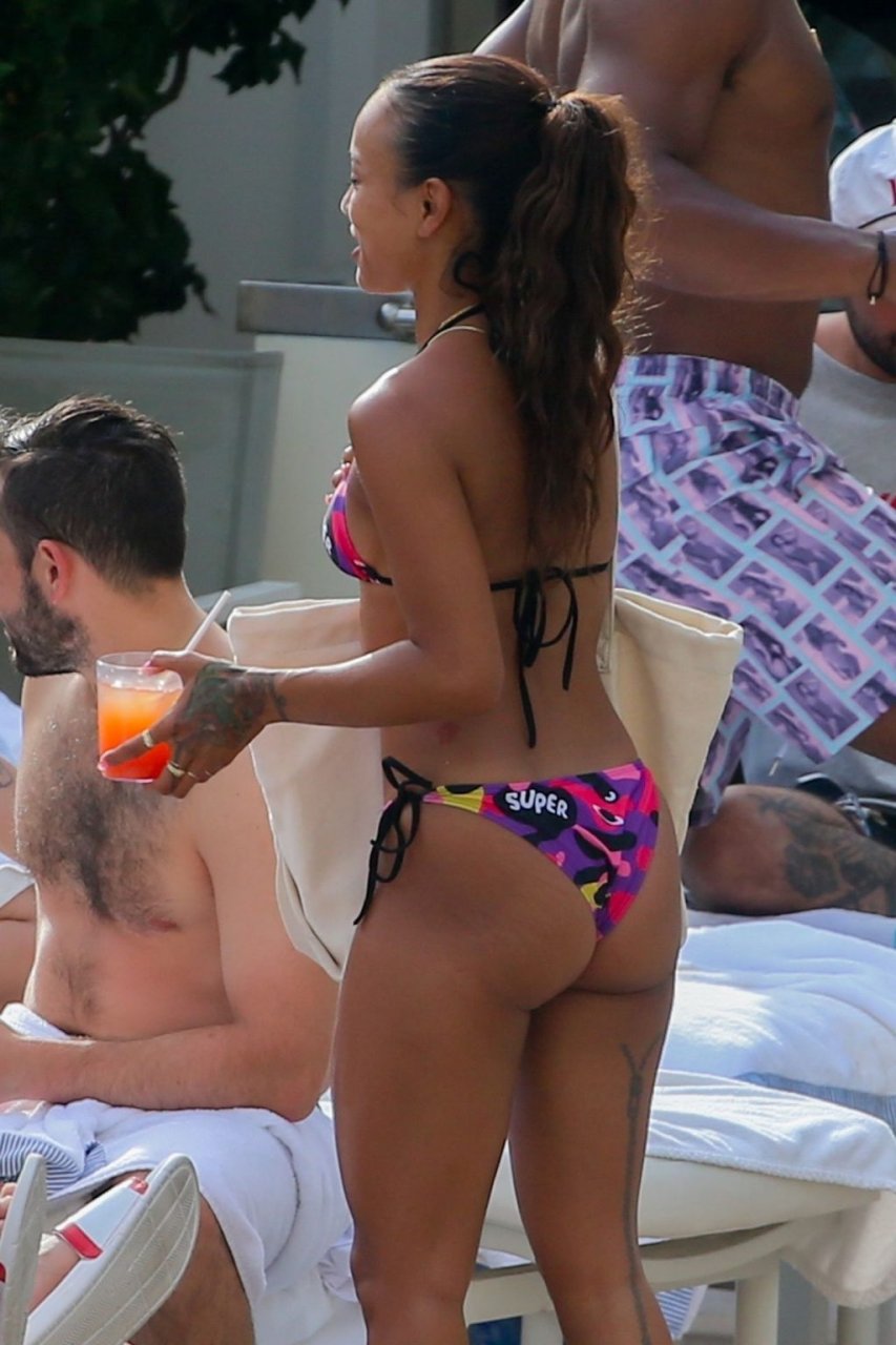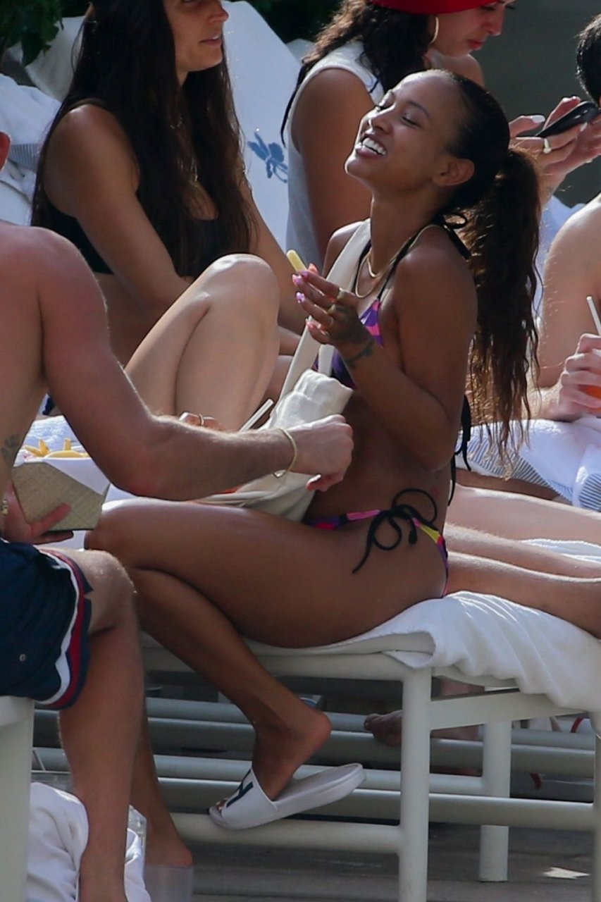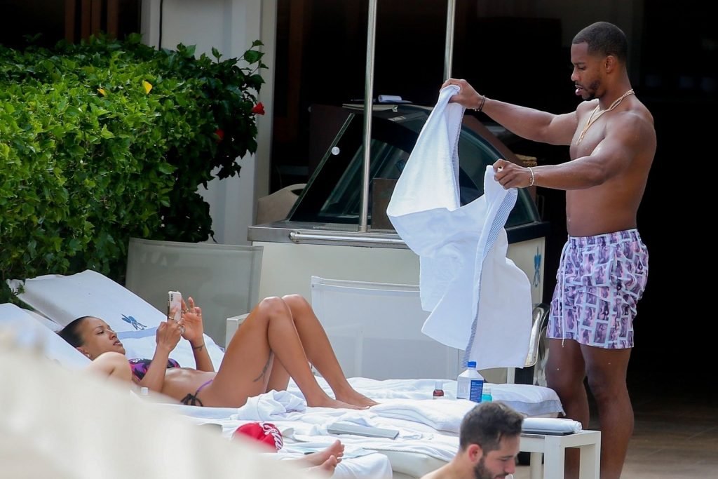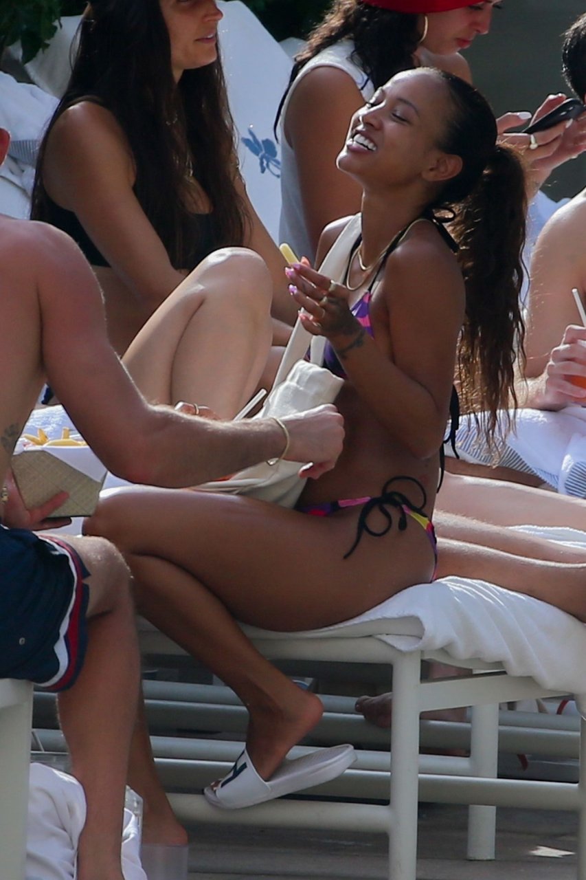 Karrueche Tran exibe suas curvas de biquíni enquanto está de férias com seu namorado sem camisa, Victor Cruz, em Honolulu, 05/08/2019. Karrueche e Victor estiveram na ilha de Oahu para promover a colaboração KITH e Coca-cola. O casal foi visto na loja pop-up e em vários outros eventos da marca. O casal foi visto à beira da piscina com outros modelos e convidados para o evento.