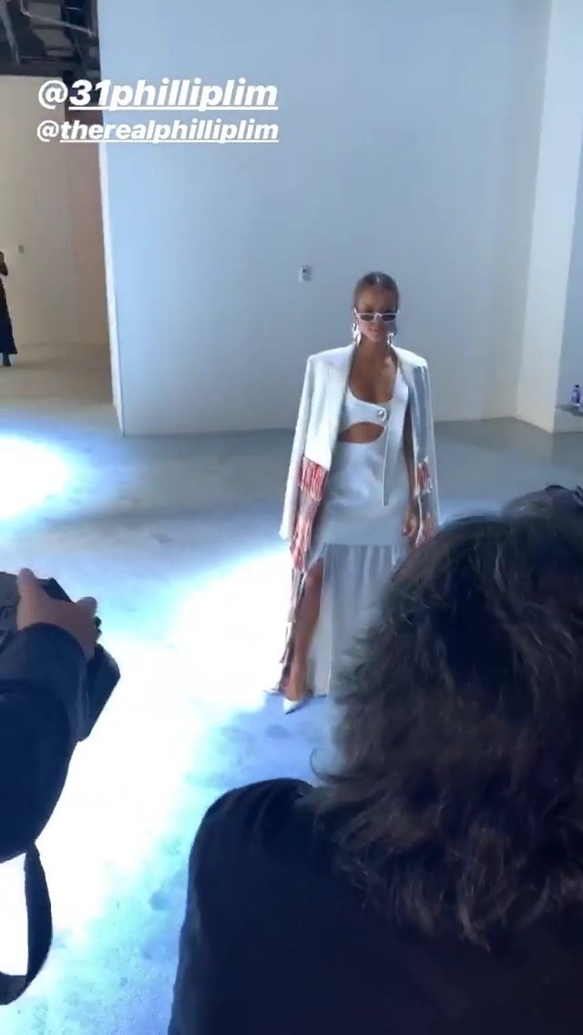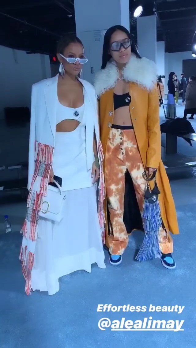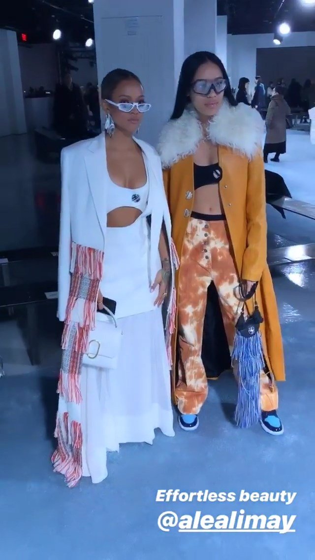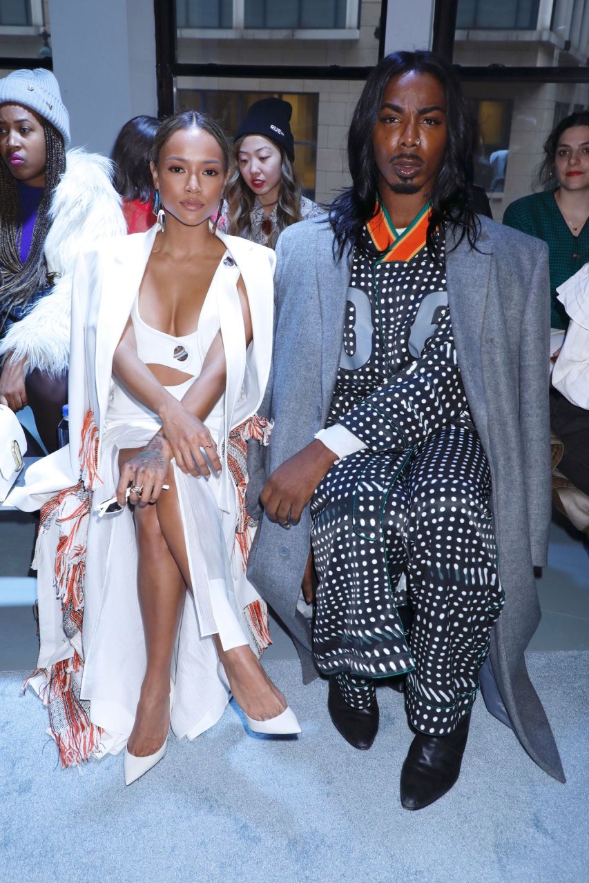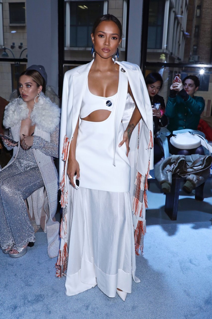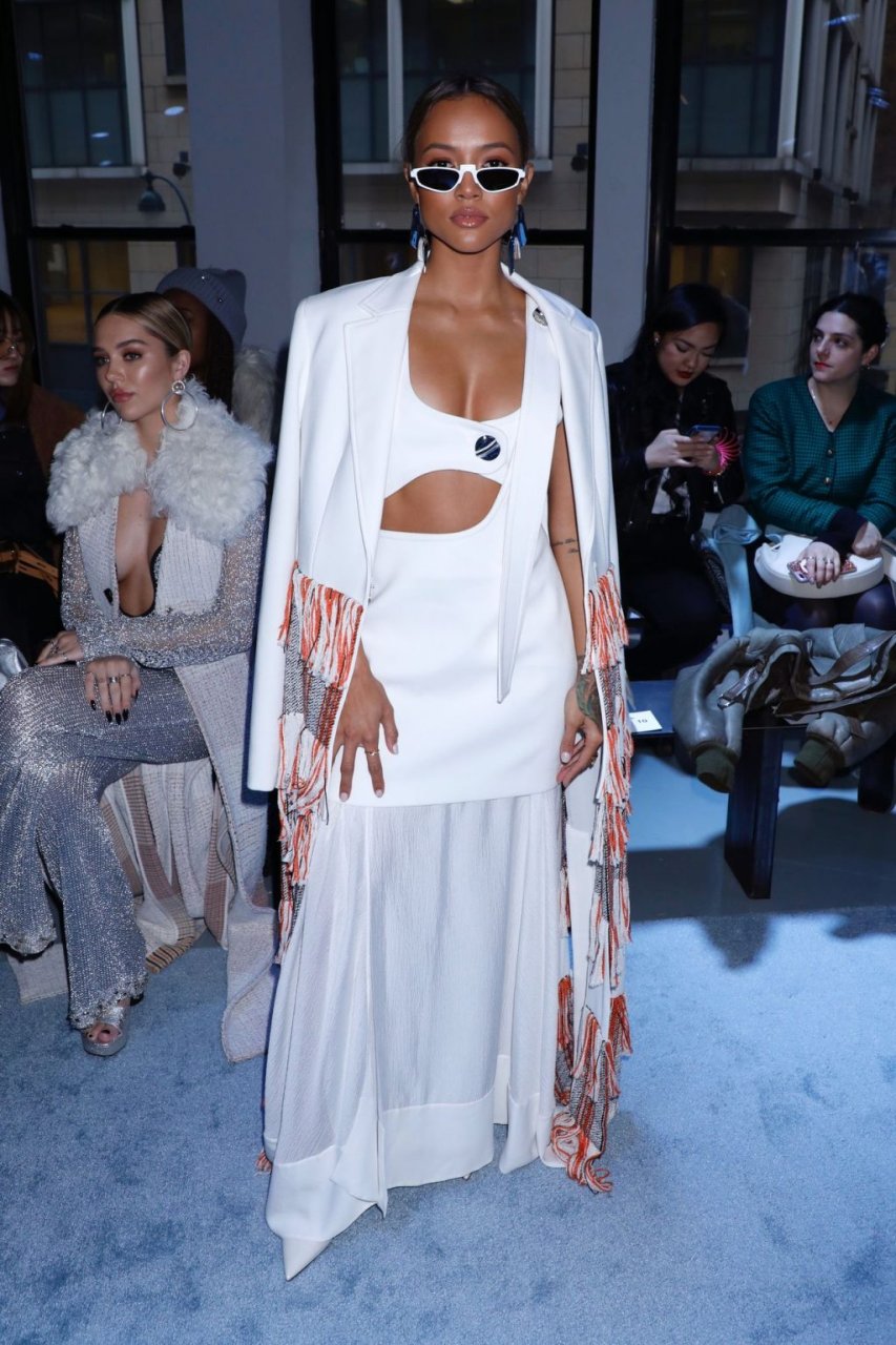 Karrueche Tran exibiu seu decote usando um look branco no desfile 3.1 Phillip Lim Outono/Inverno 2019 durante a Semana de Moda de Nova York, 11/02/2019.