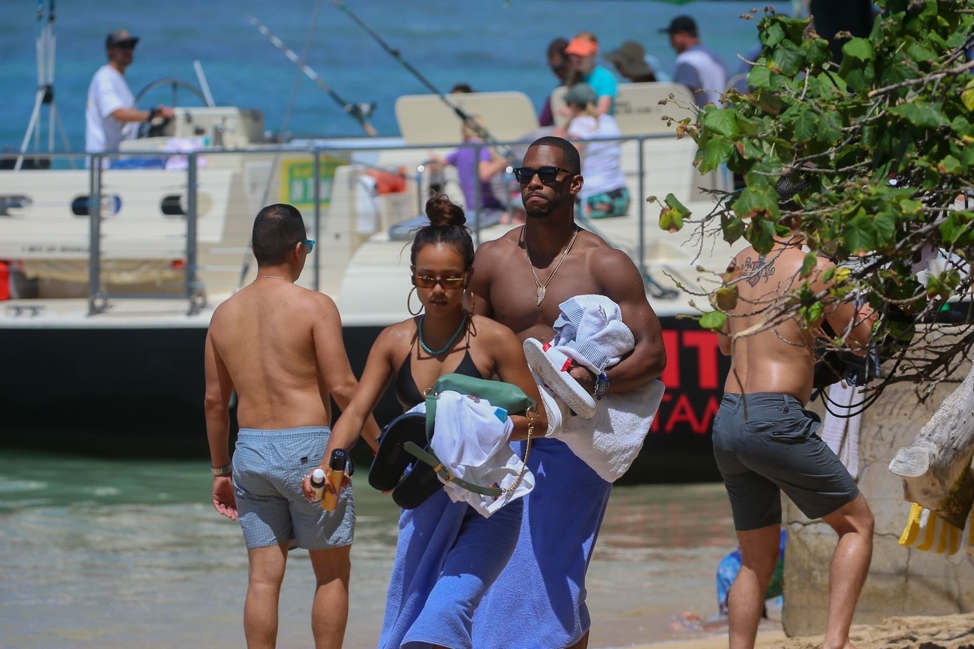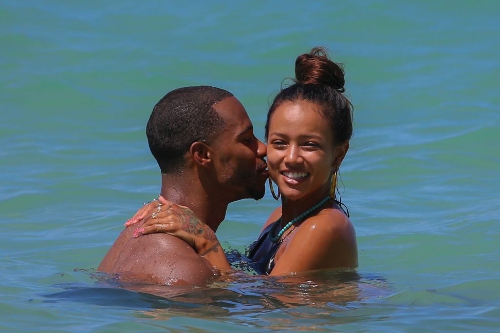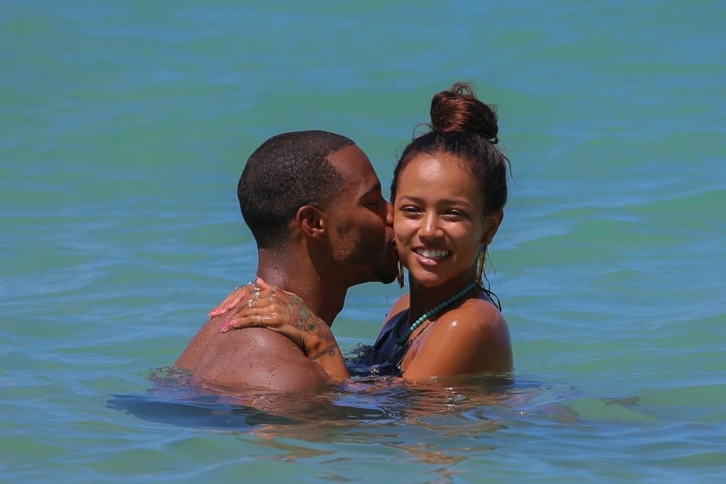 Karrueche Tran e o namorado sem camisa Victor Cruz esquentam a praia no Havaí, 01/08/2019. Karrueche e Victor pareciam ter olhos apenas um para o outro. No mês passado, Karrueche teve um desentendimento com seu ex Chris Brown, que fez comentários depreciativos sobre o estilo de Victor em seu Instagram.