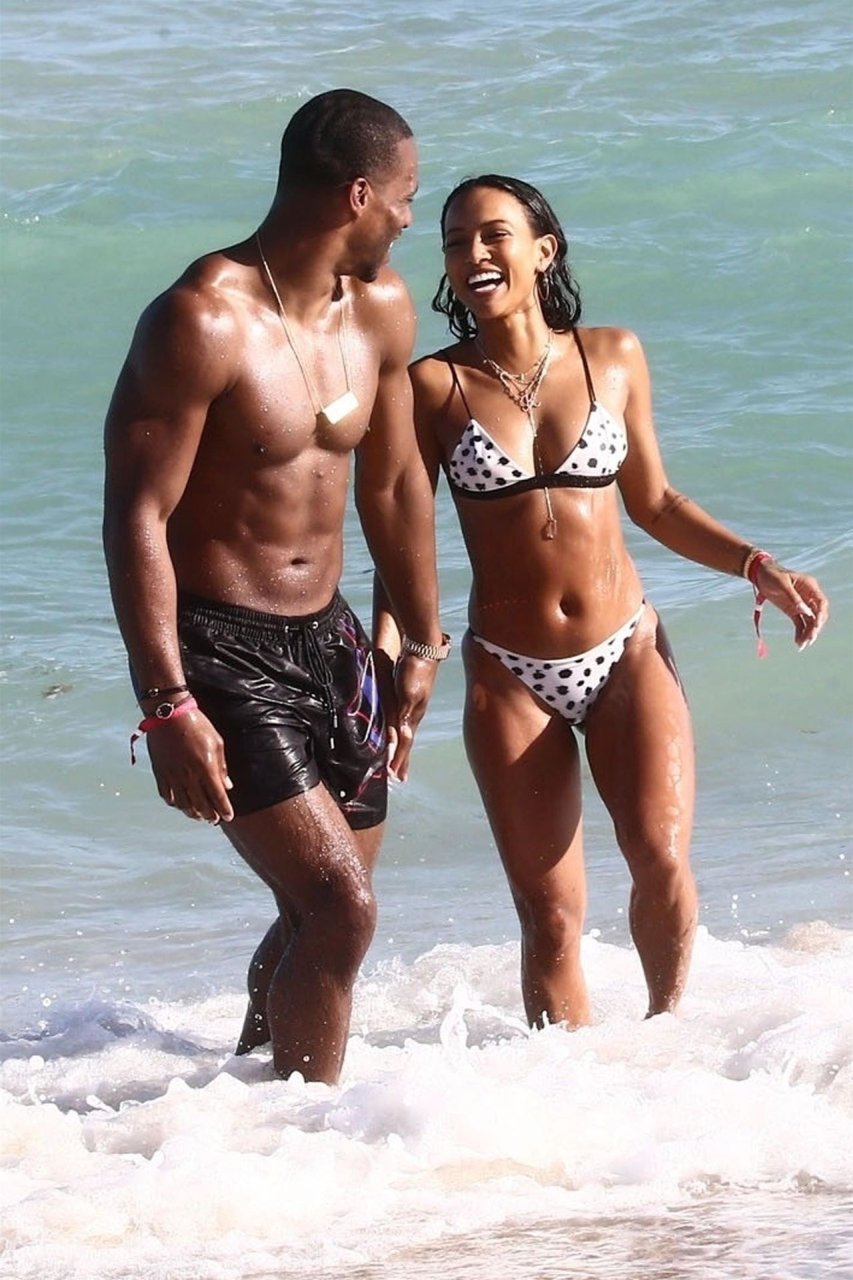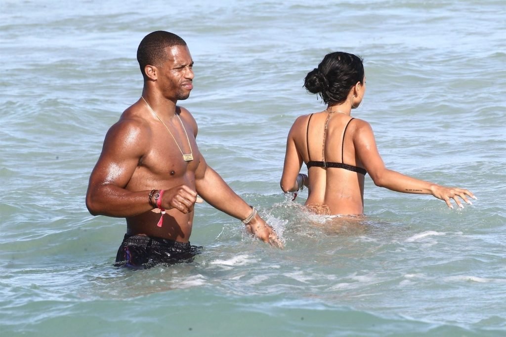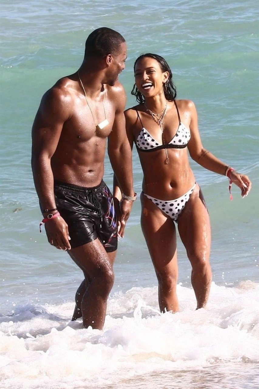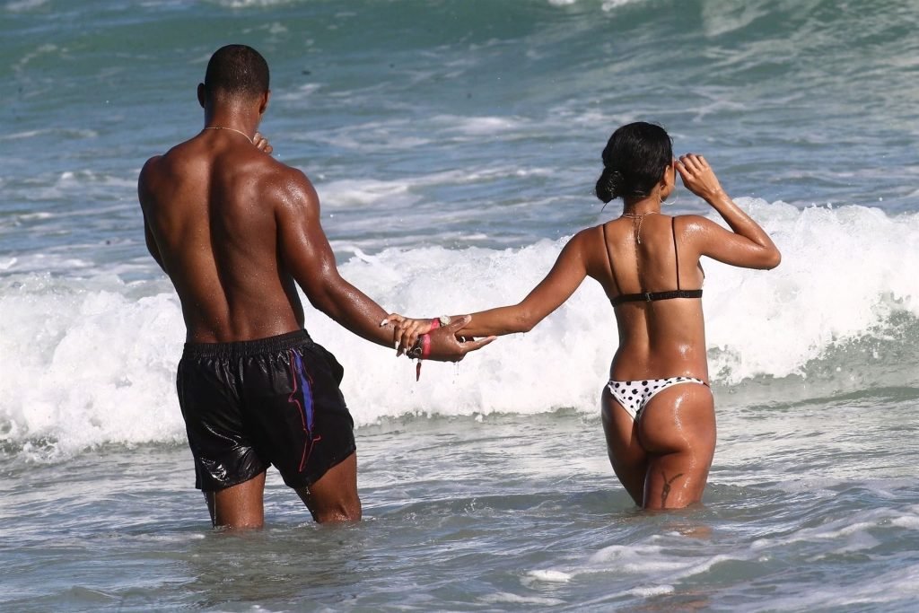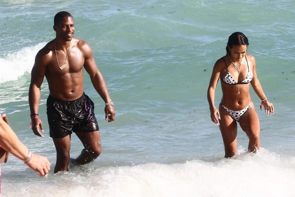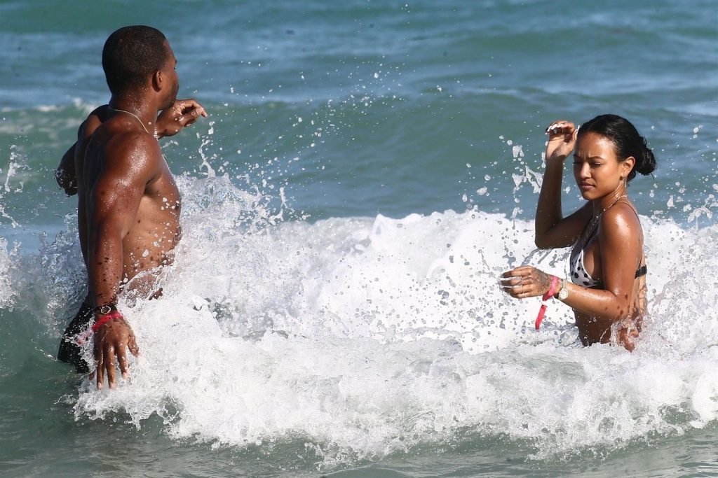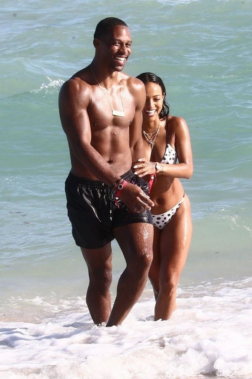 Atriz/modelo Karrueche Tran (30) e Victor Cruz aproveitam um mergulho nas águas quentes de Miami, 01/02/2019.