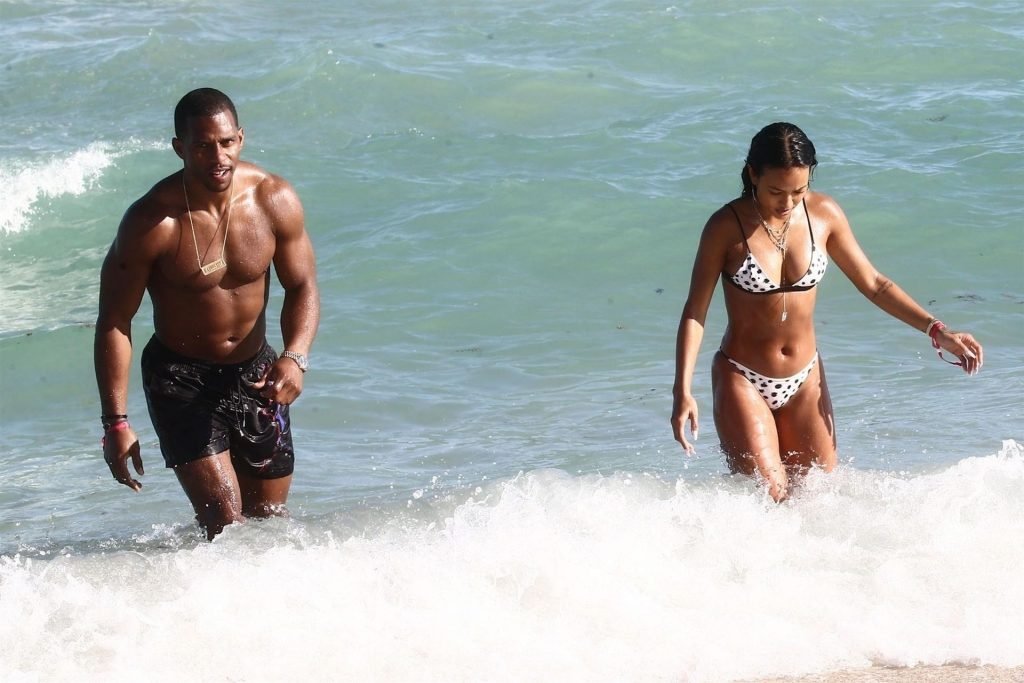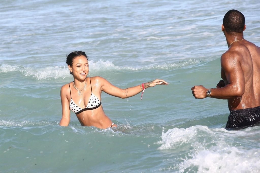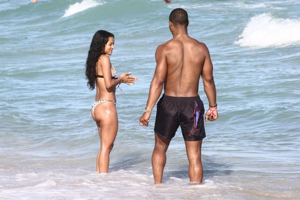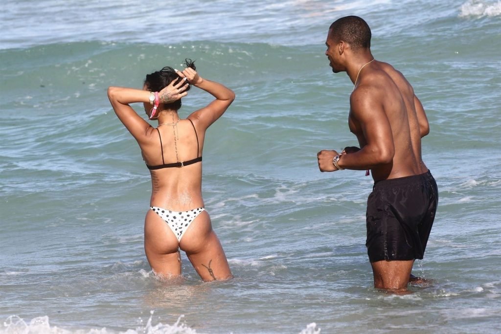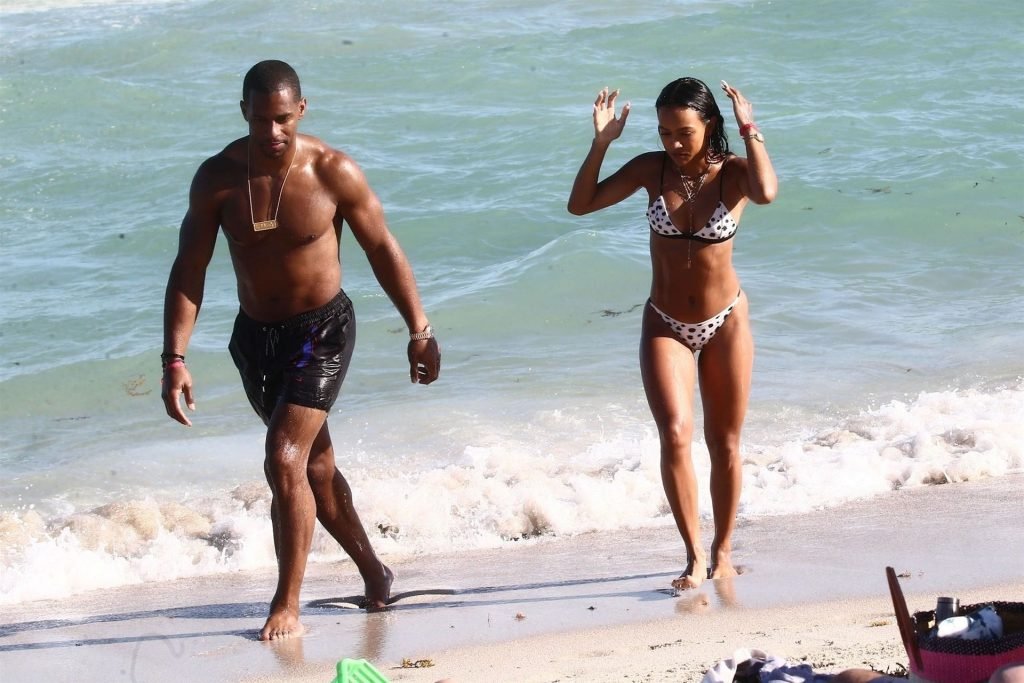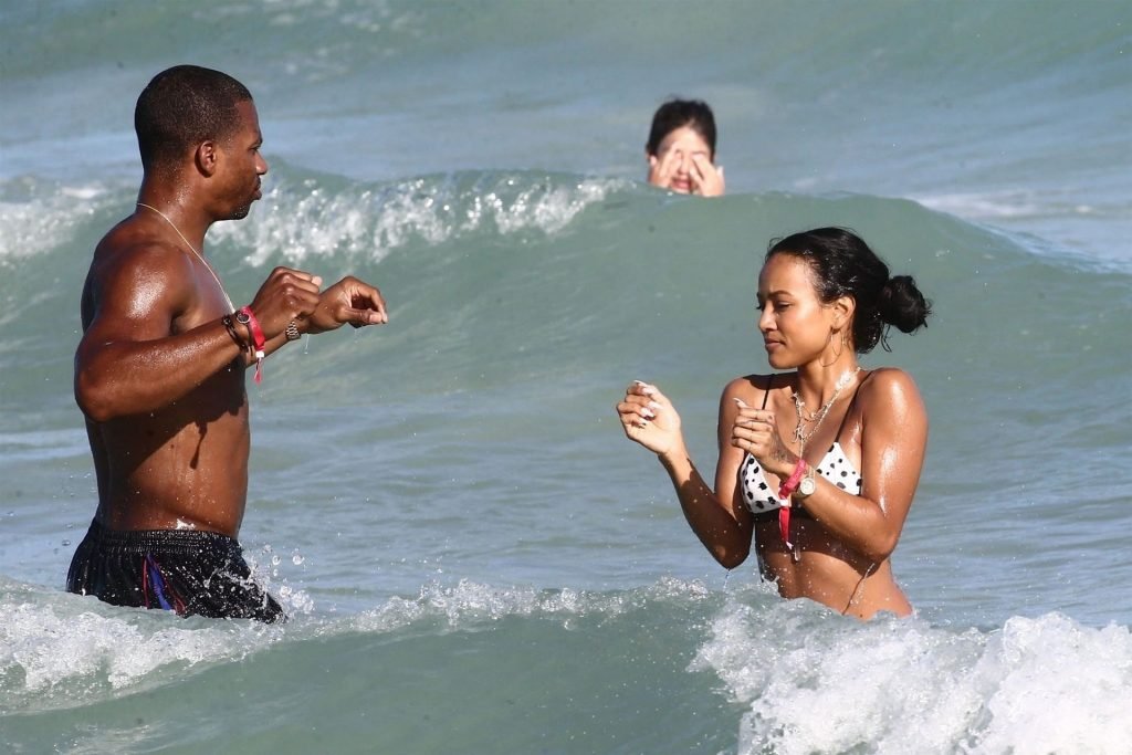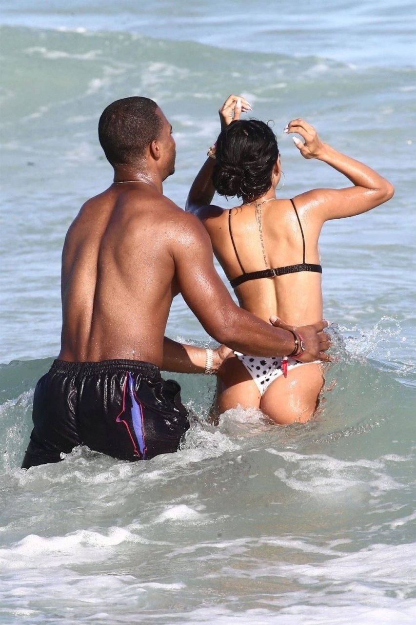 Atriz/modelo Karrueche Tran (30) e Victor Cruz aproveitam um mergulho nas águas quentes de Miami, 01/02/2019.