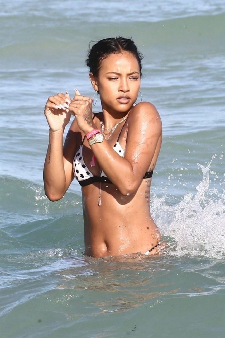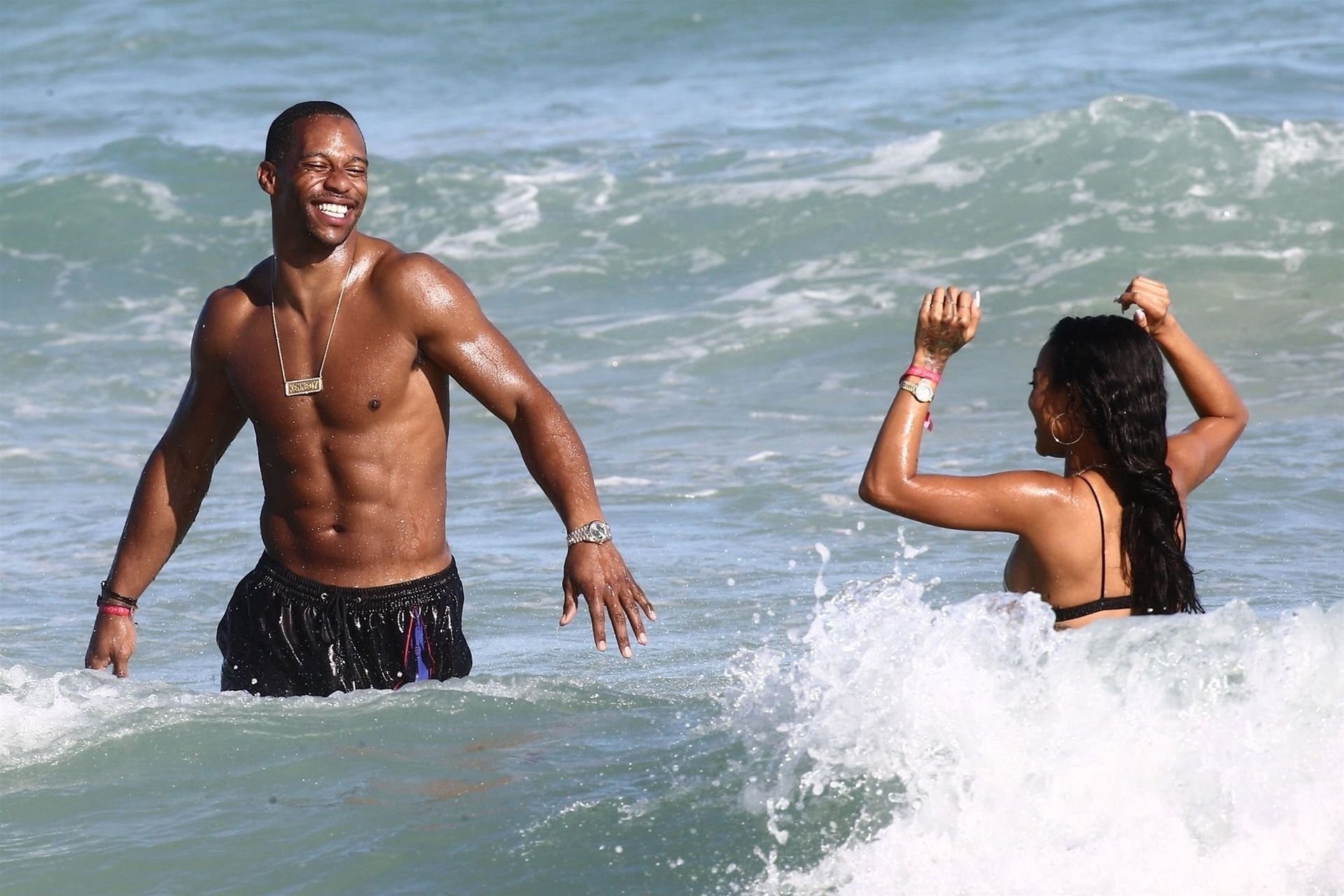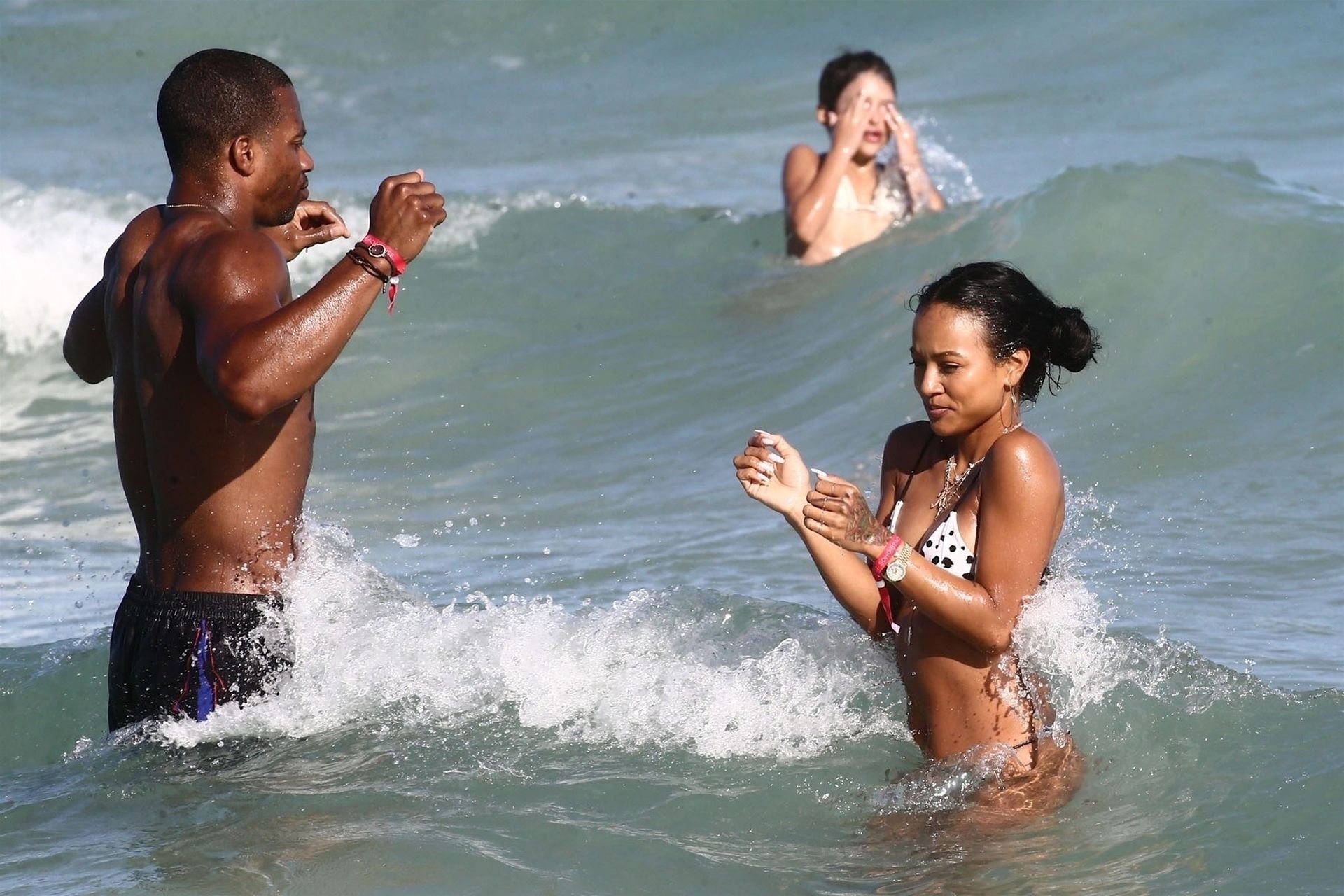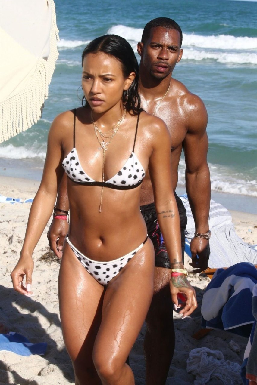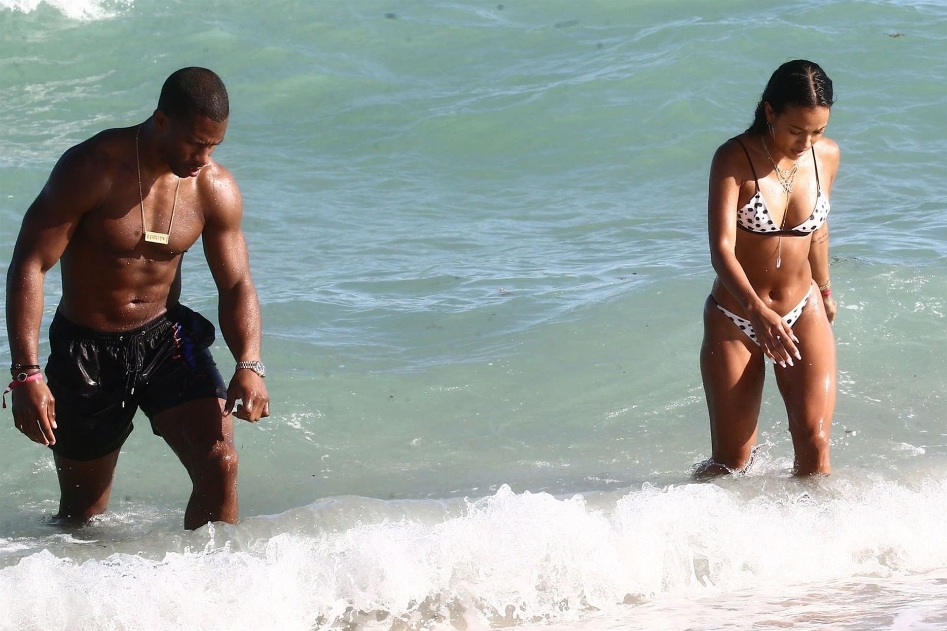 Atriz/modelo Karrueche Tran (30) e Victor Cruz aproveitam um mergulho nas águas quentes de Miami, 01/02/2019.