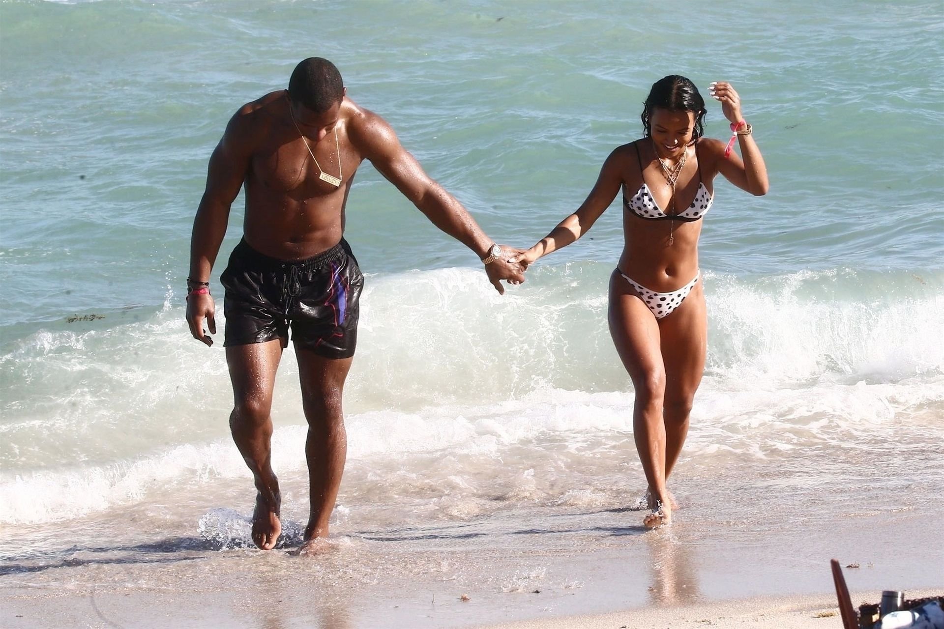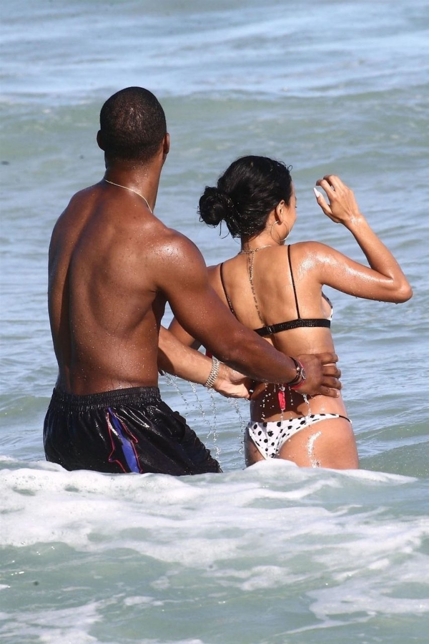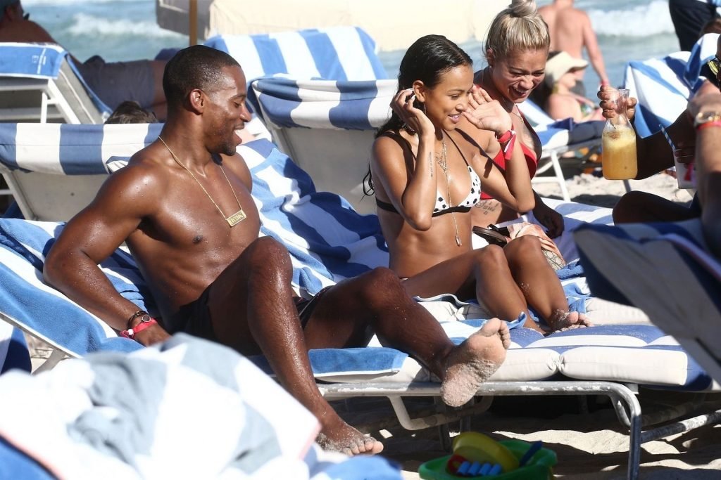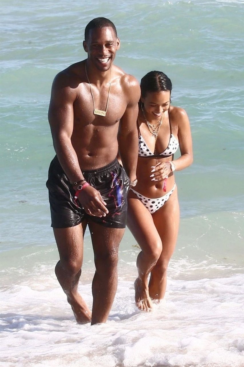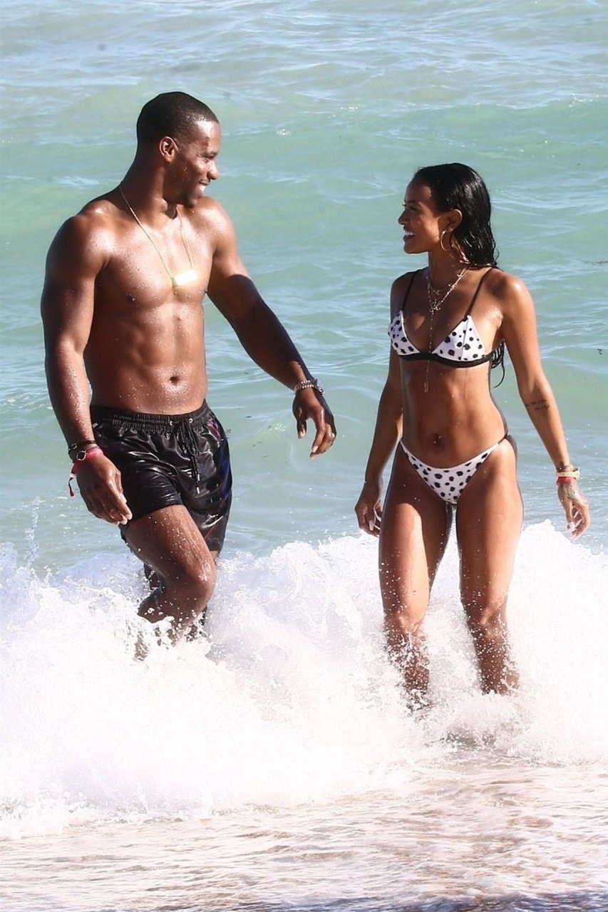 Atriz/modelo Karrueche Tran (30) e Victor Cruz aproveitam um mergulho nas águas quentes de Miami, 01/02/2019.