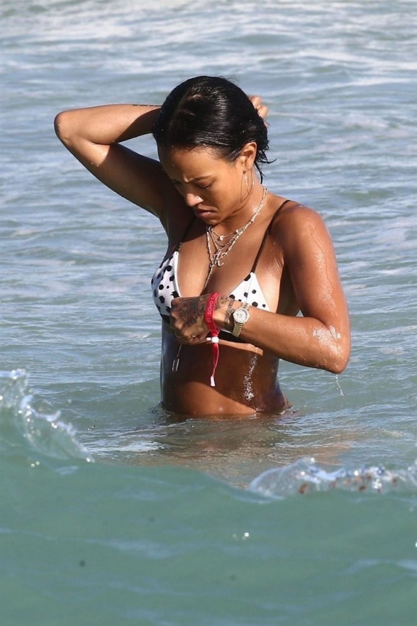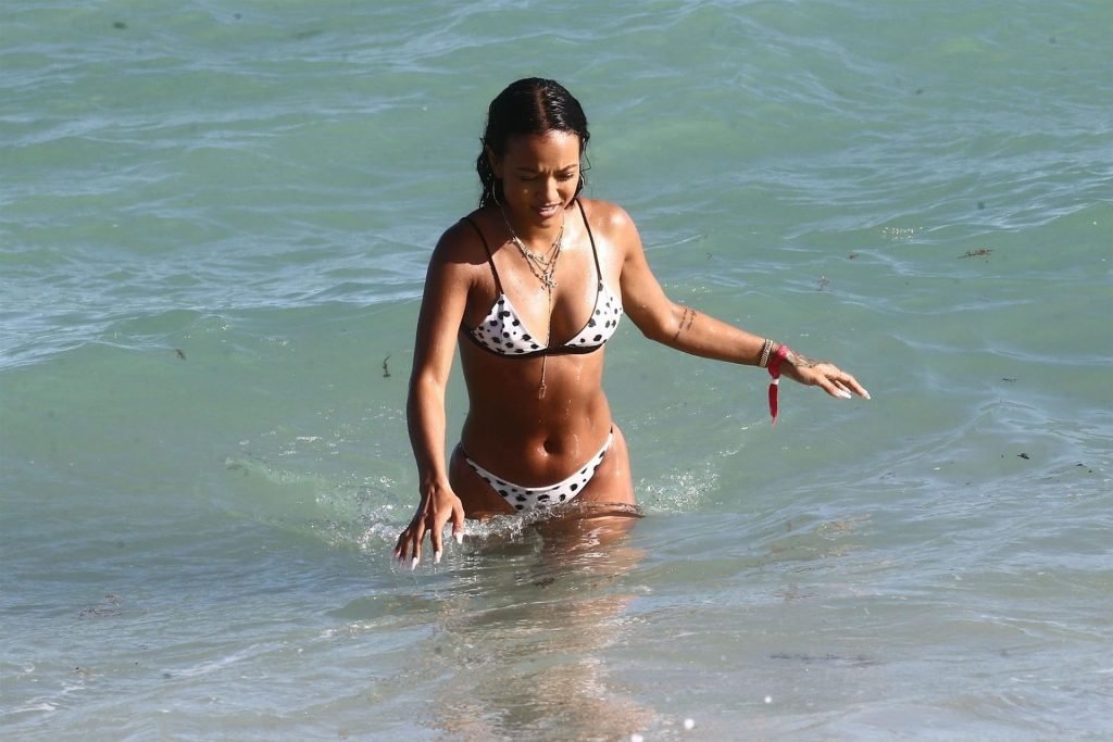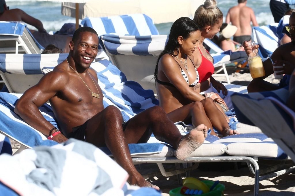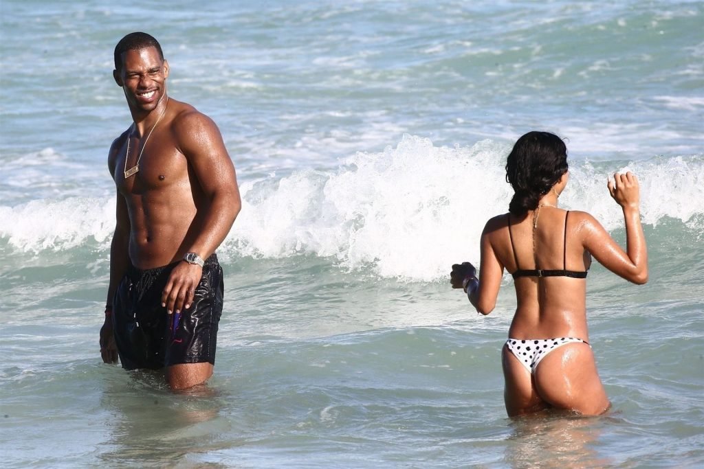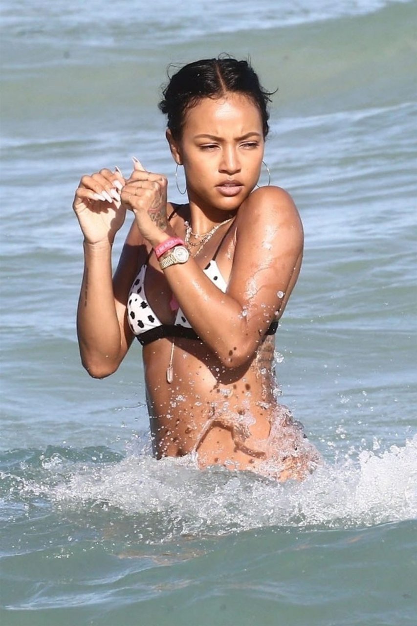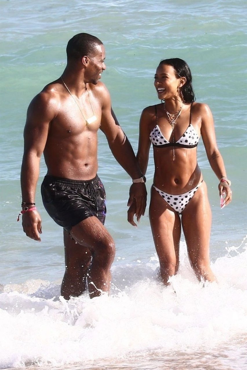Atriz/modelo Karrueche Tran (30) e Victor Cruz aproveitam um mergulho nas águas quentes de Miami, 01/02/2019.
