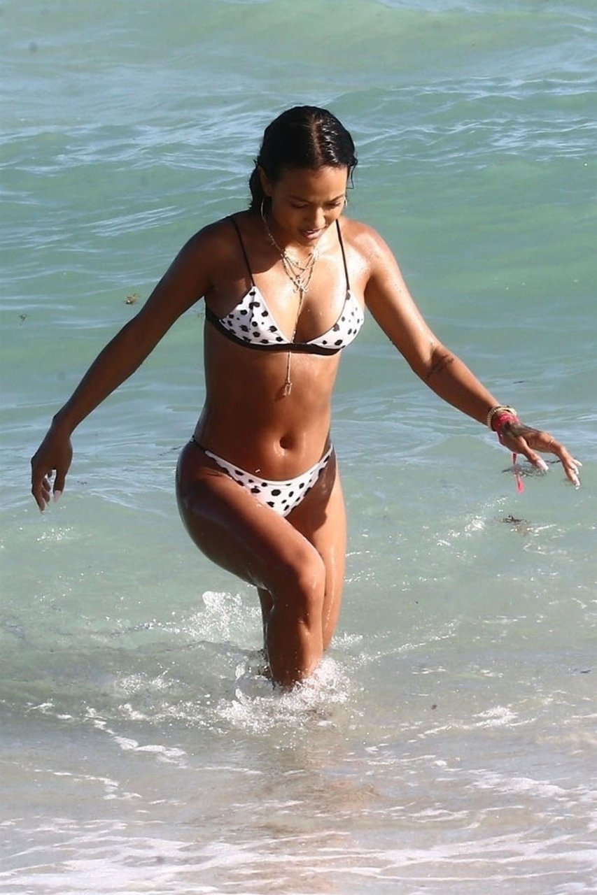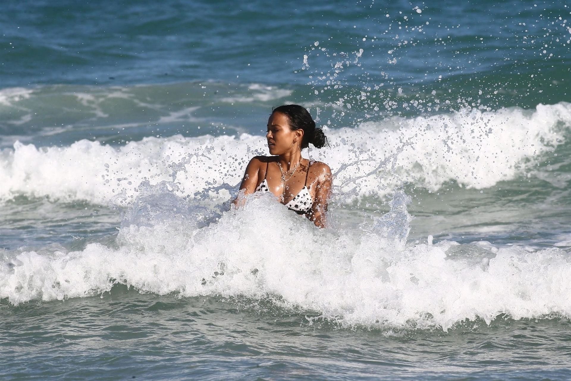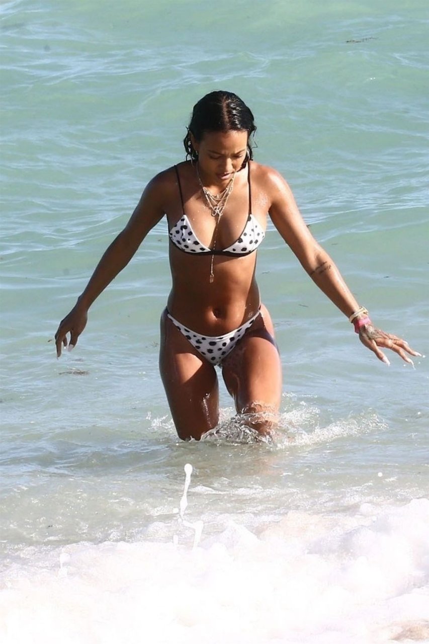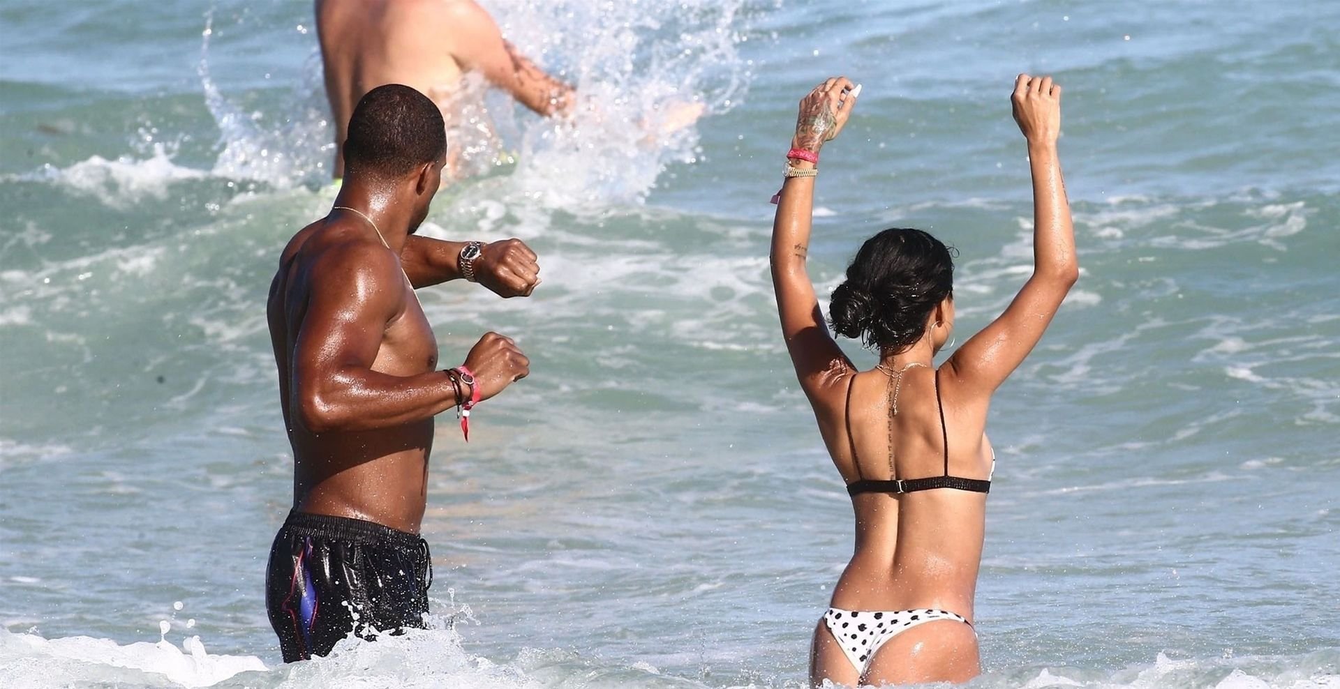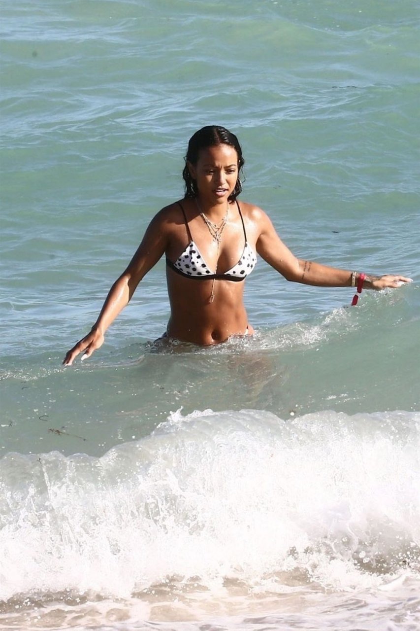 Atriz/modelo Karrueche Tran (30) e Victor Cruz aproveitam um mergulho nas águas quentes de Miami, 01/02/2019.