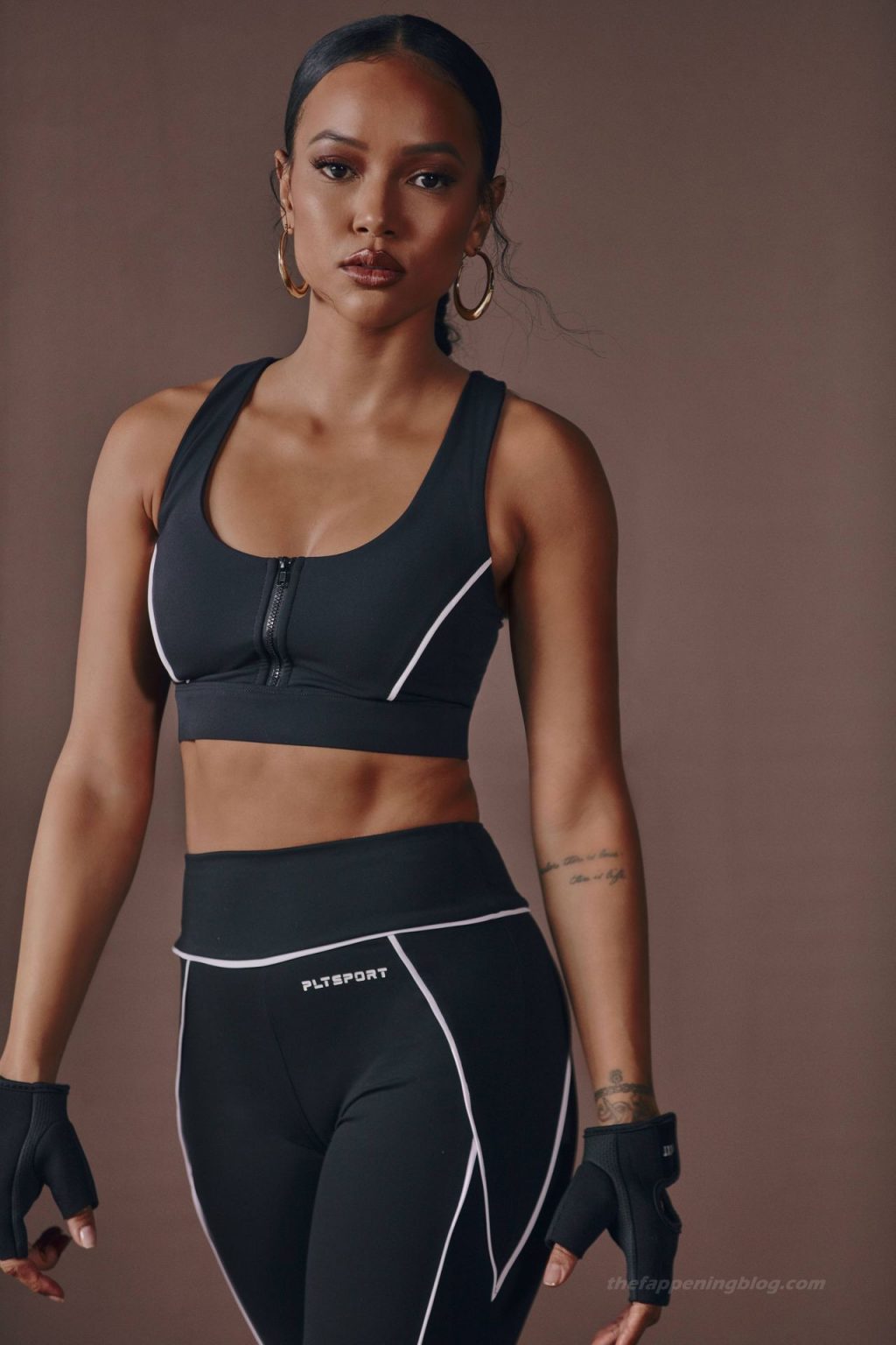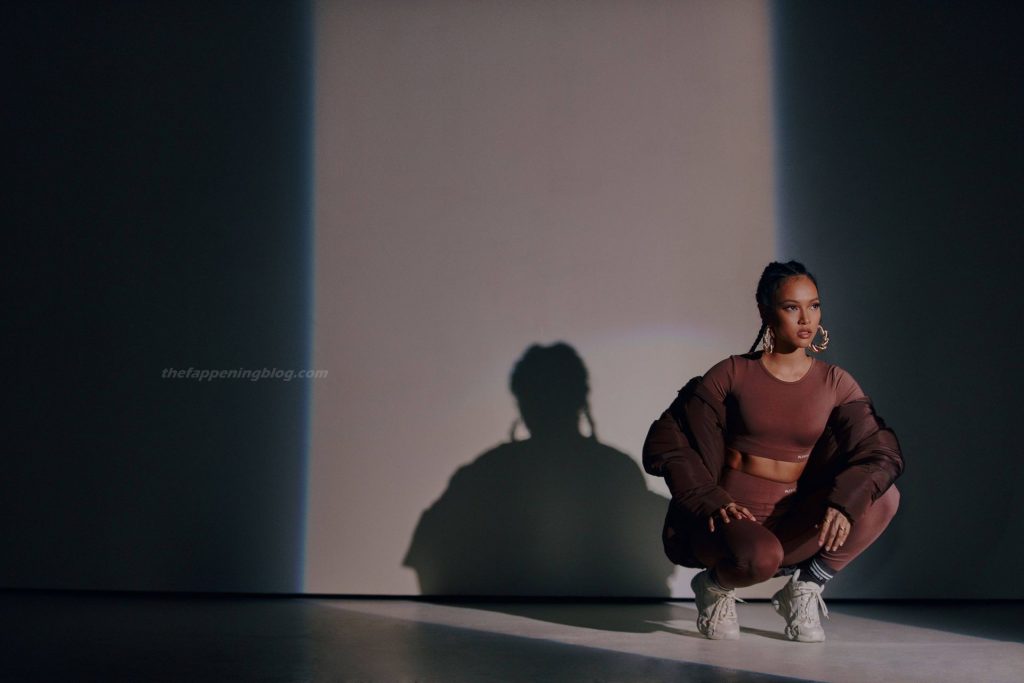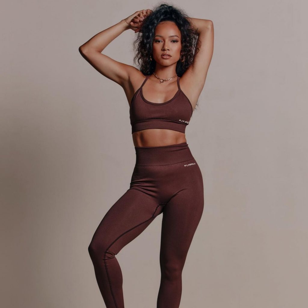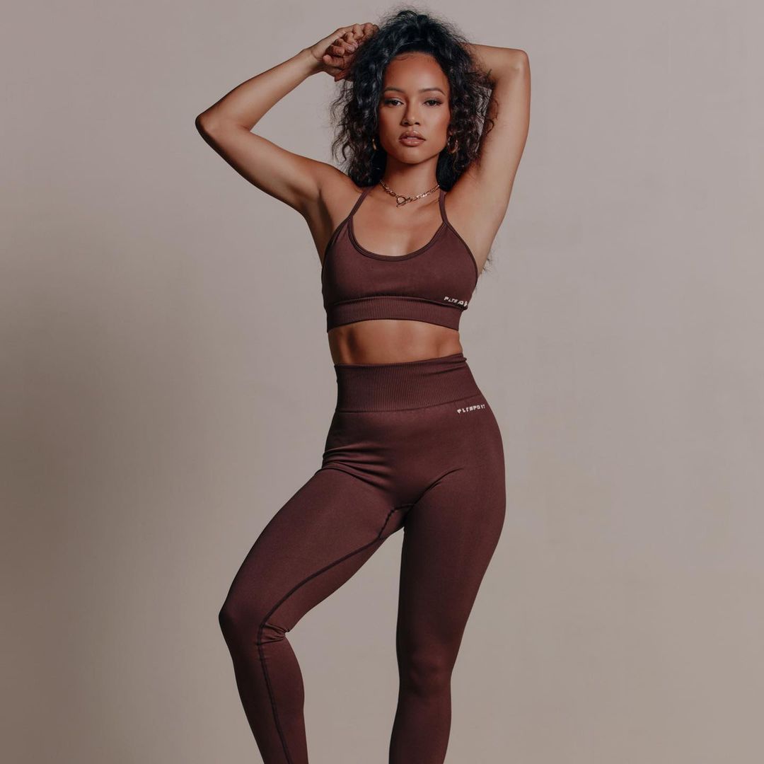 Karrueche Tran exibe suas curvas tonificadas enquanto modela uma nova coleção para PrettyLittleThing (2021). A modelo e atriz de 32 anos se uniu à marca para revelar a edição athleisure.